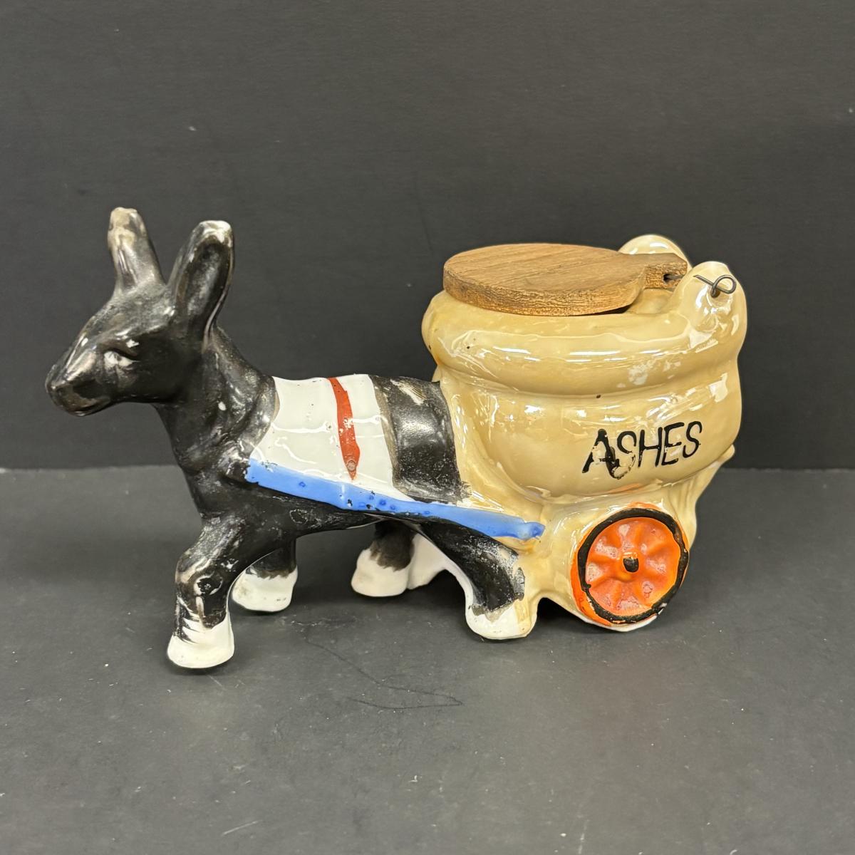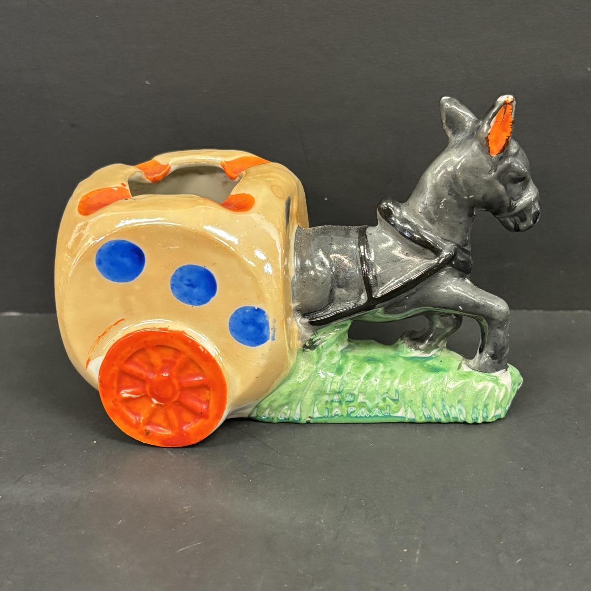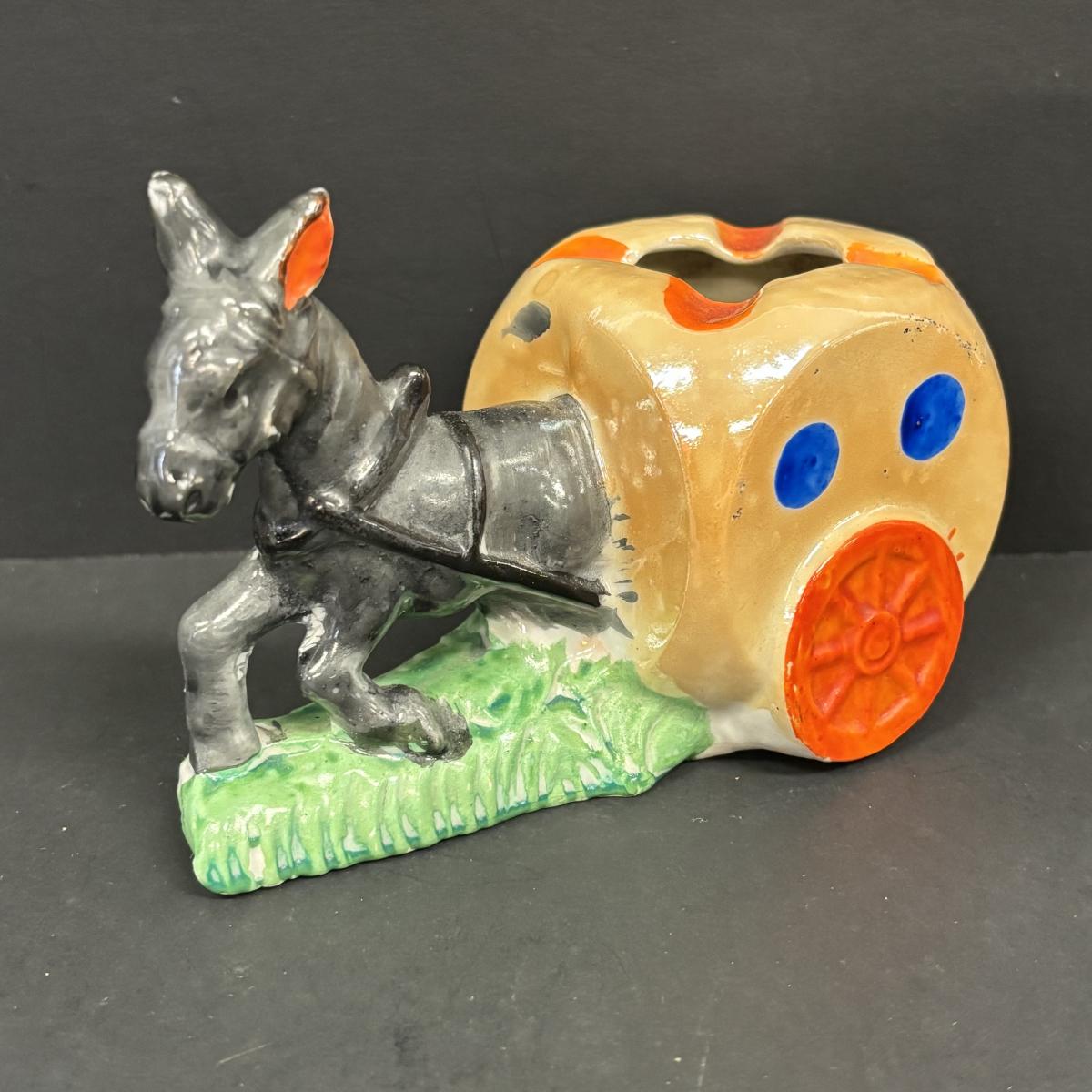 LOT 96: Collection of Vintage Donkey Pulling Cart Hand Painted Ashtrays & Lusterware Cat Ashtray