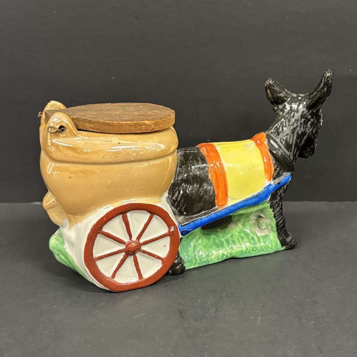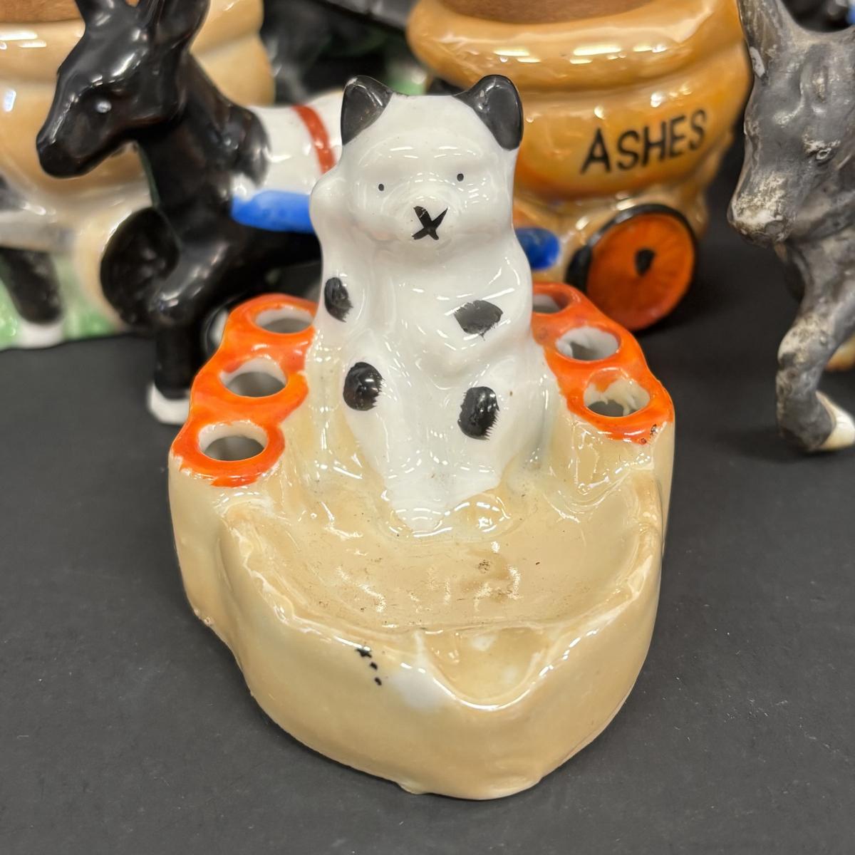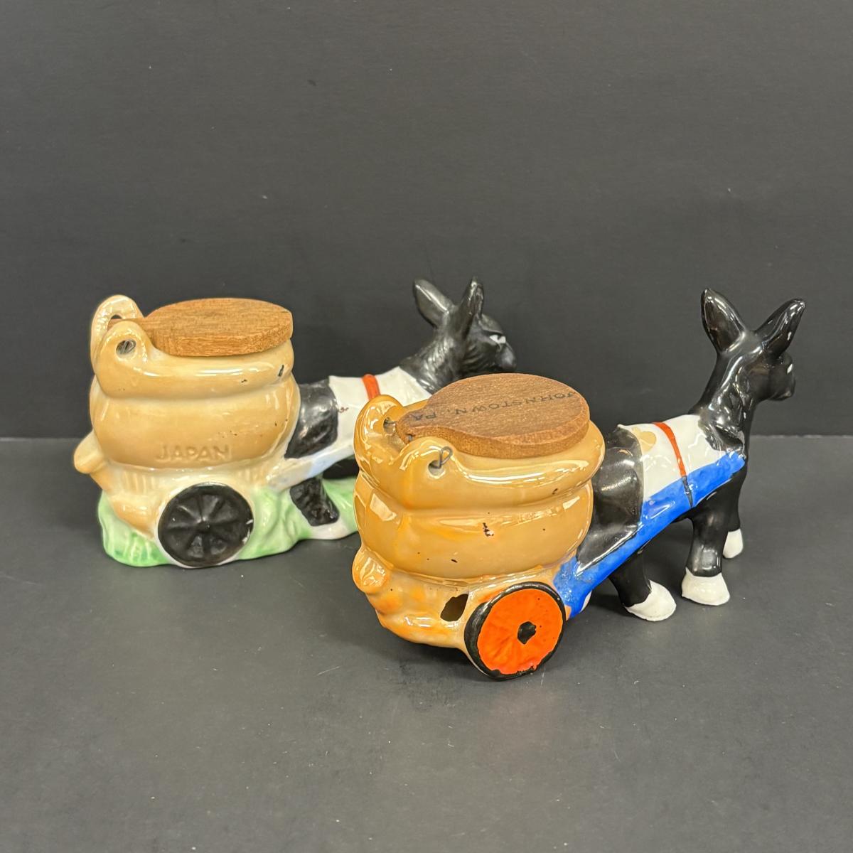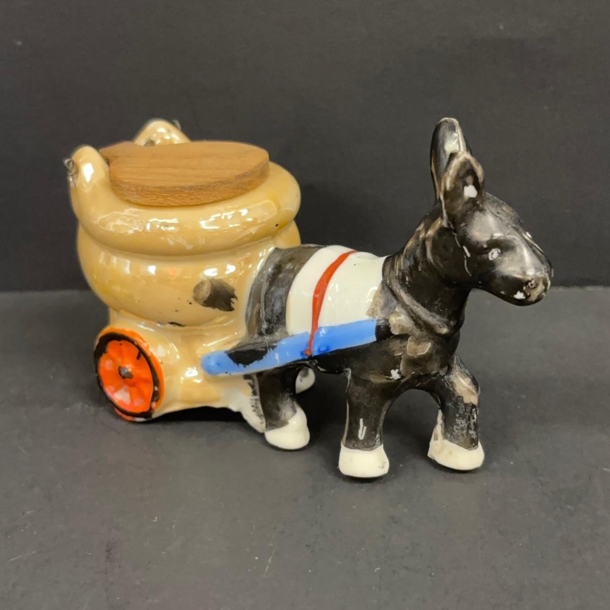 LOT 96: Collection of Vintage Donkey Pulling Cart Hand Painted Ashtrays & Lusterware Cat Ashtray