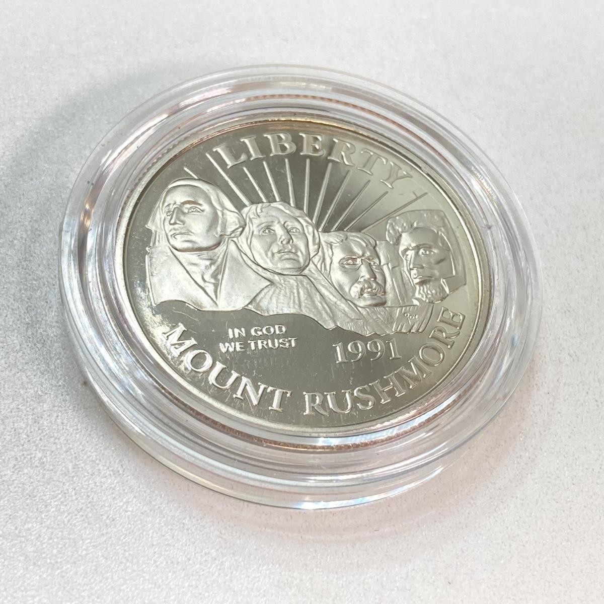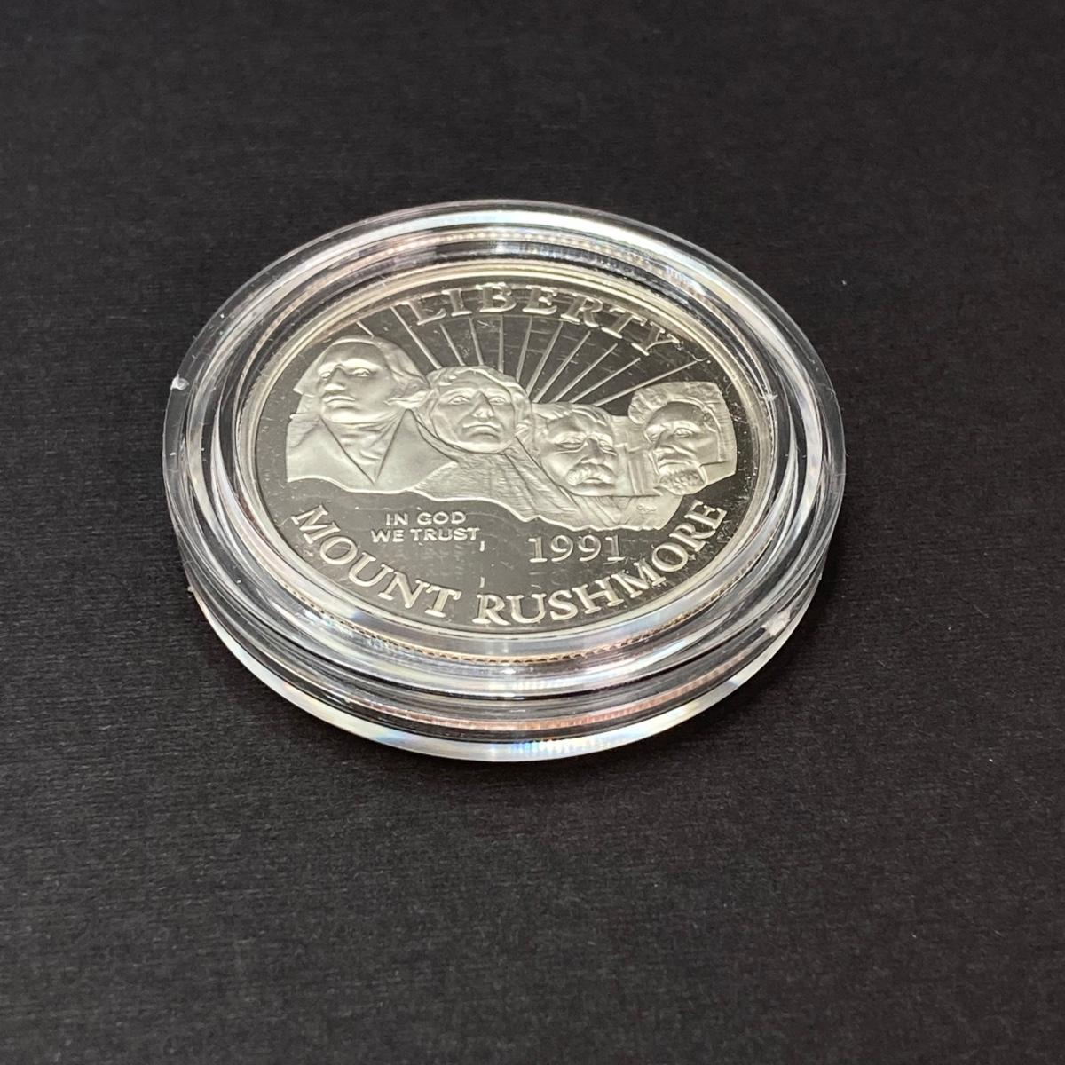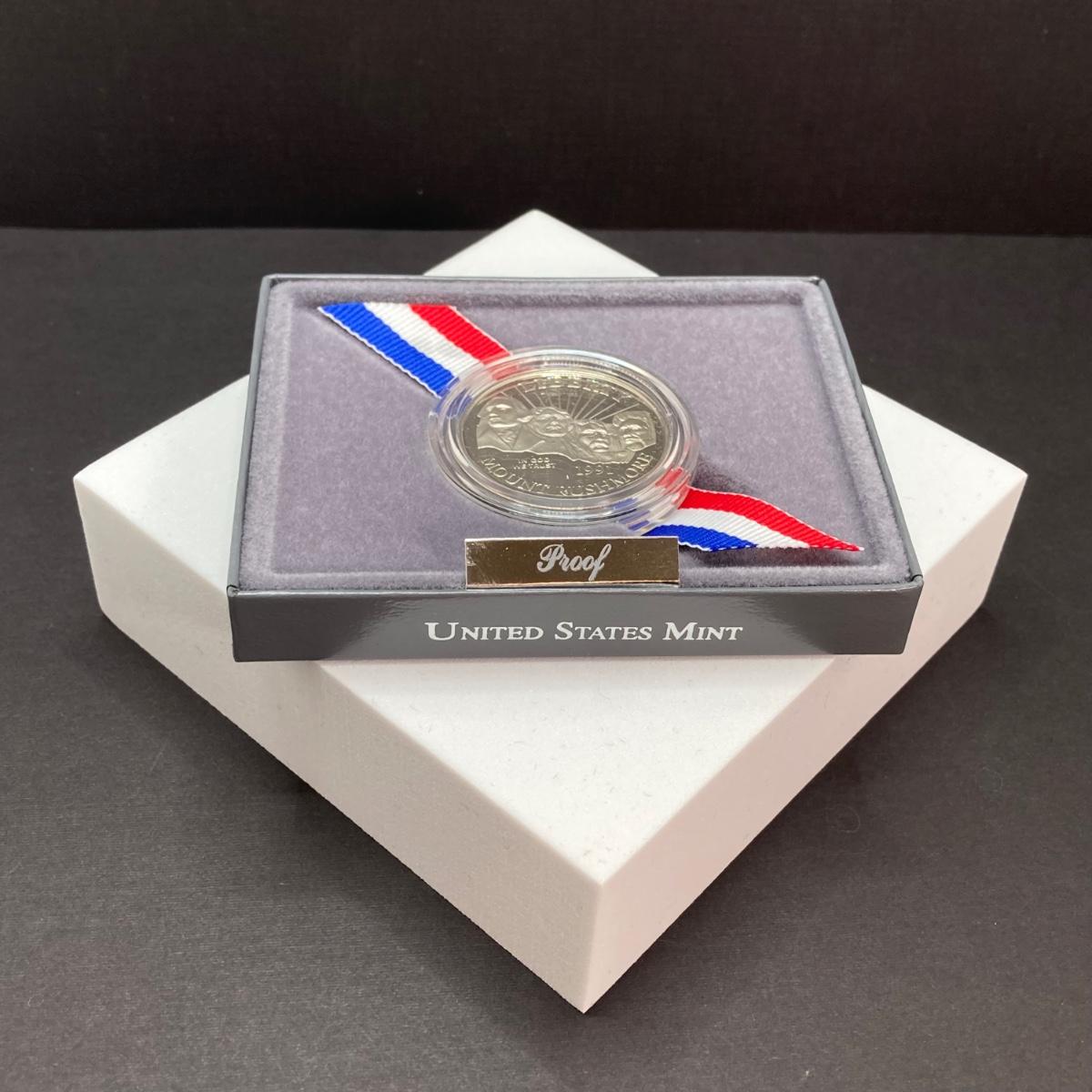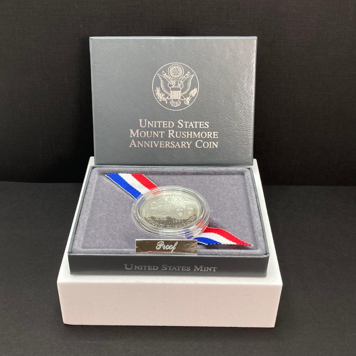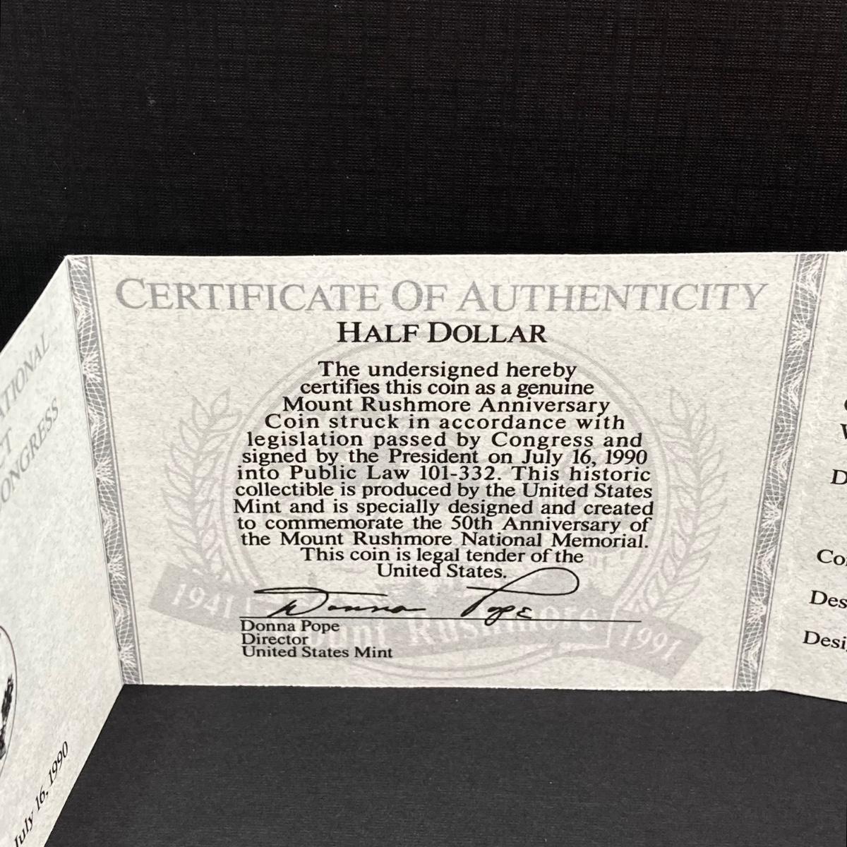 LOT 100: 1991 United States Mount Rushmore Anniversary Half Dollar Proof Coin with Presentation Box and Certificate of Authenticity