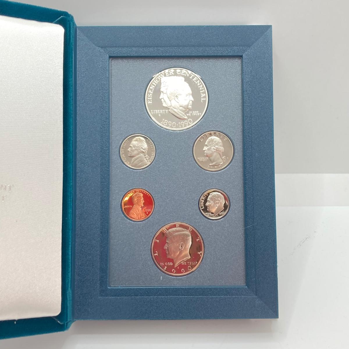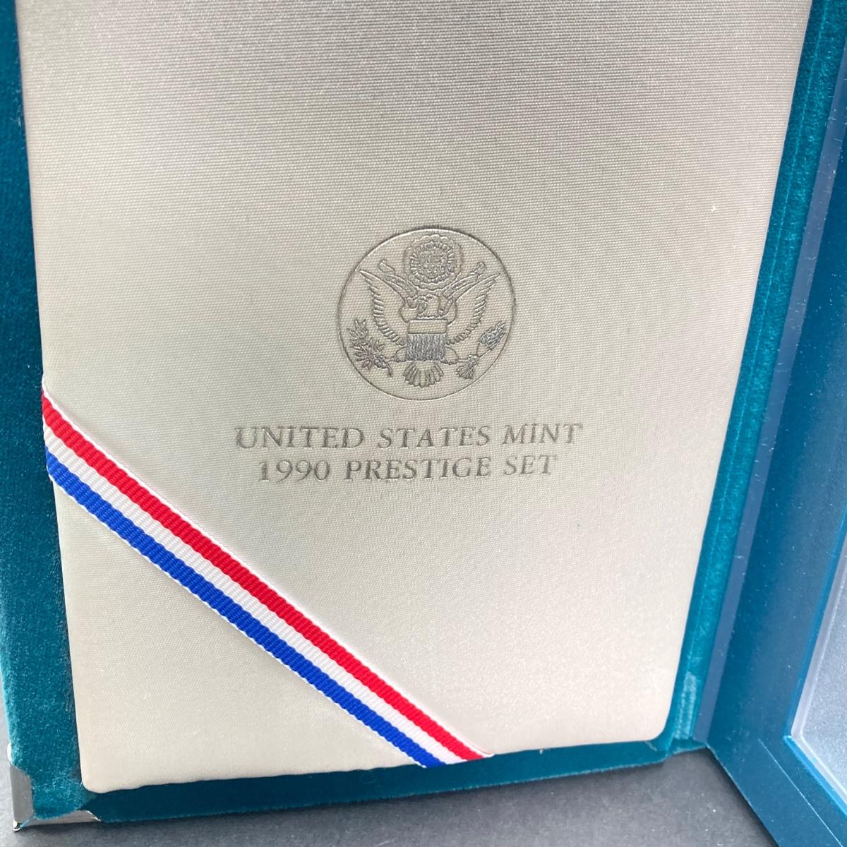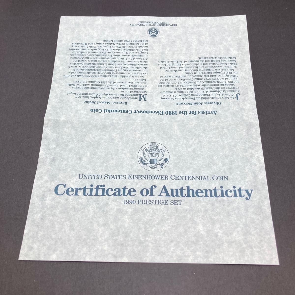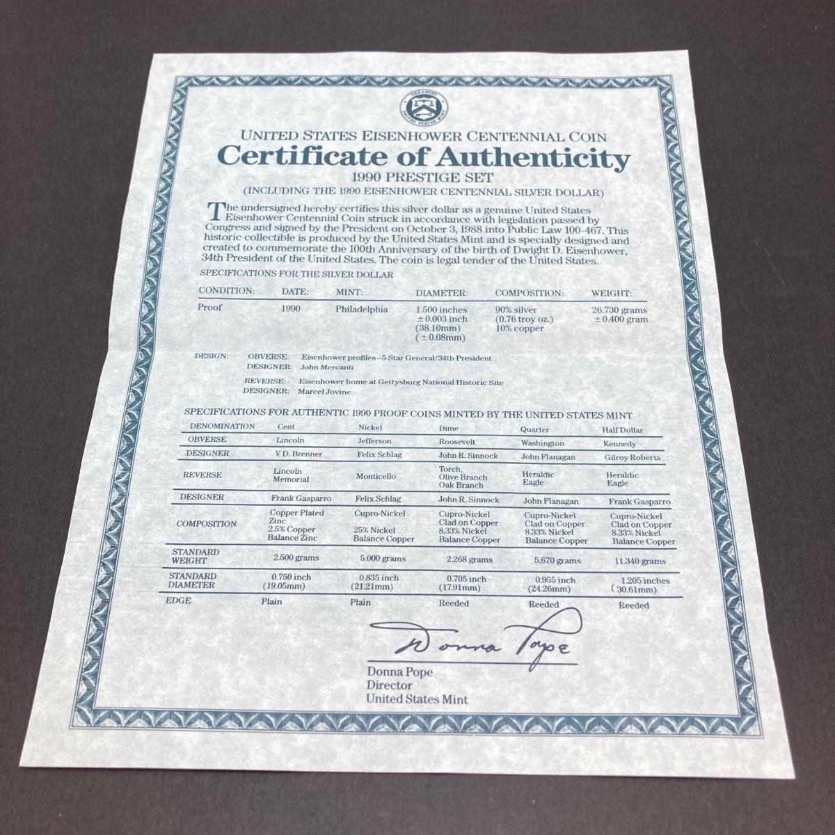 LOT 104: United States Mint 1990 Prestige Set with 1990 Eisenhower Centennial Silver Dollar in Presentation Book with Certificate of Authenticity