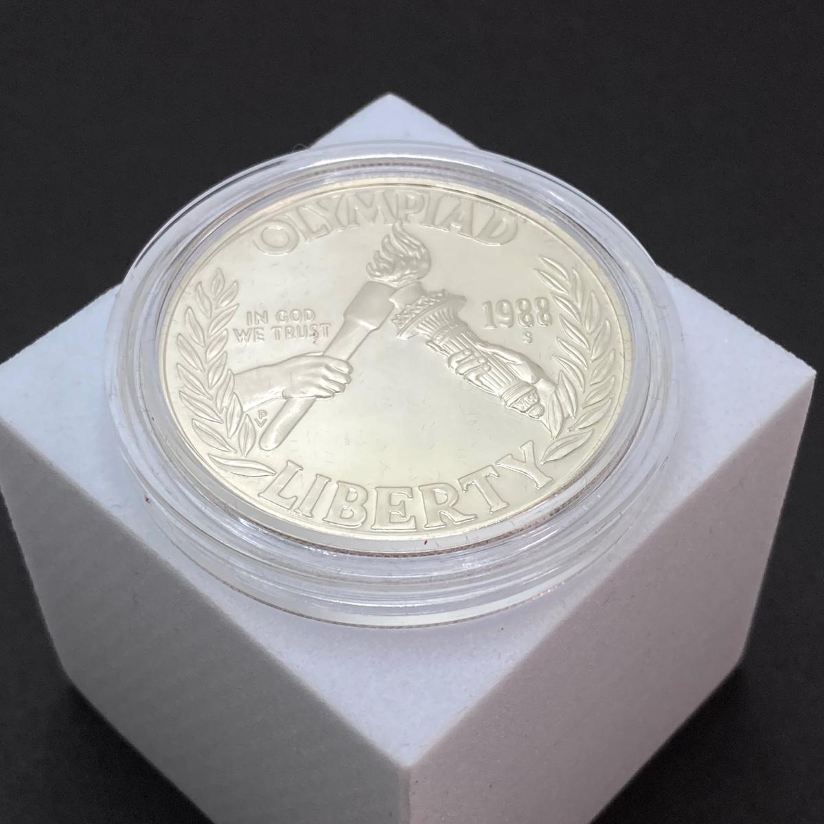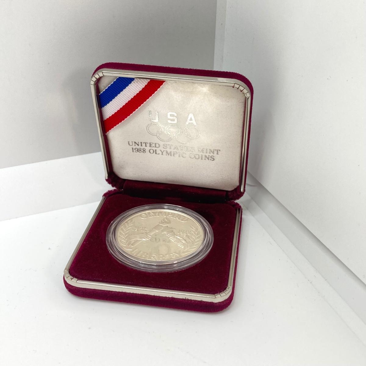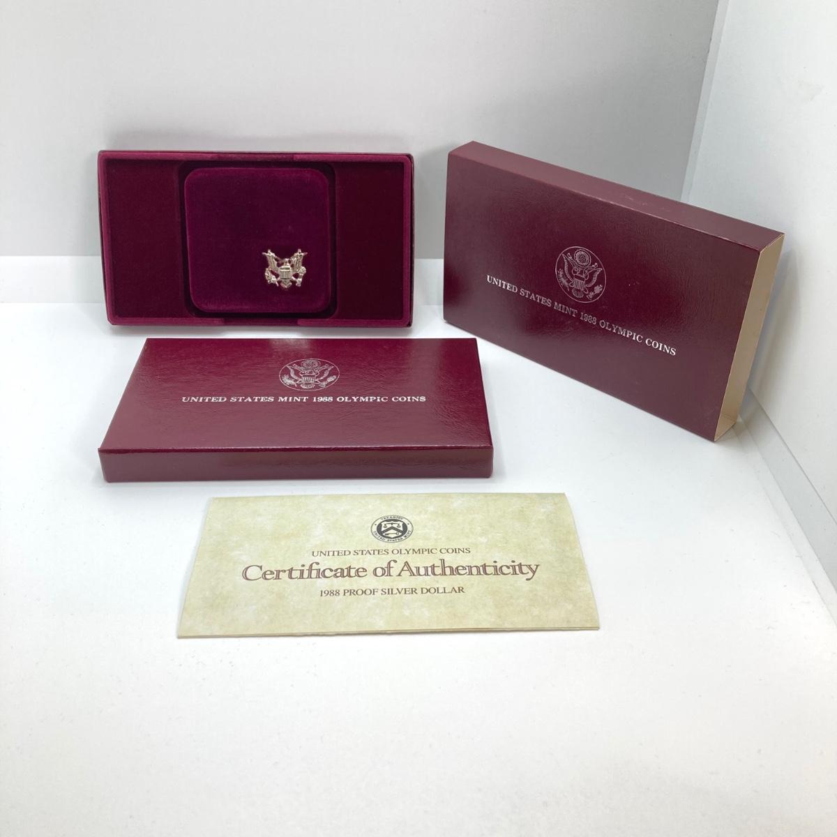 LOT 106: United States Mint 1988 Olympic Silver Dollar Proof Coin with Presentation Box and Certificate of Authenticity