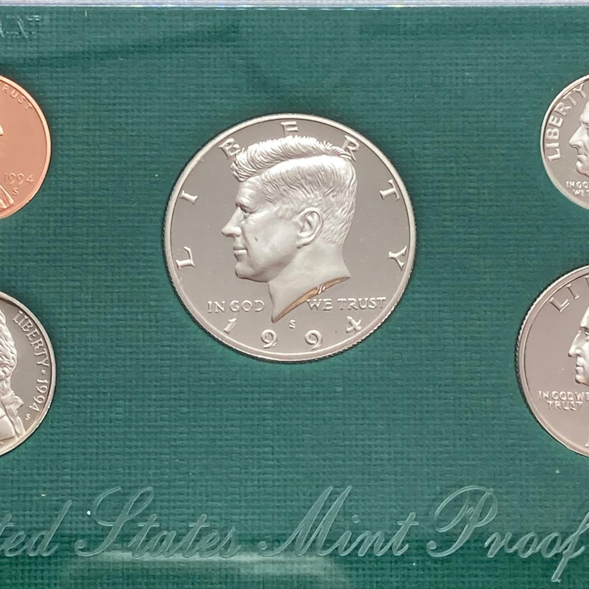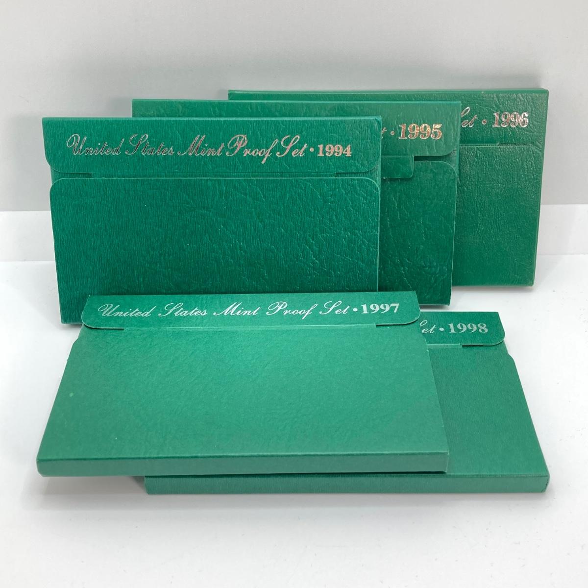 LOT 107: Five United States Mint Proof Coin Sets - 1994, 1995, 1996, 1997 and 1998