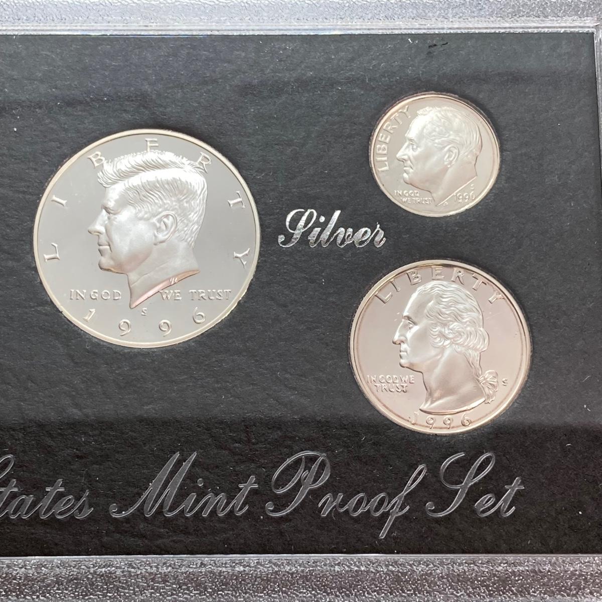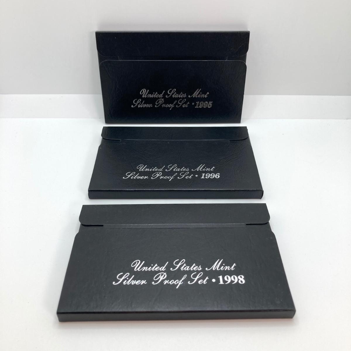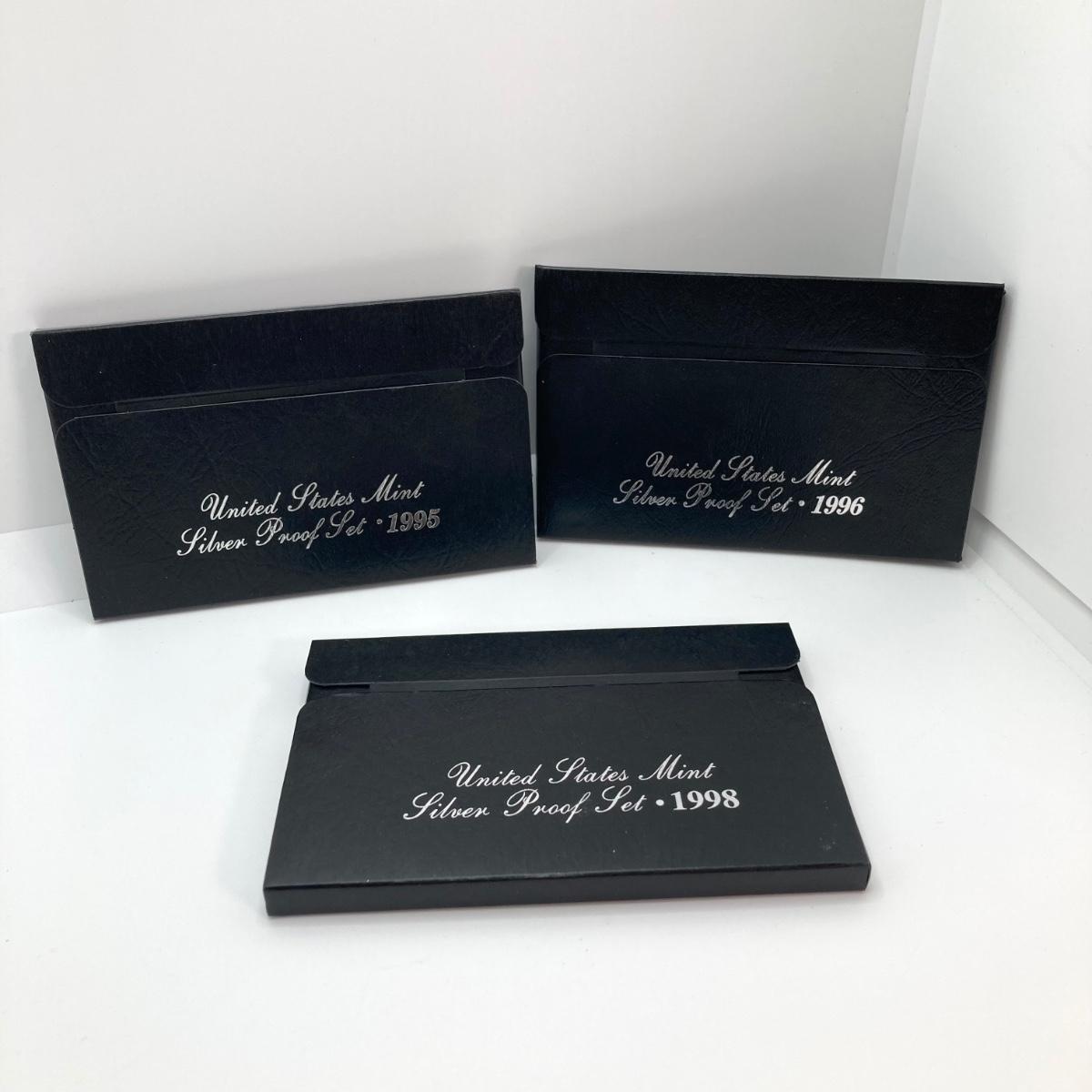 LOT 113: Three United States Mint Silver Proof Coin Sets - 1995, 1996 and 1998