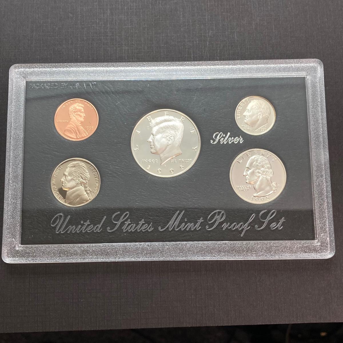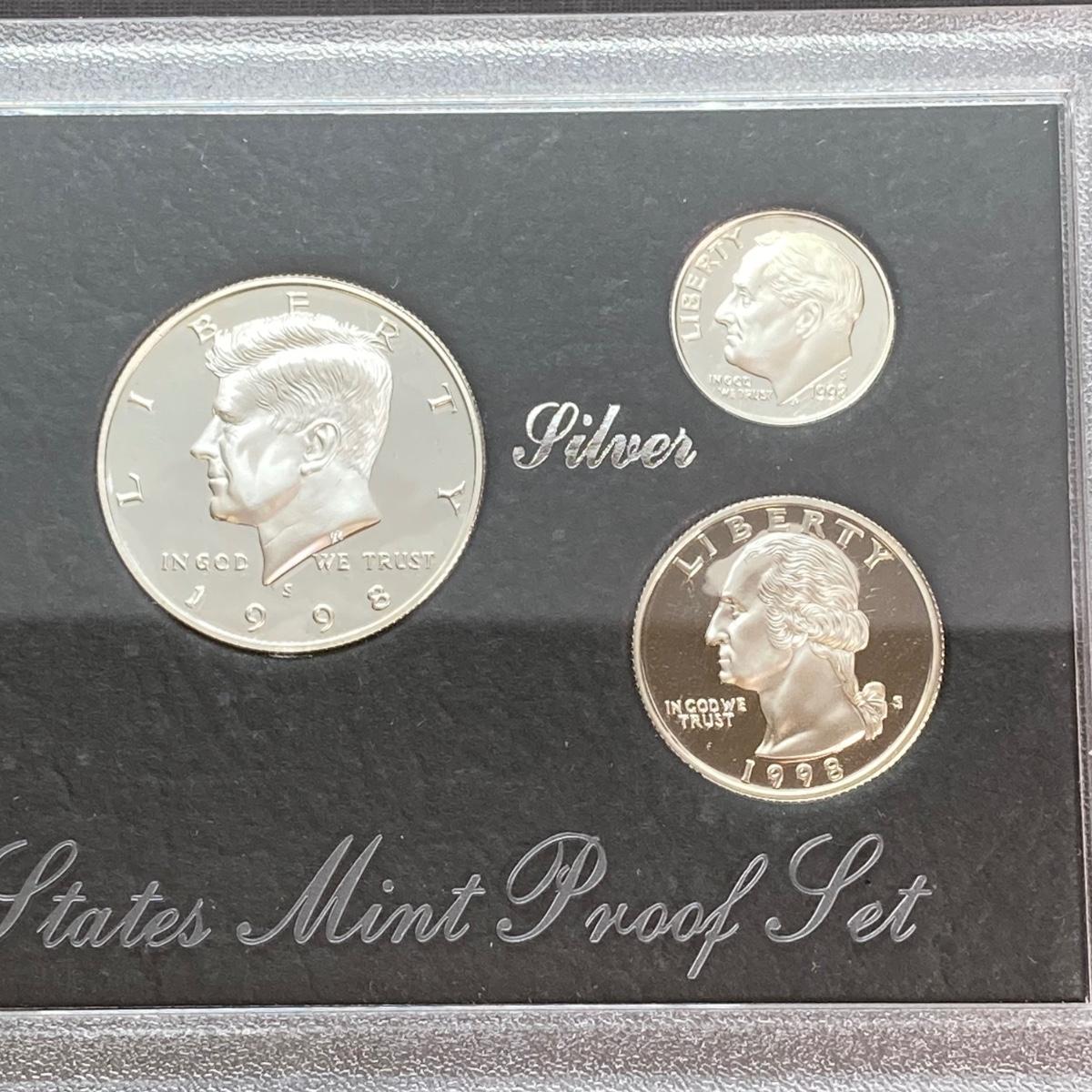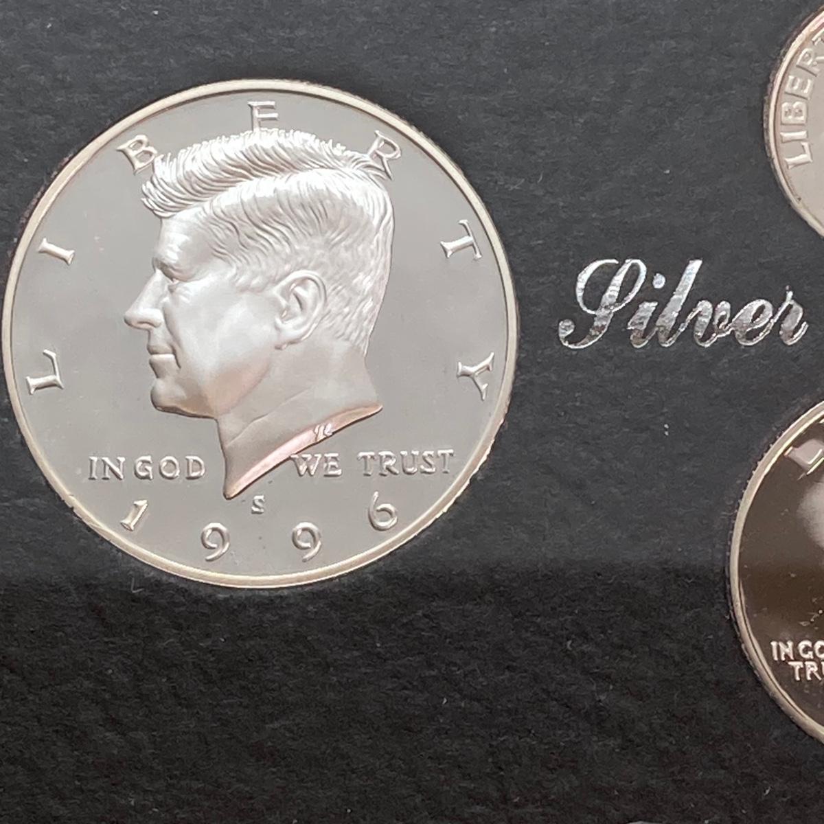 LOT 113: Three United States Mint Silver Proof Coin Sets - 1995, 1996 and 1998
