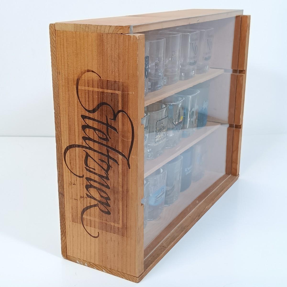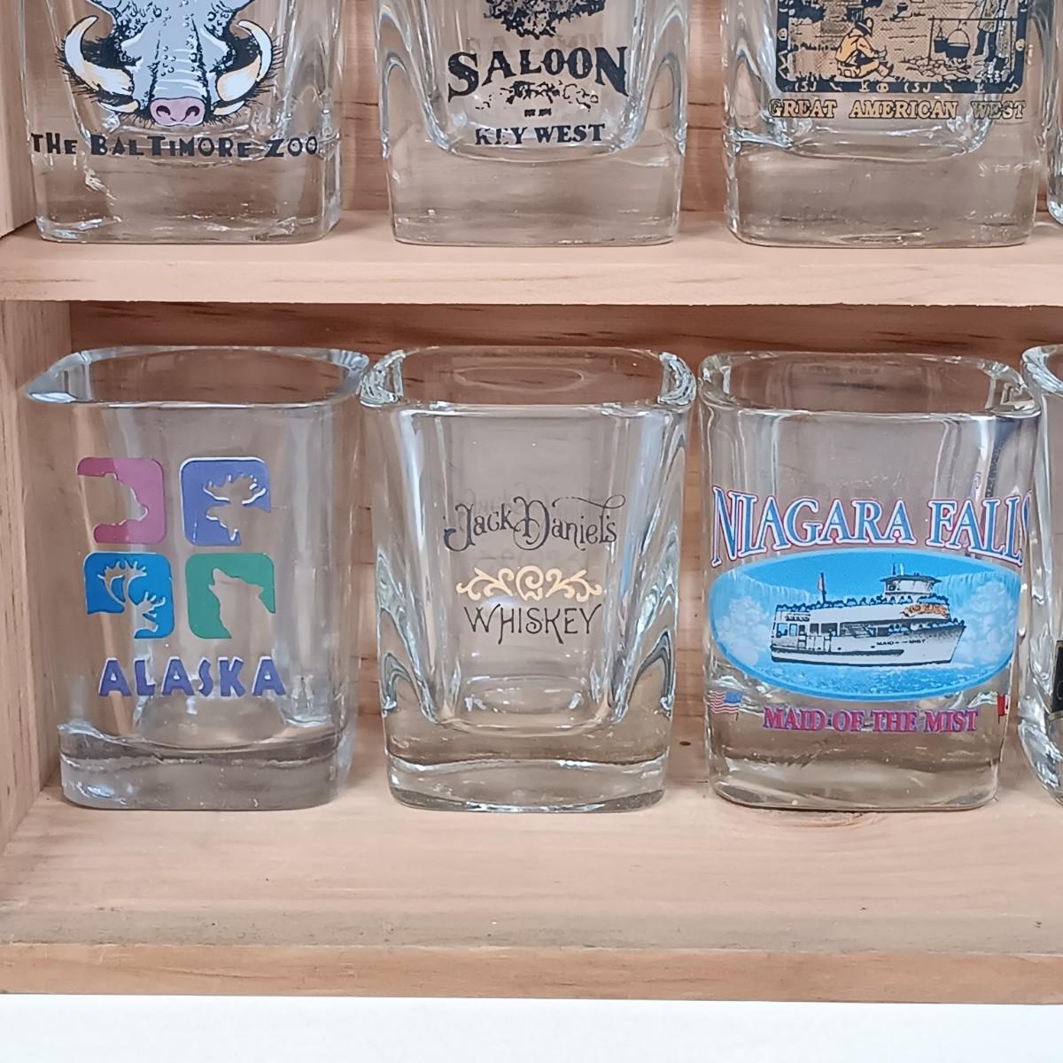 LOT 126: 18-Piece Shot Glass Display Case with NIP Wine Glass, Puzzle & Drink Cozy