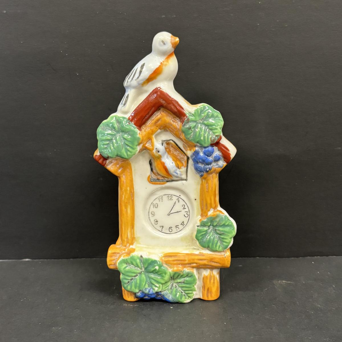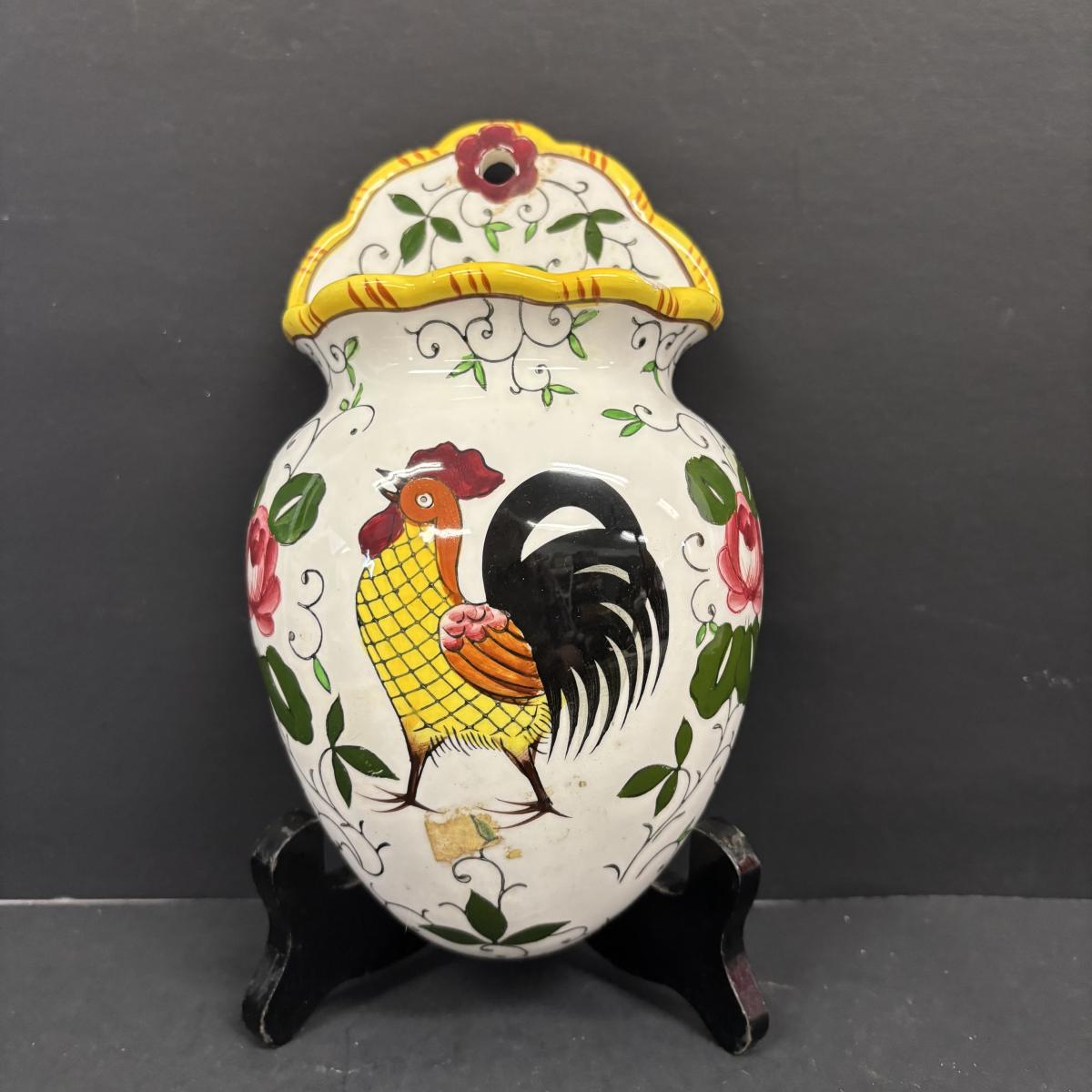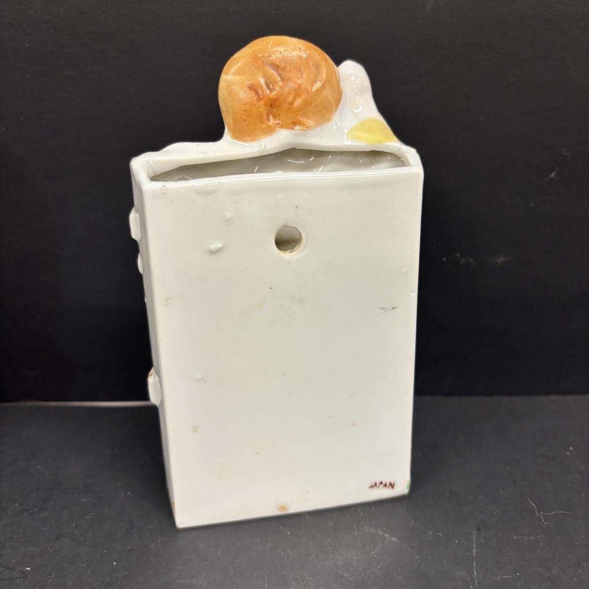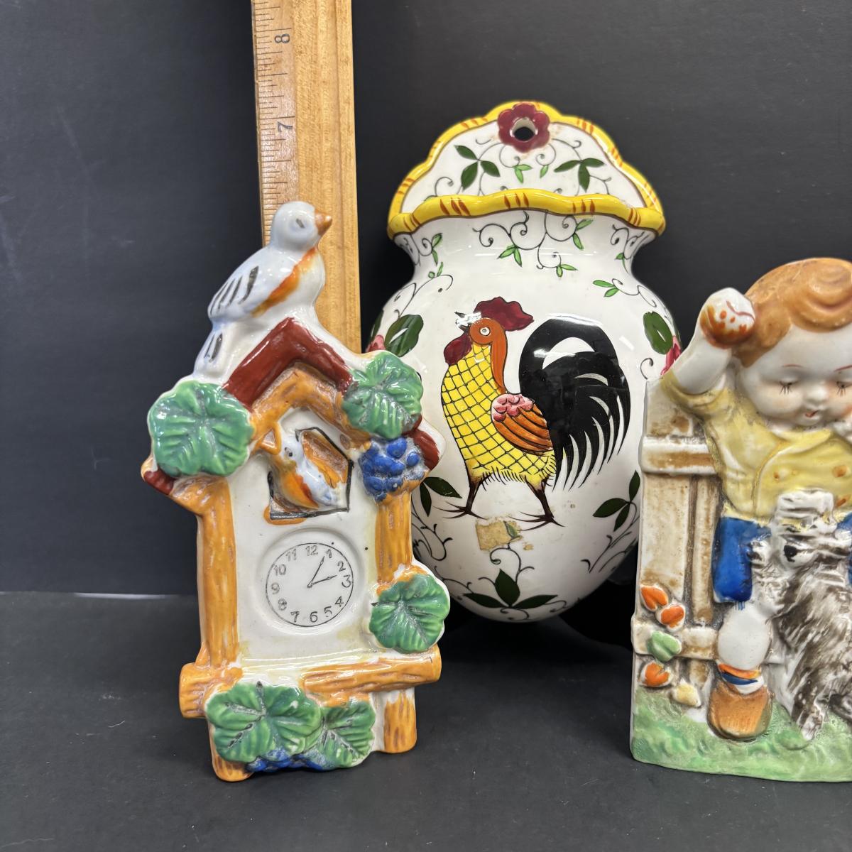 LOT 140: Vintage Japan Porcelain/Ceramic Wall Pockets: Rooster, Cuckoo Clock, Boy w/Puppy & Boy w/Bird