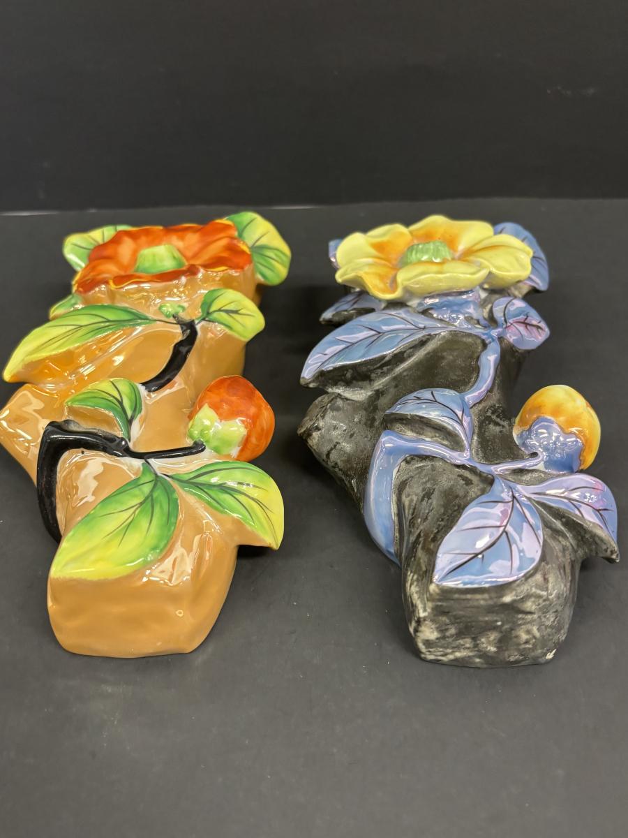 LOT 142: Vintage Floral Japan Lusterware Porcelain Figural Wall Pockets