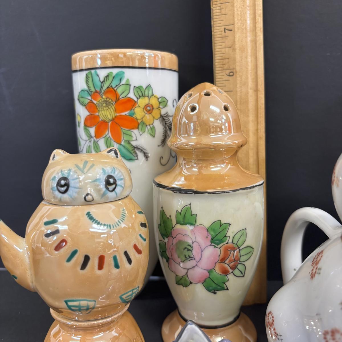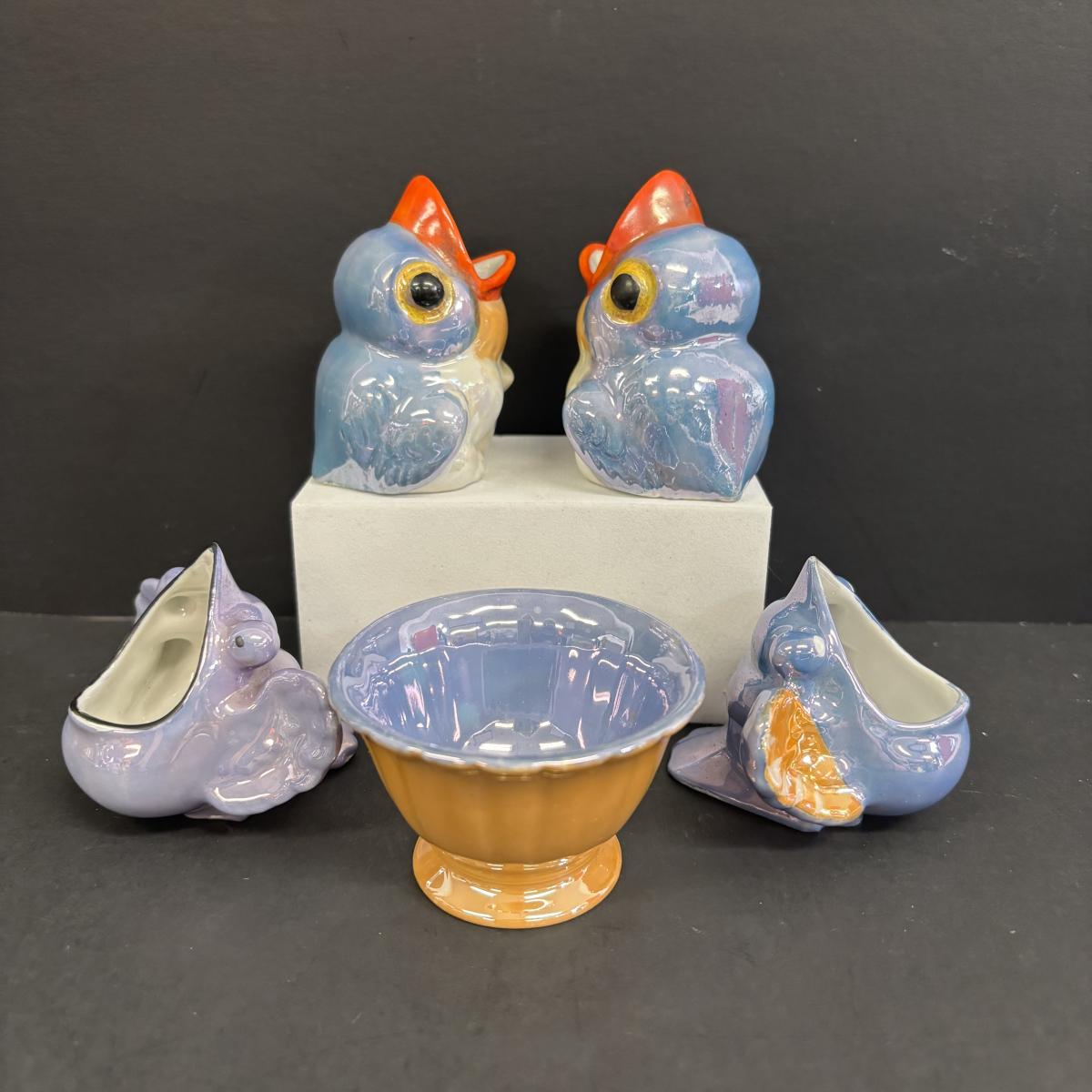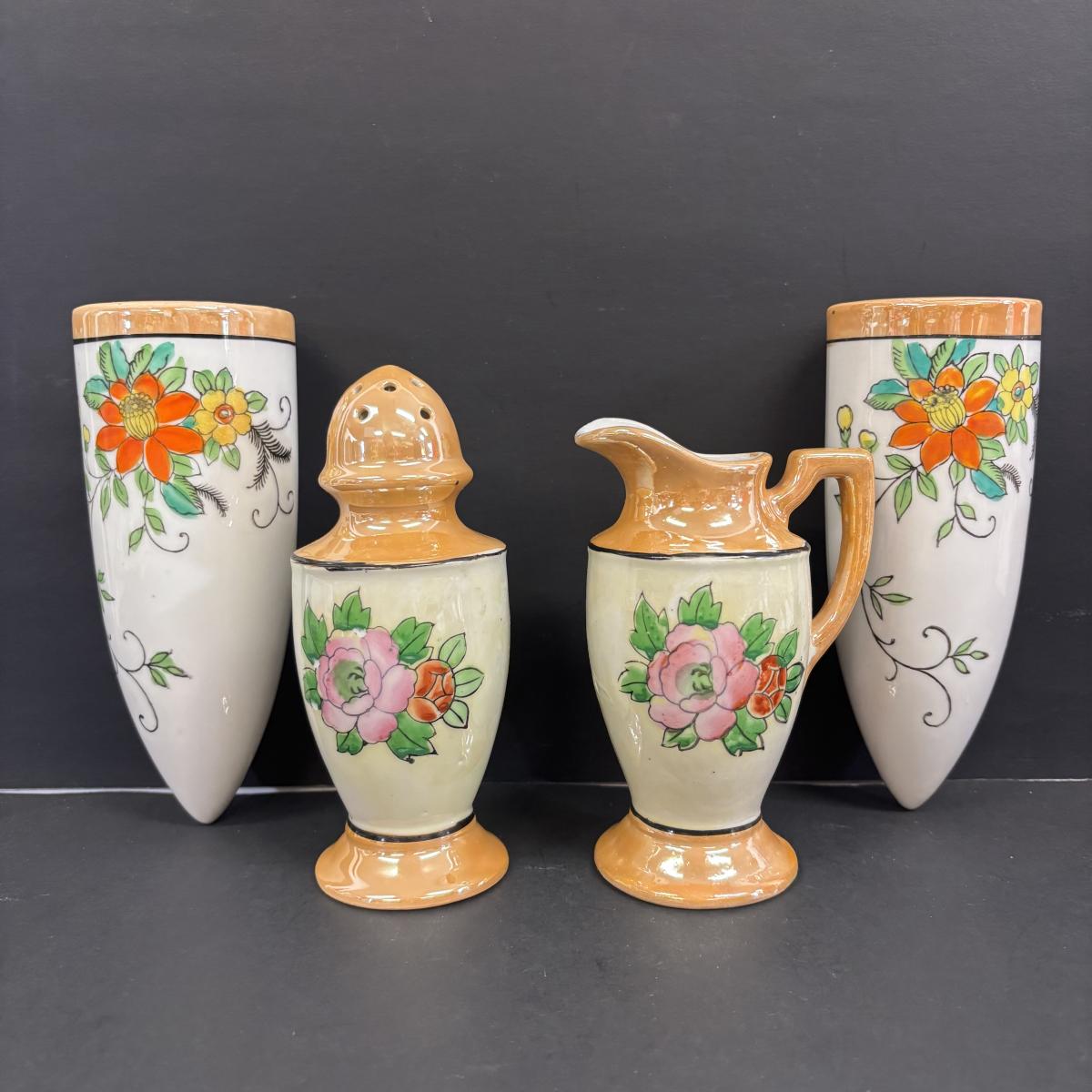 LOT 146: Vintage Japan Lusterware Wall Pockets, Creamer/Sugar Set, Fish/Bird Ashtrays and More