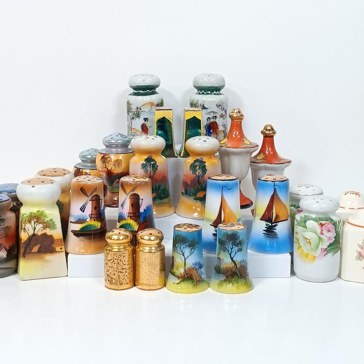 LOT 157: Set of (13) Vintage Lustreware and Handpainted Japan Porcelain Salt and Pepper Shakers