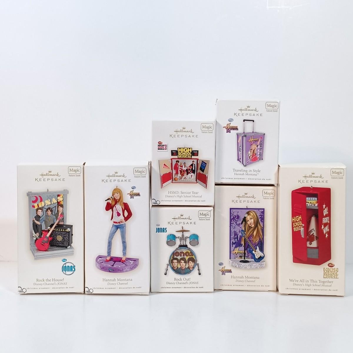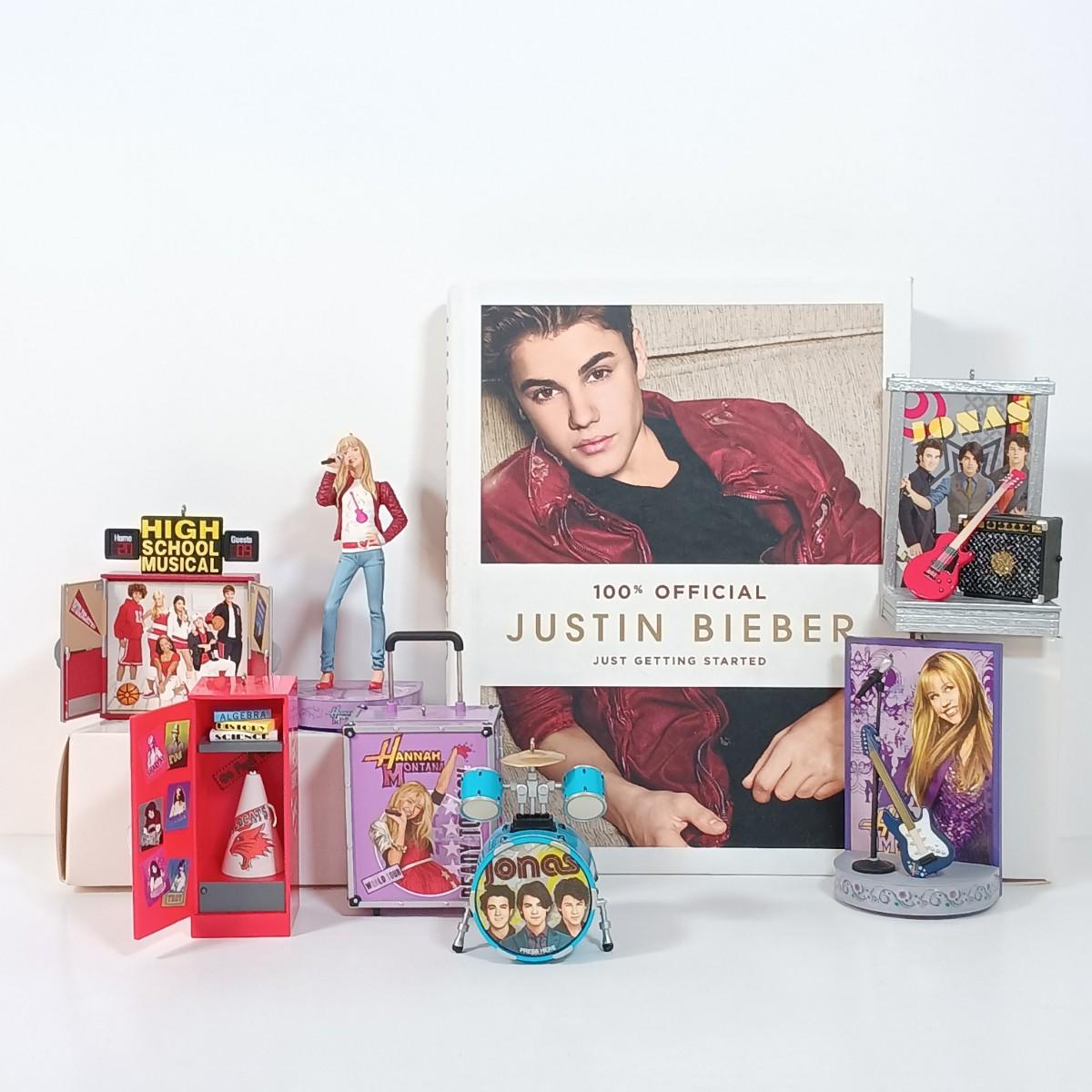 LOT 3: Disney's High School Musical, Miley Cyrus and Jonas Brothers Ornaments with Justin Bieber Book