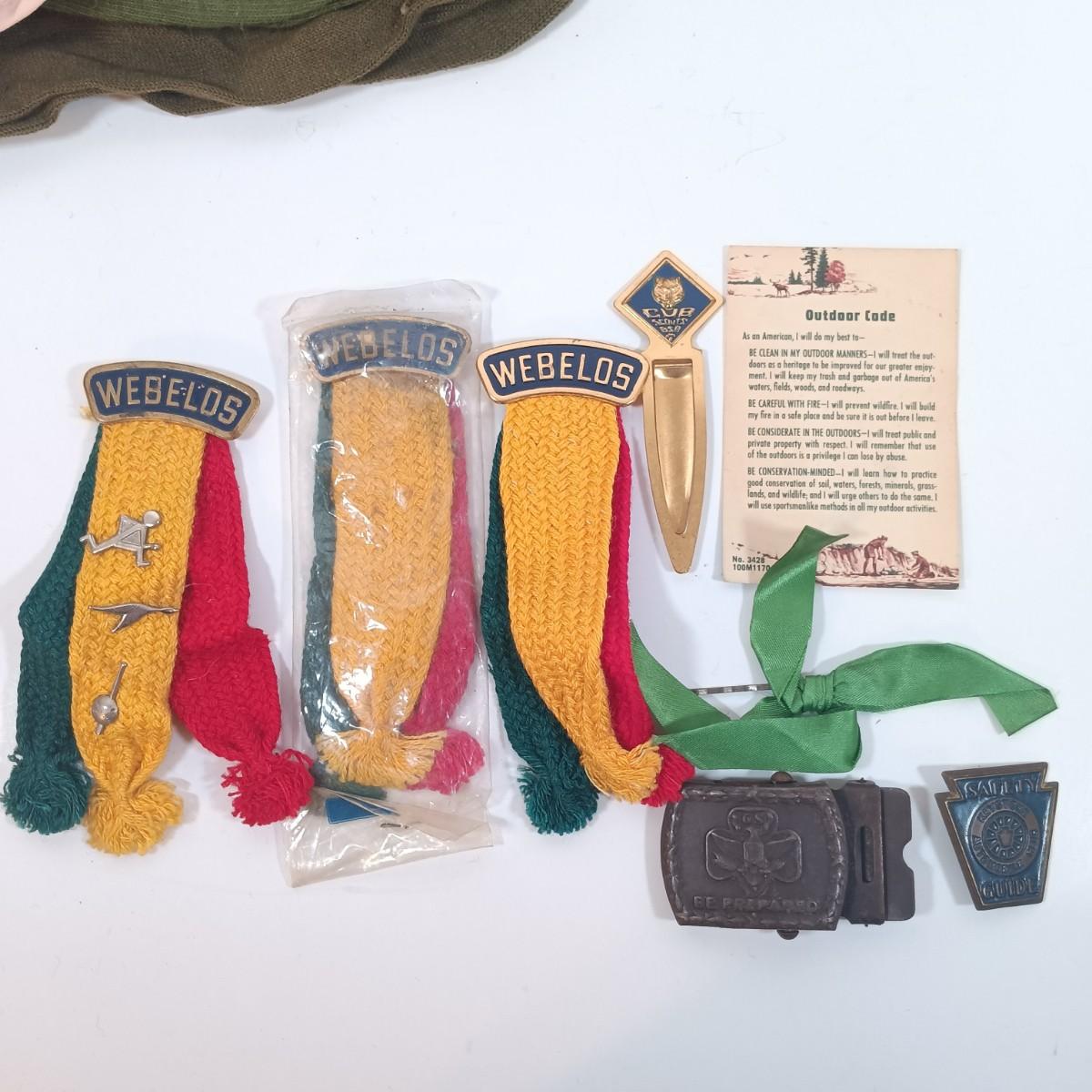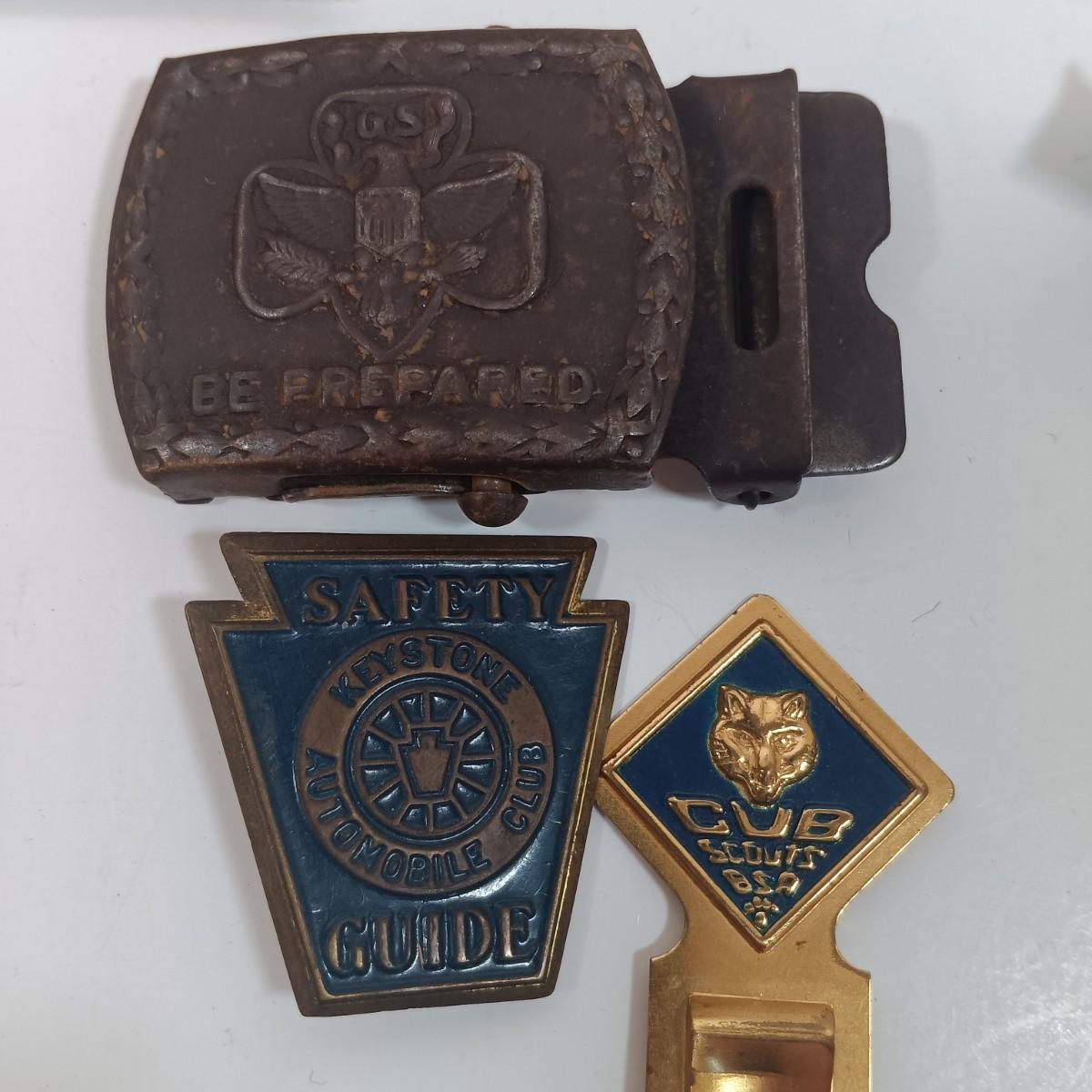 LOT 21: Vintage Girl Scout and Boy Scout Books, Badges, Hats & More