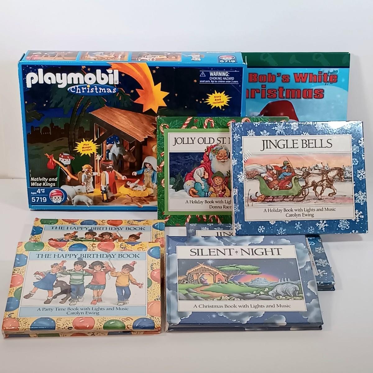 LOT 31: Vintage Playmobil Nativity and Wise Kings with NIS Carolyn Ewing Books & Bob the Builder Christmas Book
