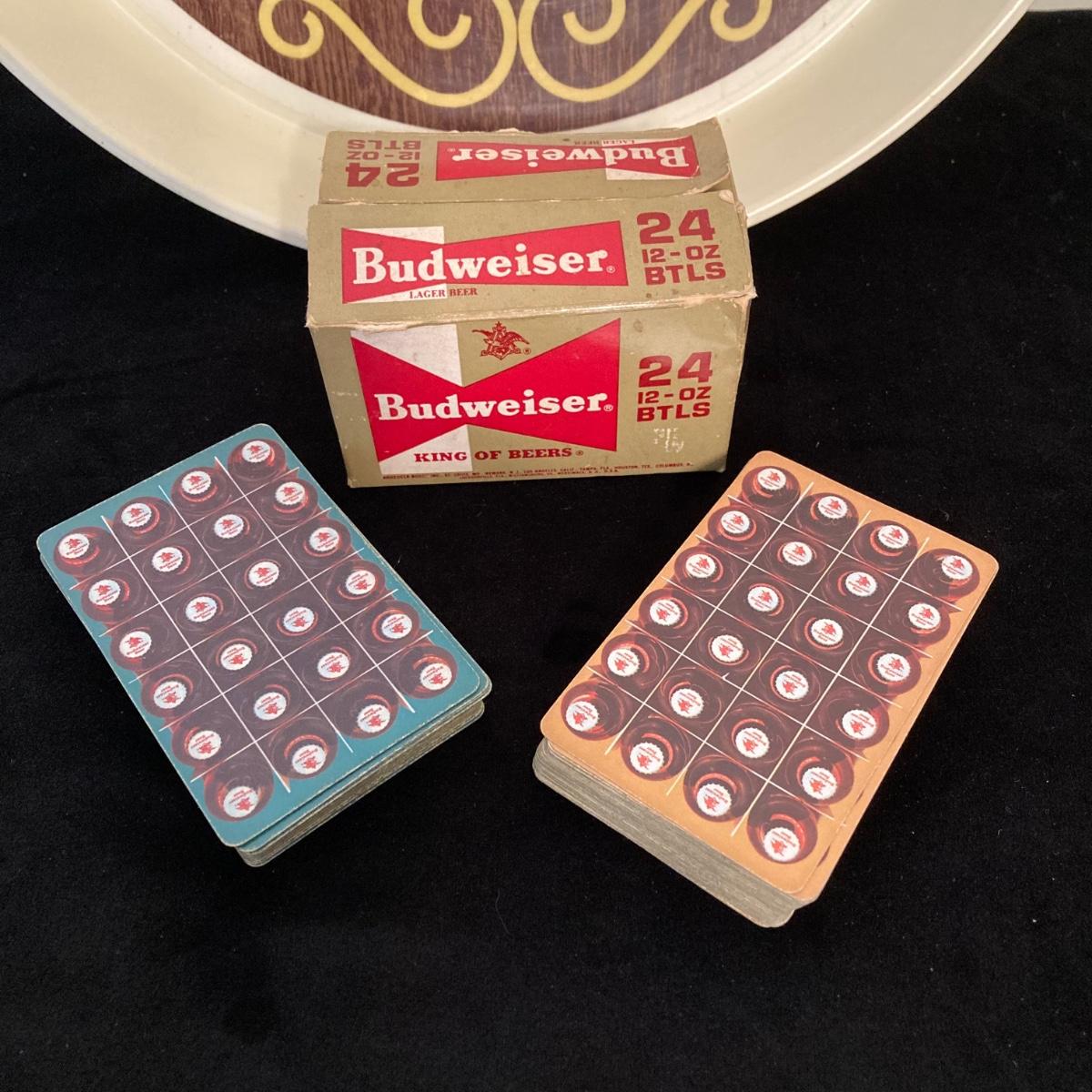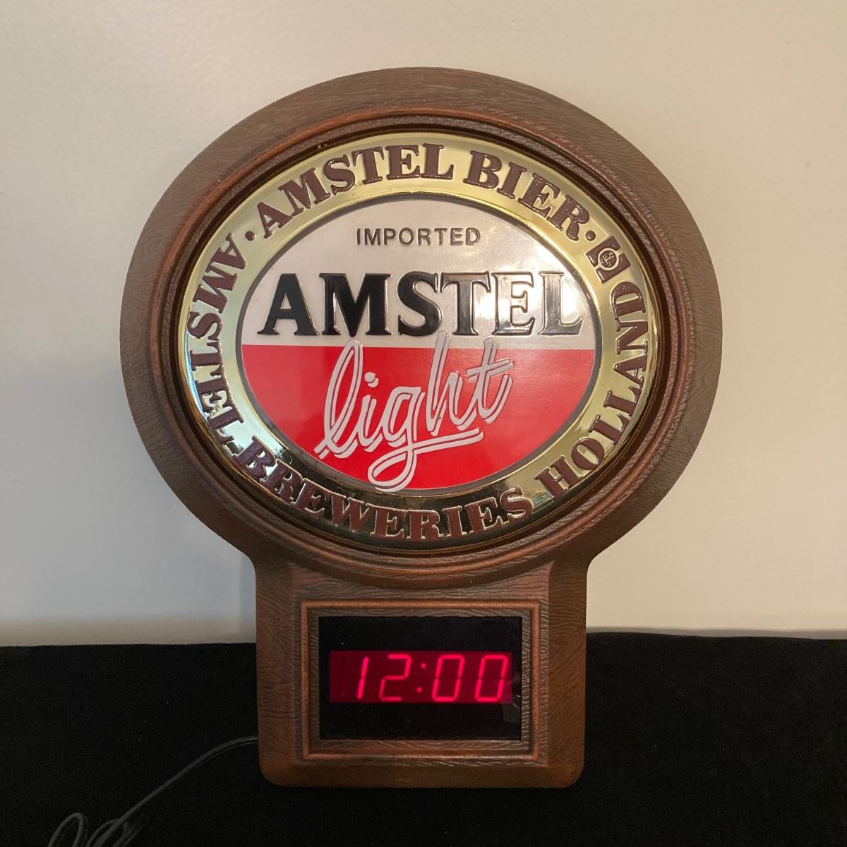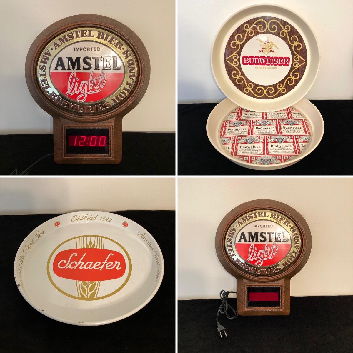 LOT 62: Vintage Amstel Light Digital Wall Clock with Beer Trays (Budweiser, Schaefer and Kaier's) and Budweiser Playing Cards
