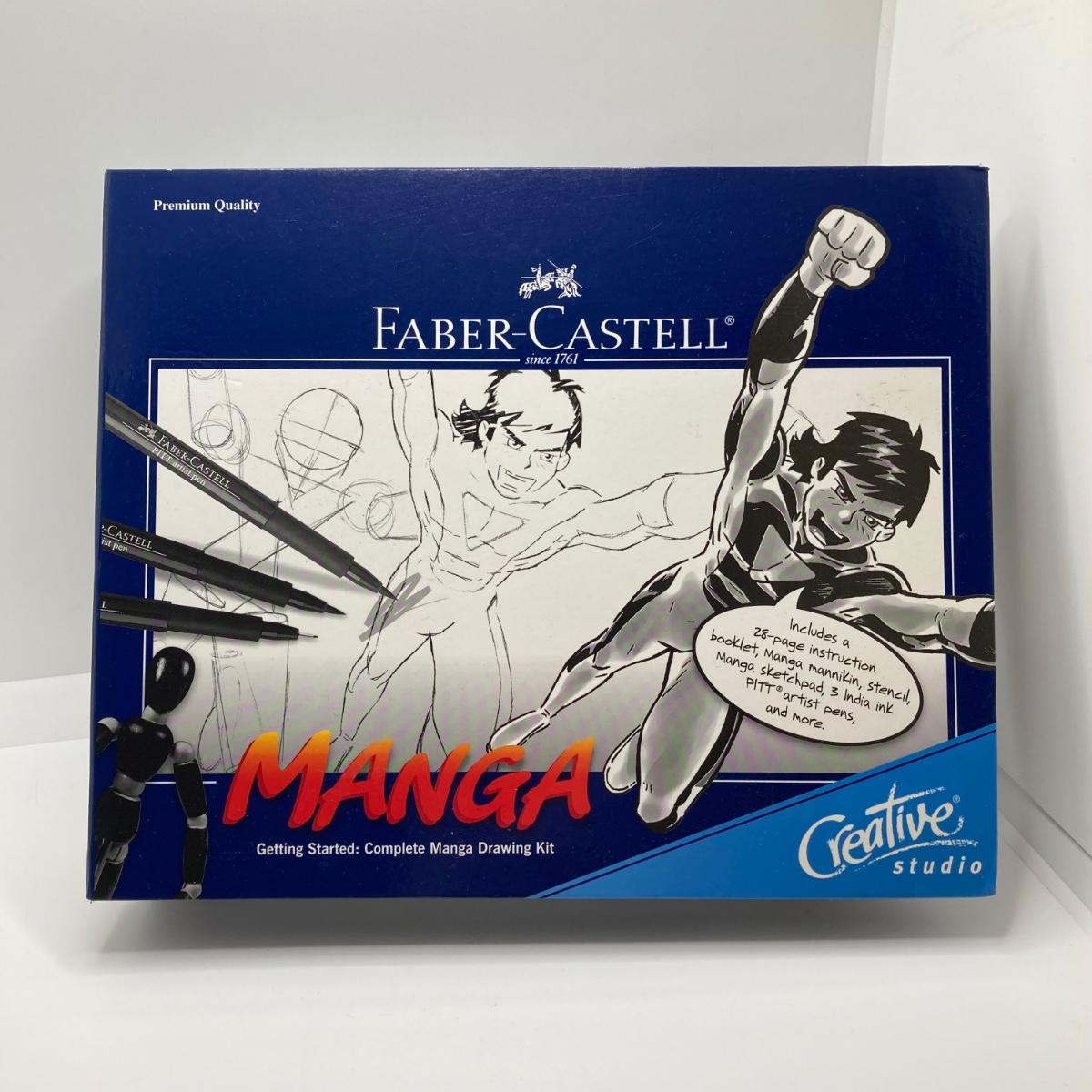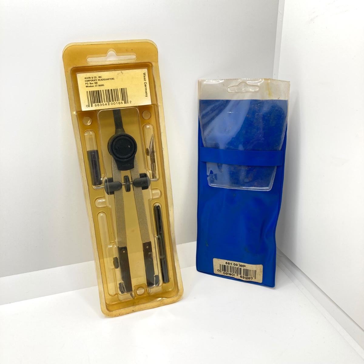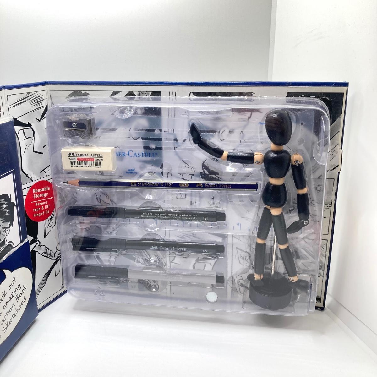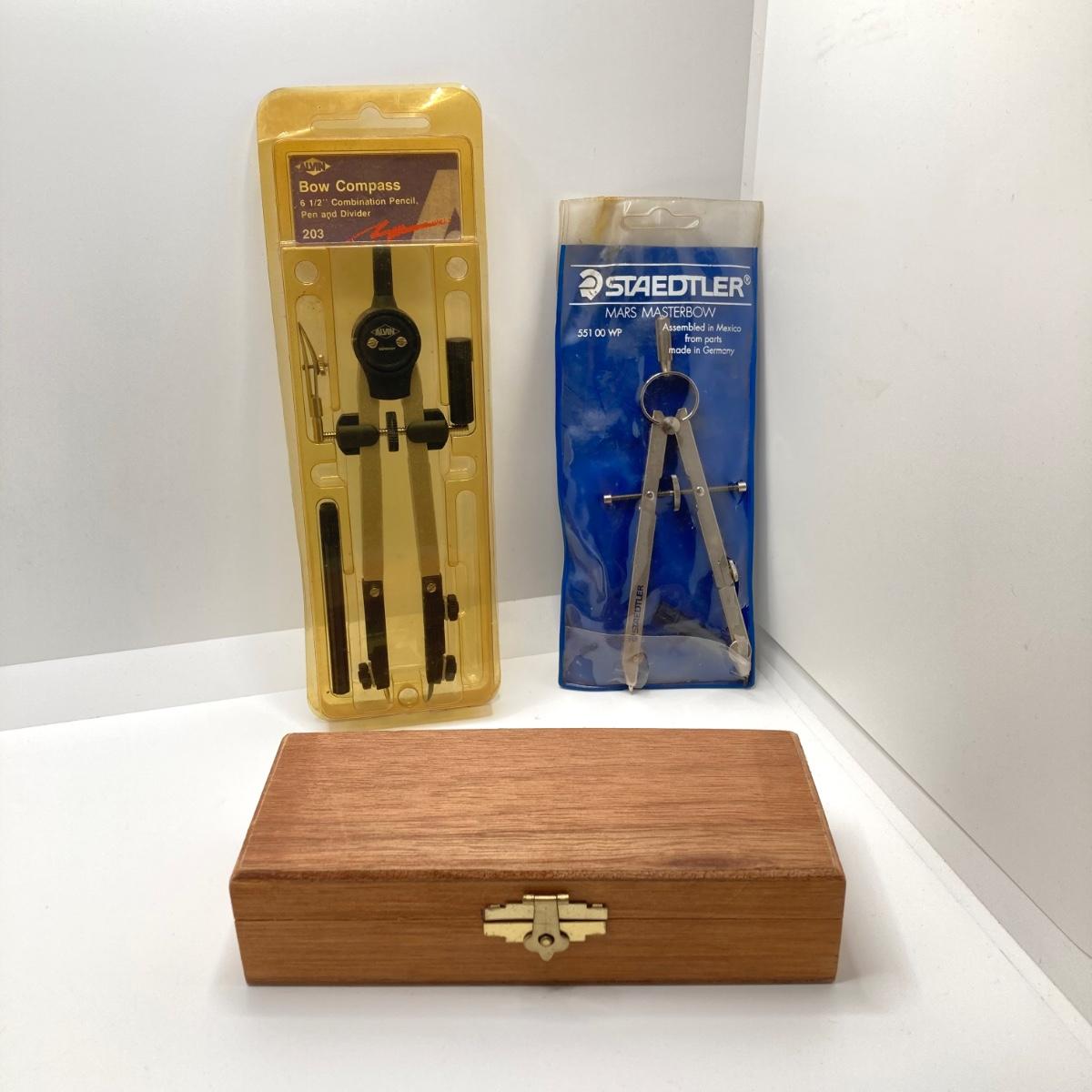 LOT 76: Vintage Drawing Kit / Hobby Collection - Faber Castell Manga Kit, Excel Hobby Knife Set, Sovereign Woodware New Zealand Pencil Case, Protractors, Leather / Vinyl Repair Kit and More