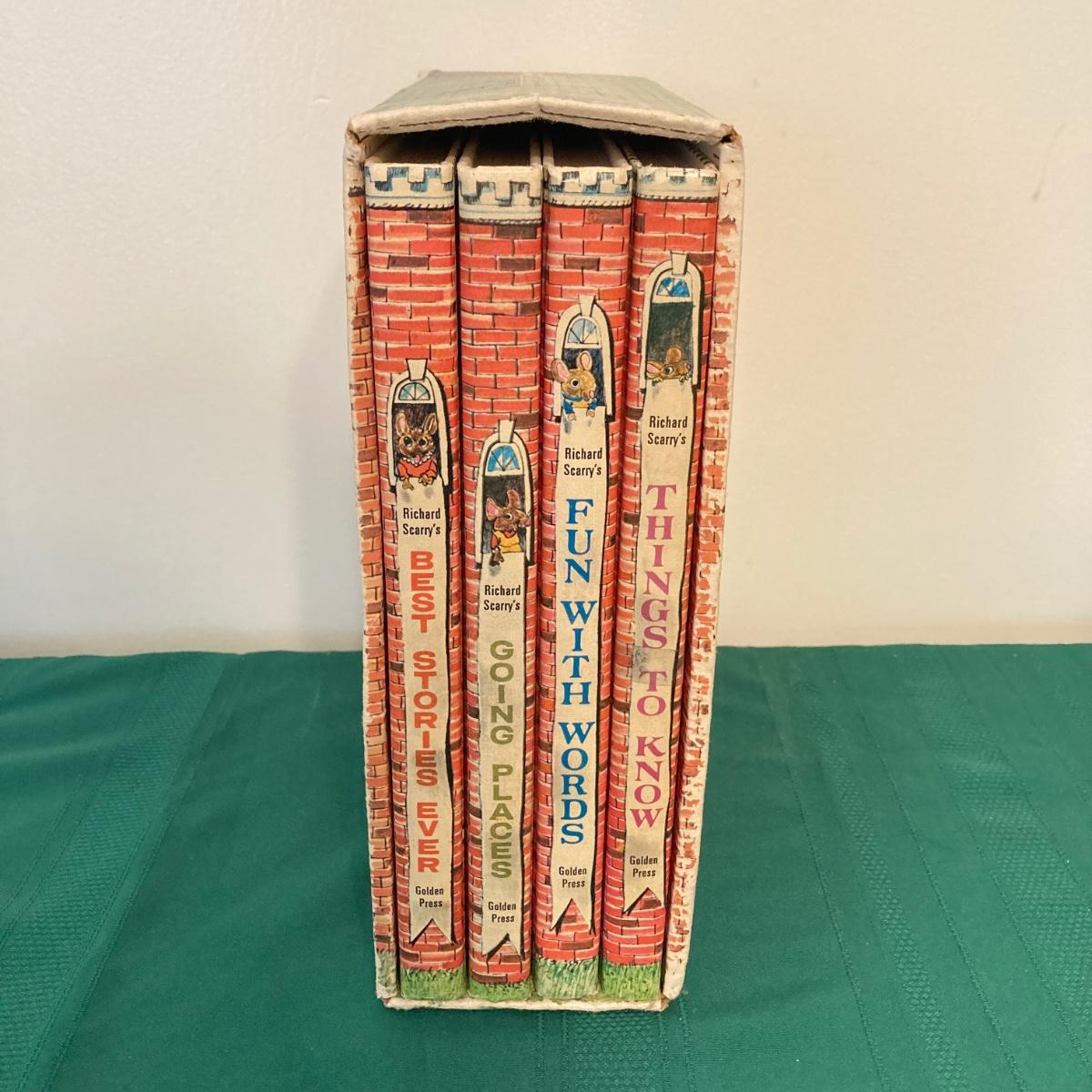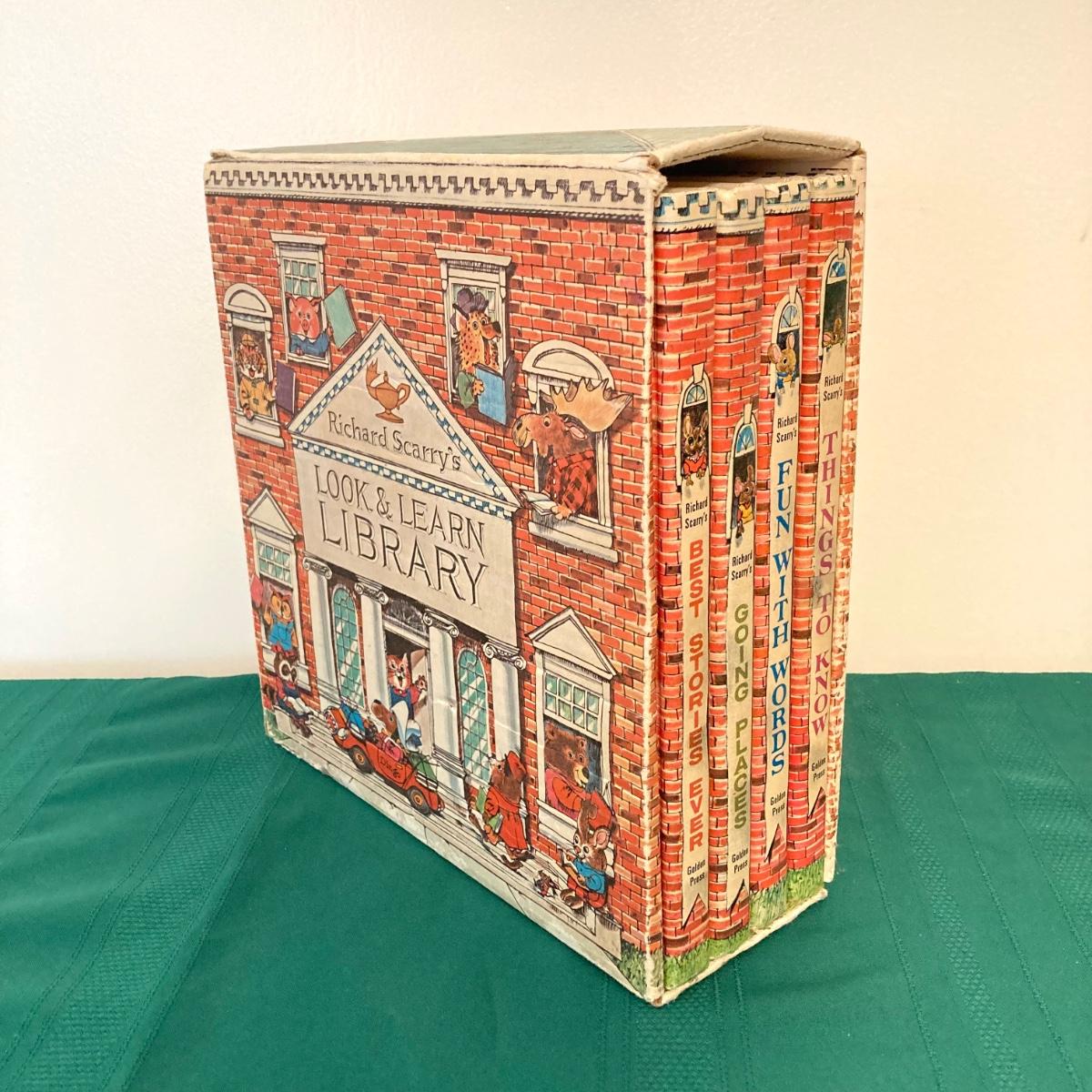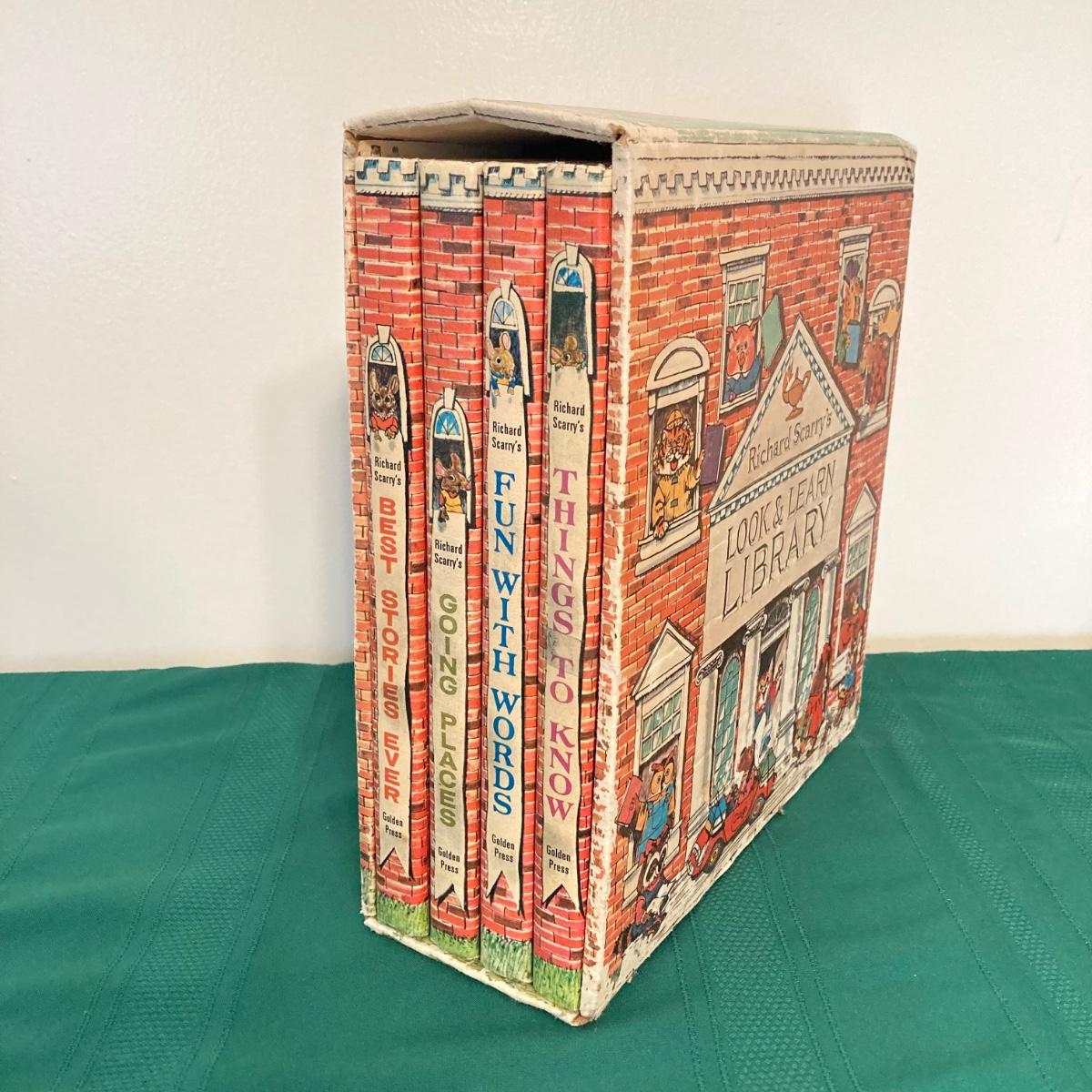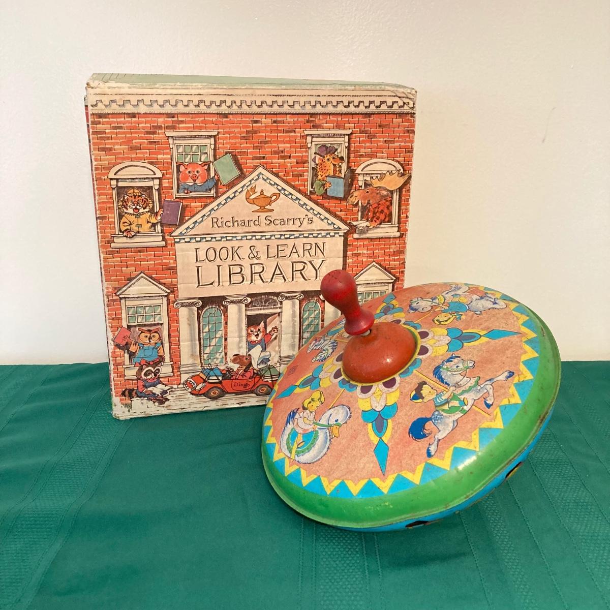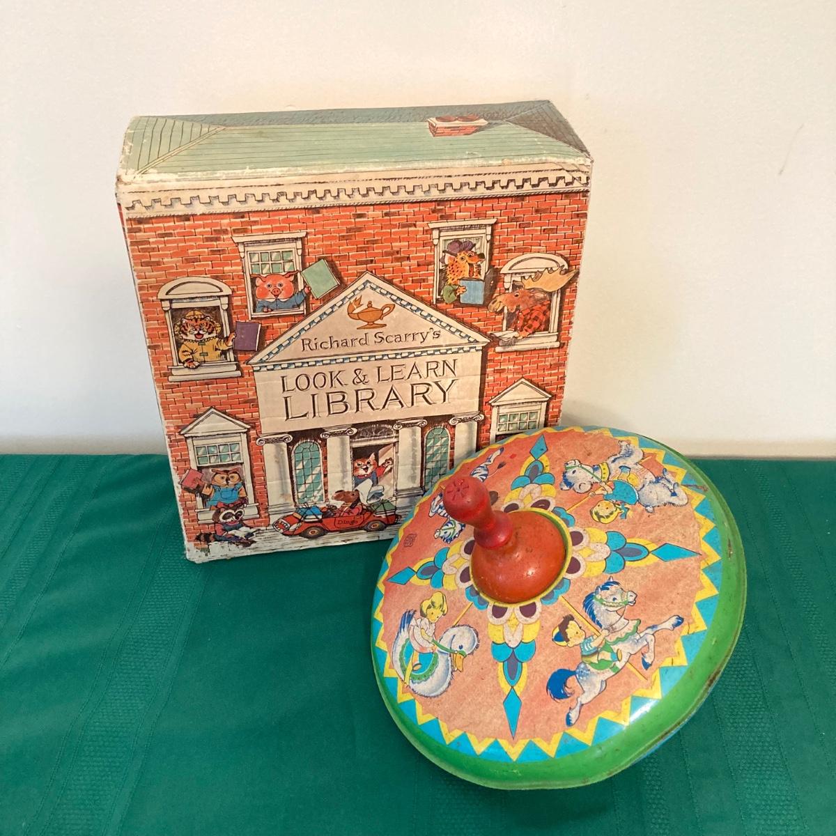 LOT 77: Richard Scarry's Look and Learn Library Book Set and J. Chein & Co. Made in U.S.A. Toy Tin Top