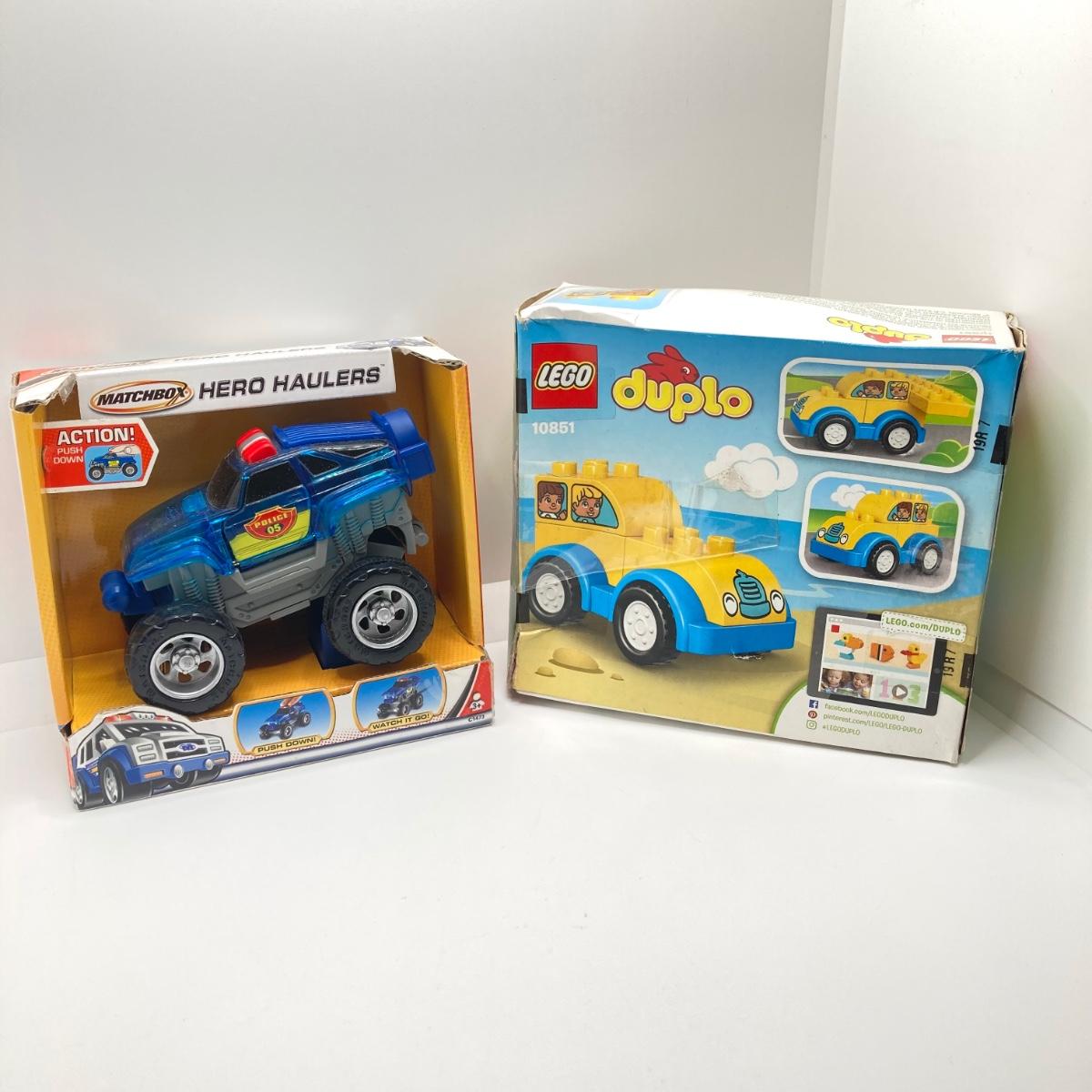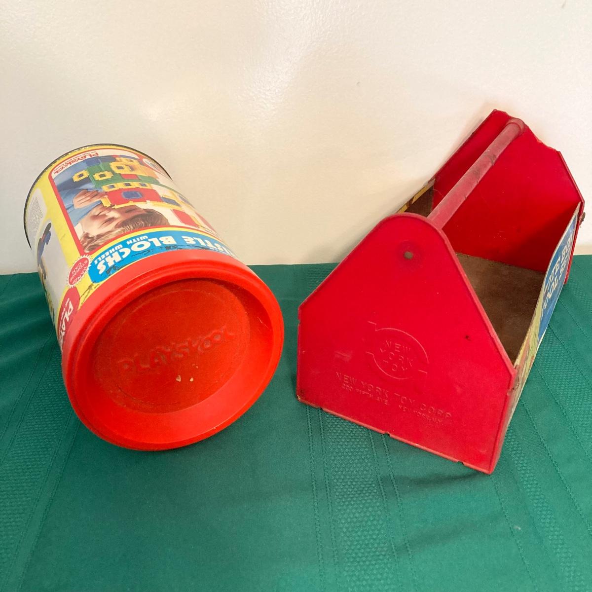 LOT 79: Vintage Toys and Games - Playskool Bristle Blocks with Wheels, New York Toy Corp Just Like Dad's Tool Box, Matchbox Hero Haulers, Lego Duplo and More