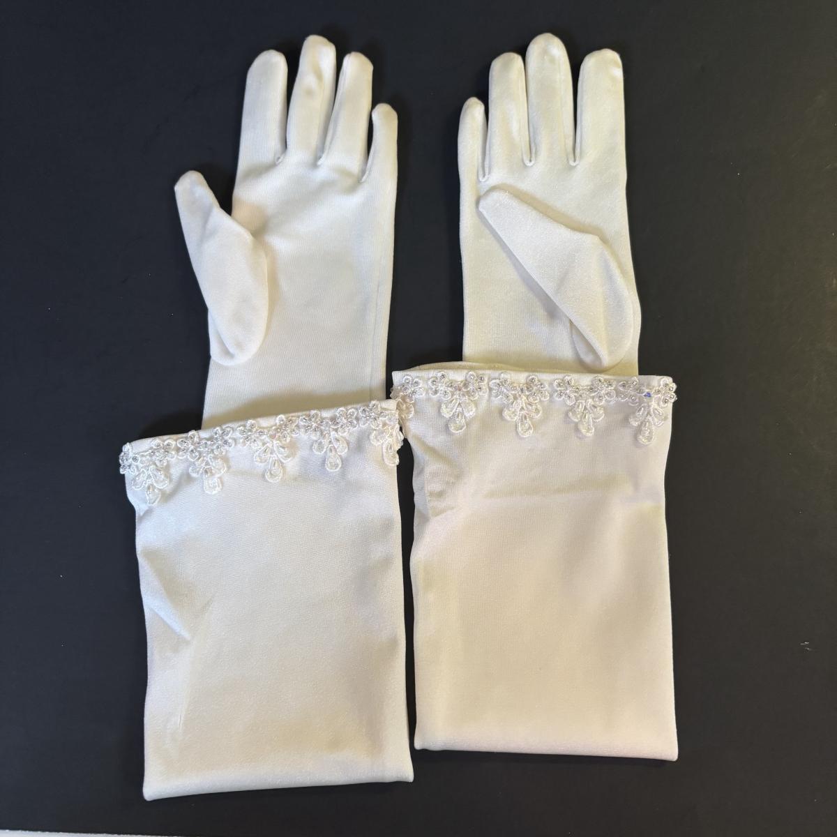 LOT 85: NIP Lucky Number 6 Gift Set, Beautiful Embroidered Elbow Length Bridal Gloves & Collector Shoes