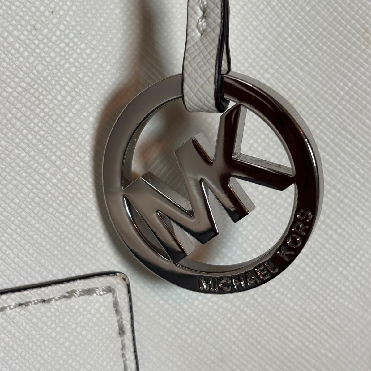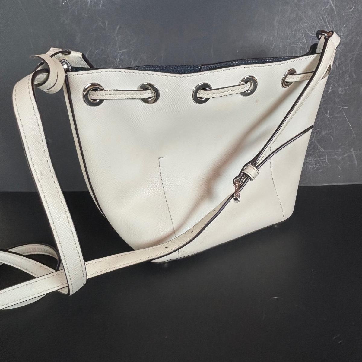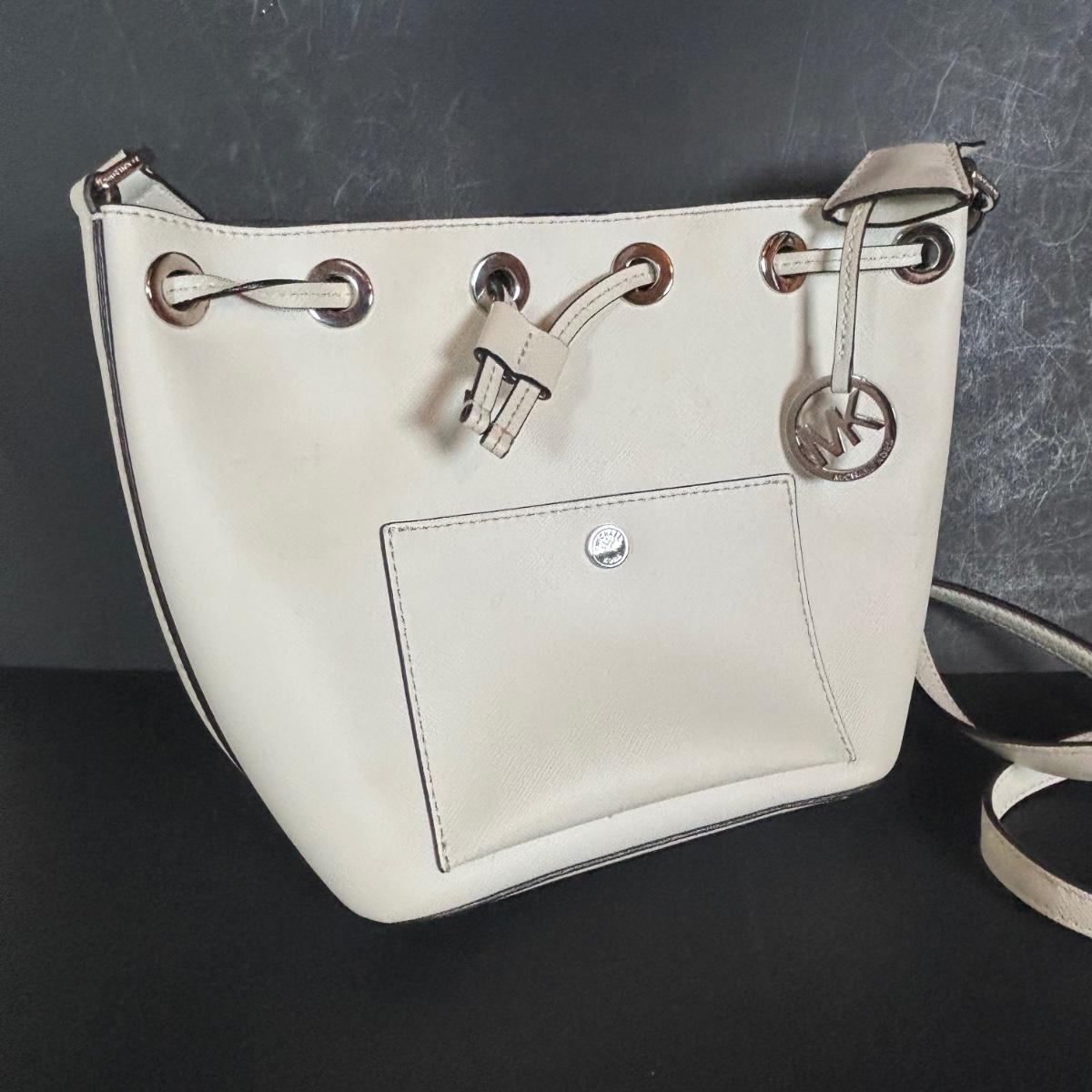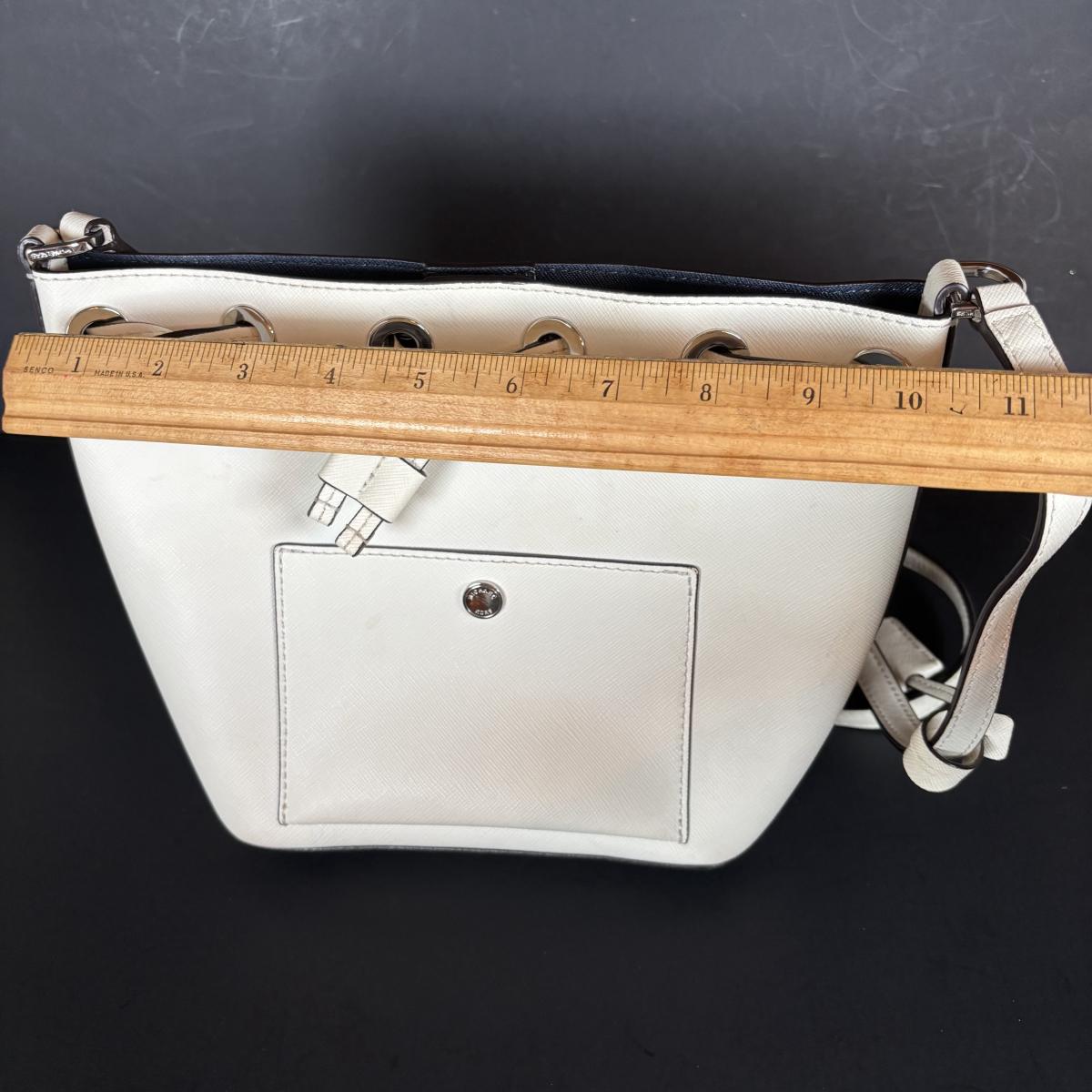 LOT 93: Michael Kors White Leather Dottie medium Bucker Bag