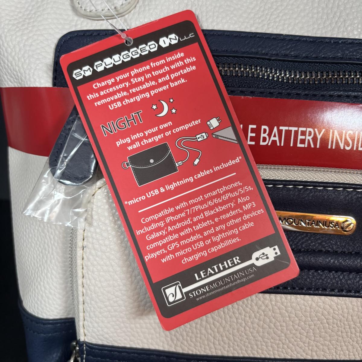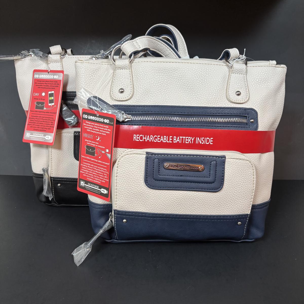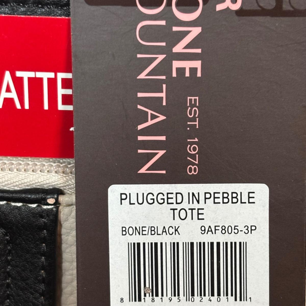 LOT 101: New w/Tags Stone Mountain Leather Plugged in Pebble Tote Bone/Black & Bone/Blue