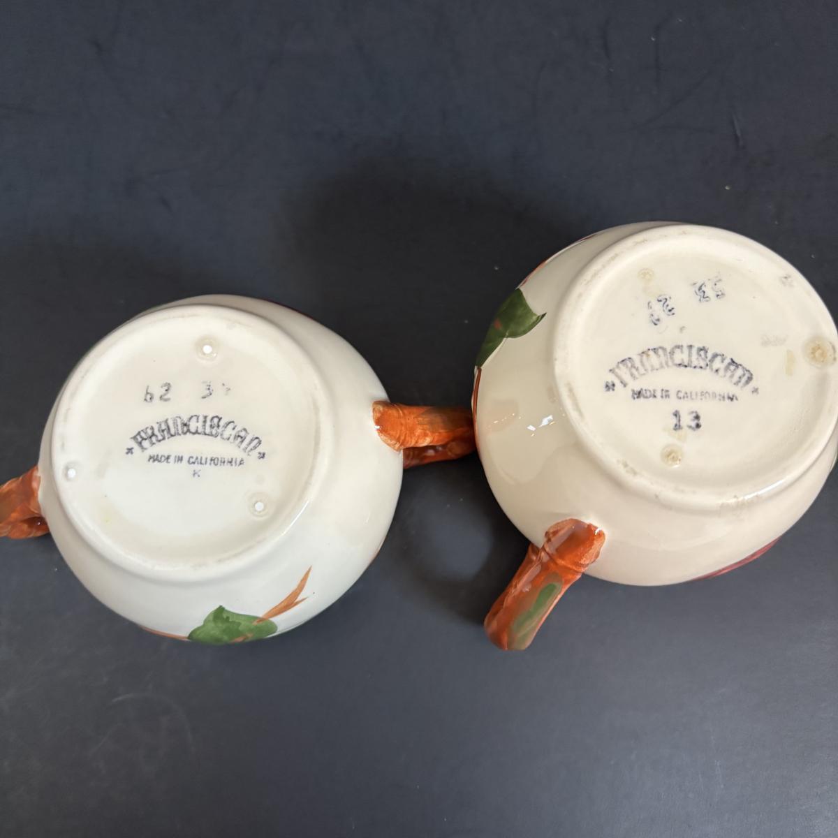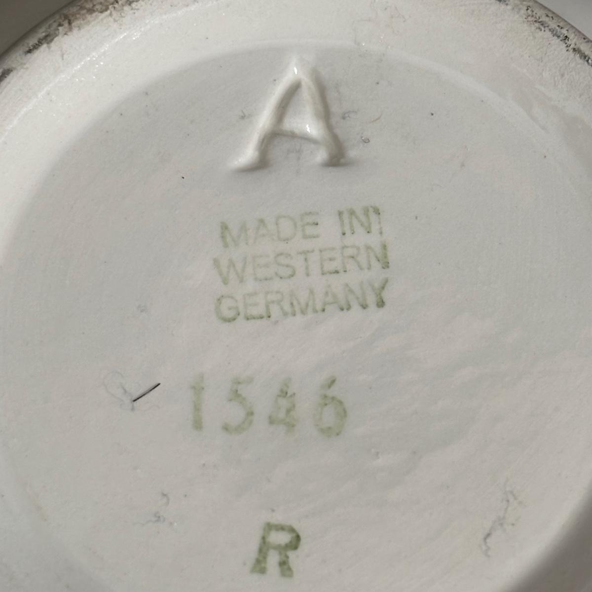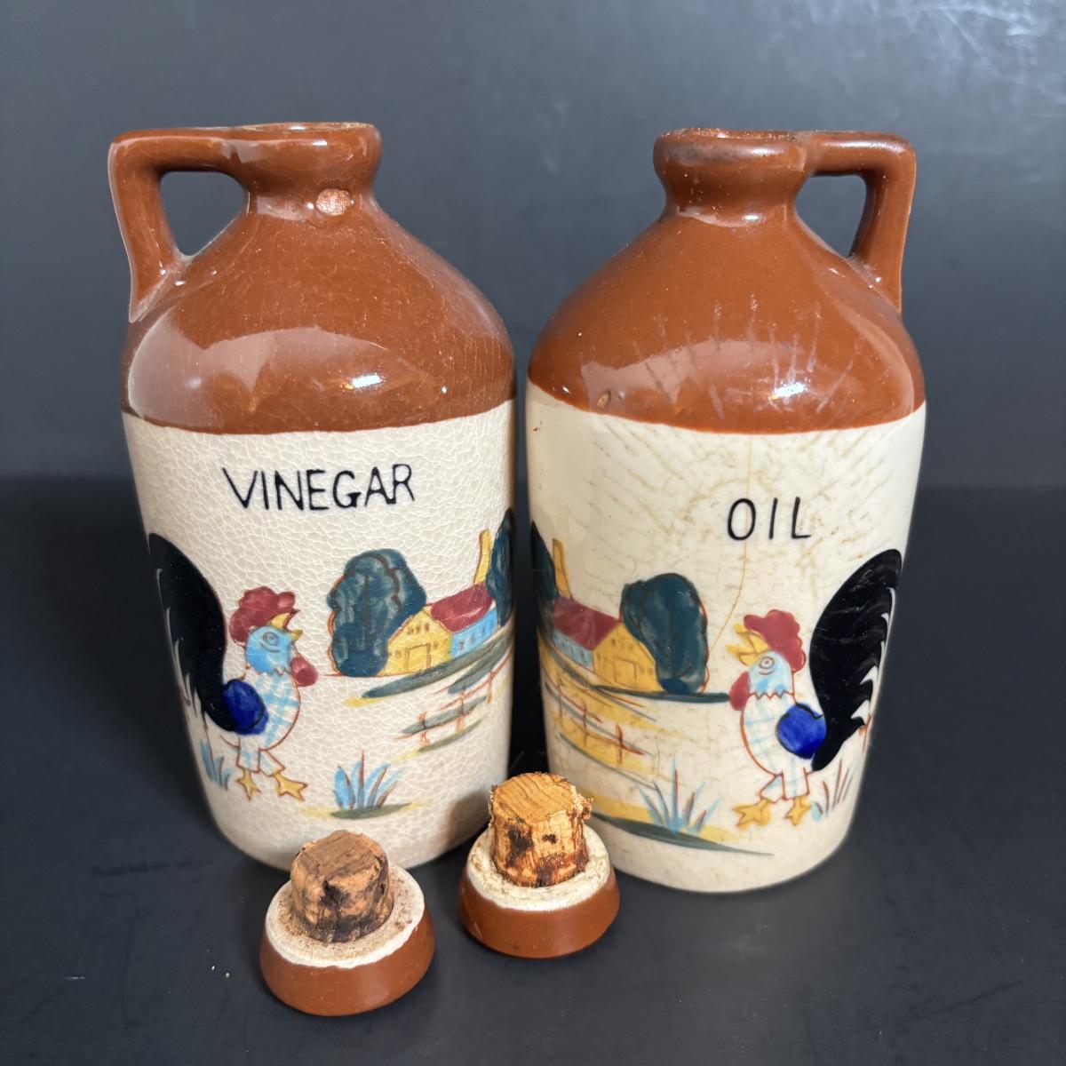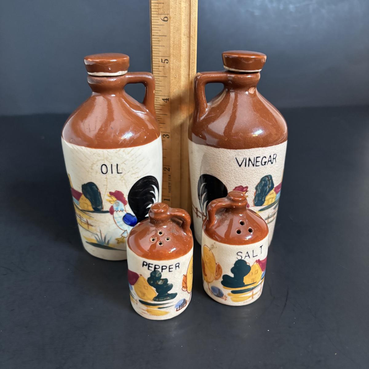 LOT 114: Kitchen Collectibles: Made in Western Germany Father Mug, Pottery Pitcher, Vinegar, Oil, Salt/Pepper Set, Hirco Rosettes Patty Shell Set, Franciscan Creamer w/Sugar Bowl & More