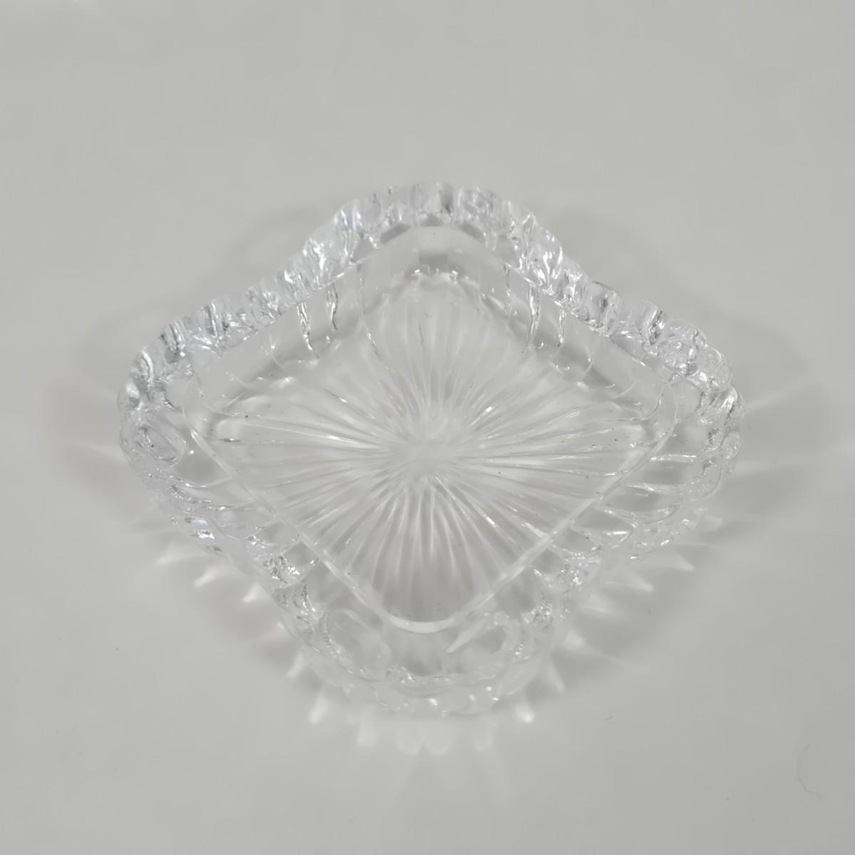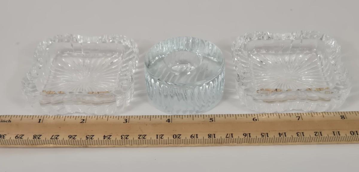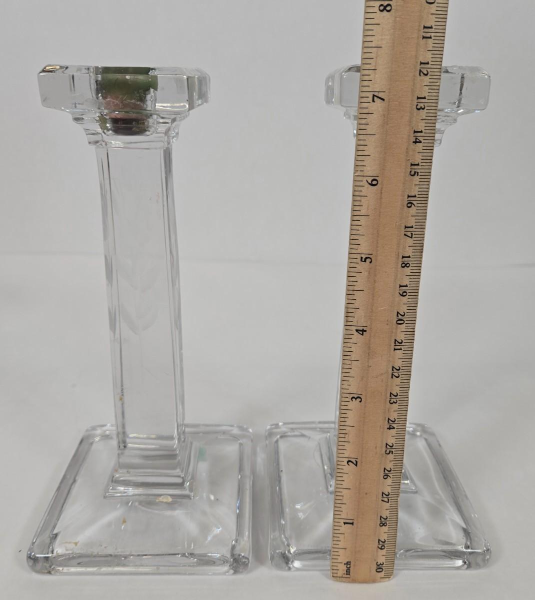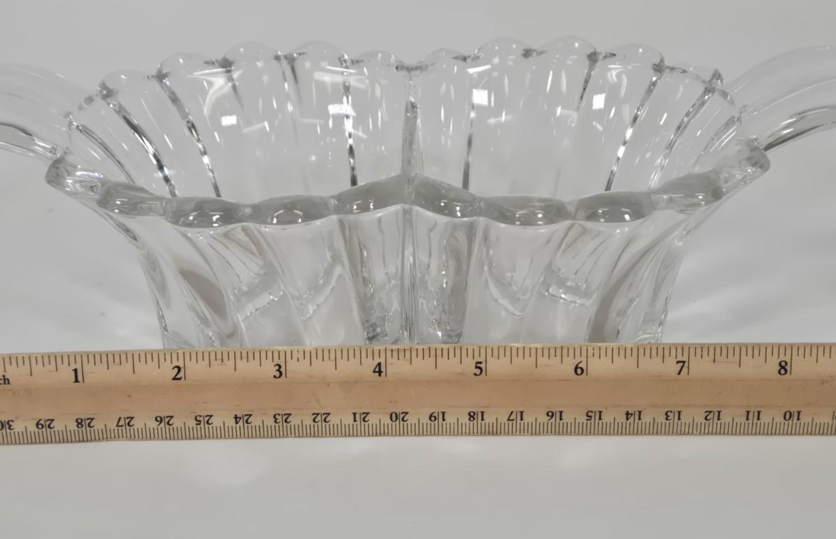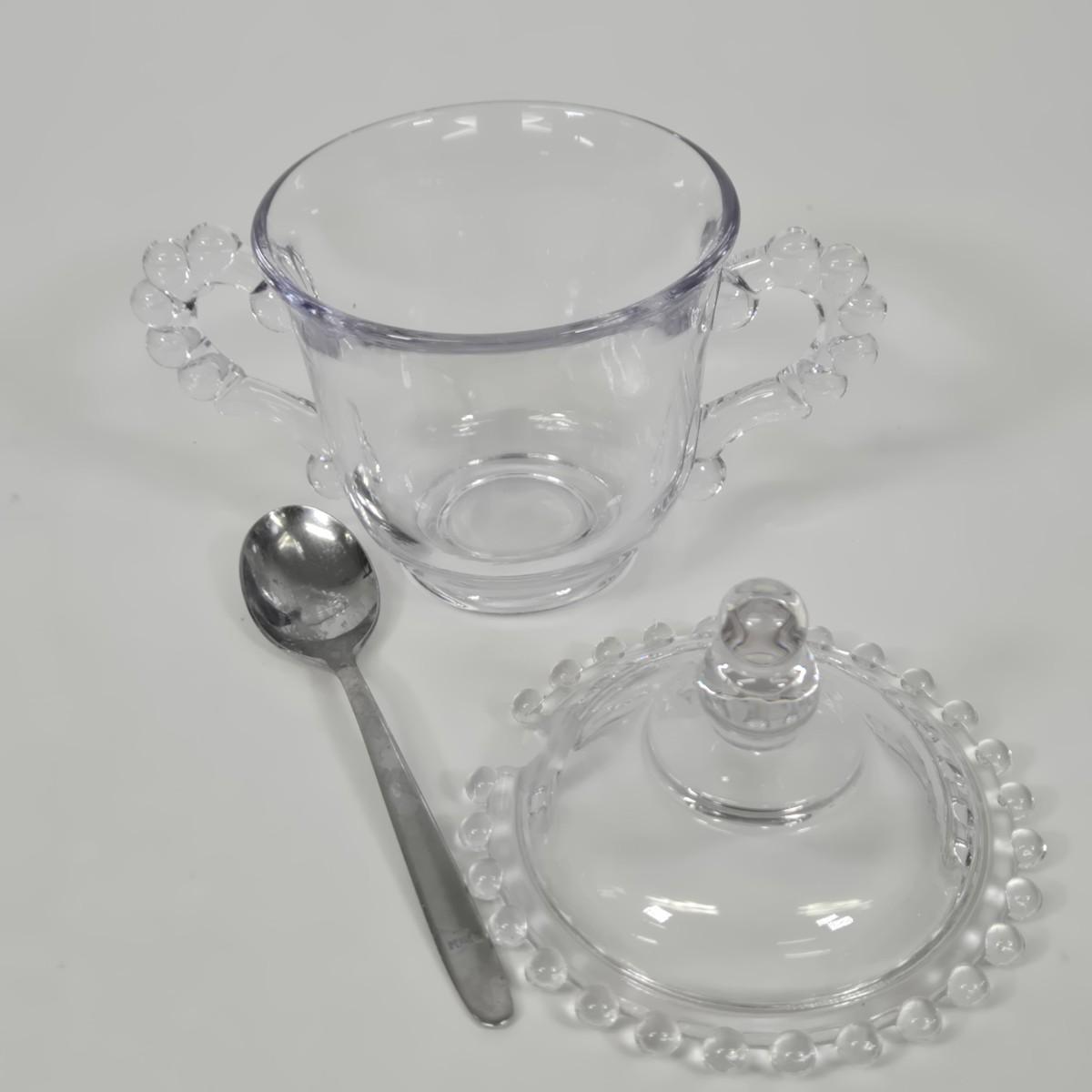 LOT 5: Etched Flower Pair Of Modern Glass Candlesticks, Vintage Imperial Glass Candlewick Clear Glass Condiment Jar with Lid. Heisey Glass Co. Crystolite 2 Compaetment Divided Serving Dish, and More