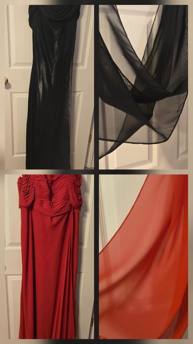 Black dress is size 14. Red dress is size 18. Please see all pictures as they are the best representation of the items. The pictures show condition, measurements if taken, and what is included in the lot. Due to the large amount that we photograph and the time frame, we are not always able to take measurements. All items unless noted, are pre-owned and have been used. If you purchased furniture, you must bring help. We do not allow one person to carry large furniture out on their own. Bring help, tools and a truck for the safety of our client’s homes, and your personal safety. Any damages that result to the property including walls, and floors due to moving of the furniture will be charged to the buyer. Company policy. Thank you.
