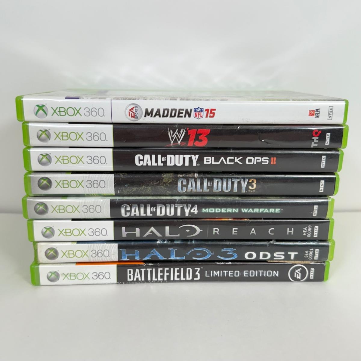 LOT 43: XBOX 360 Video Games: Battlefield 3, Call of Duty (Black Ops II, 3 & 4: Modern Warfare), Halo 3 ODST & Reach, NFL Madden ‘15 & WW13
