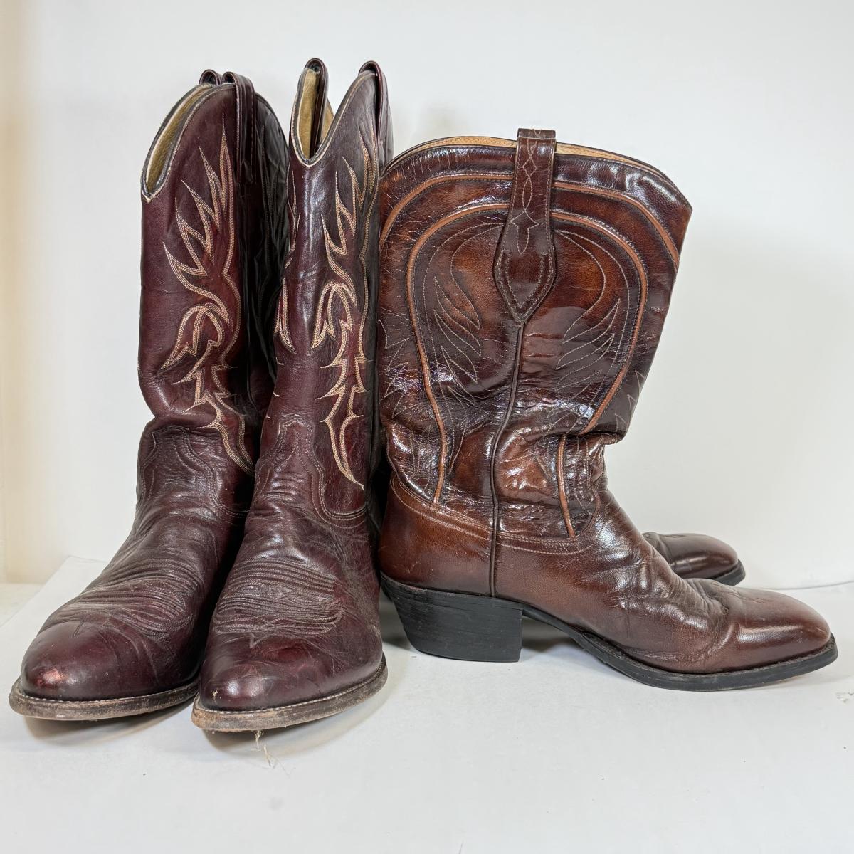 LOT 51: Two Pairs of Cowboy Boots: Dan Post (made in Spain) & J. Chisholm (made in USA)