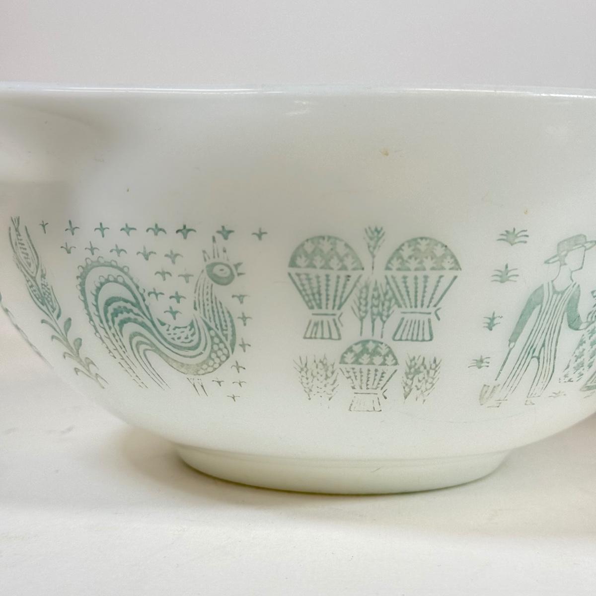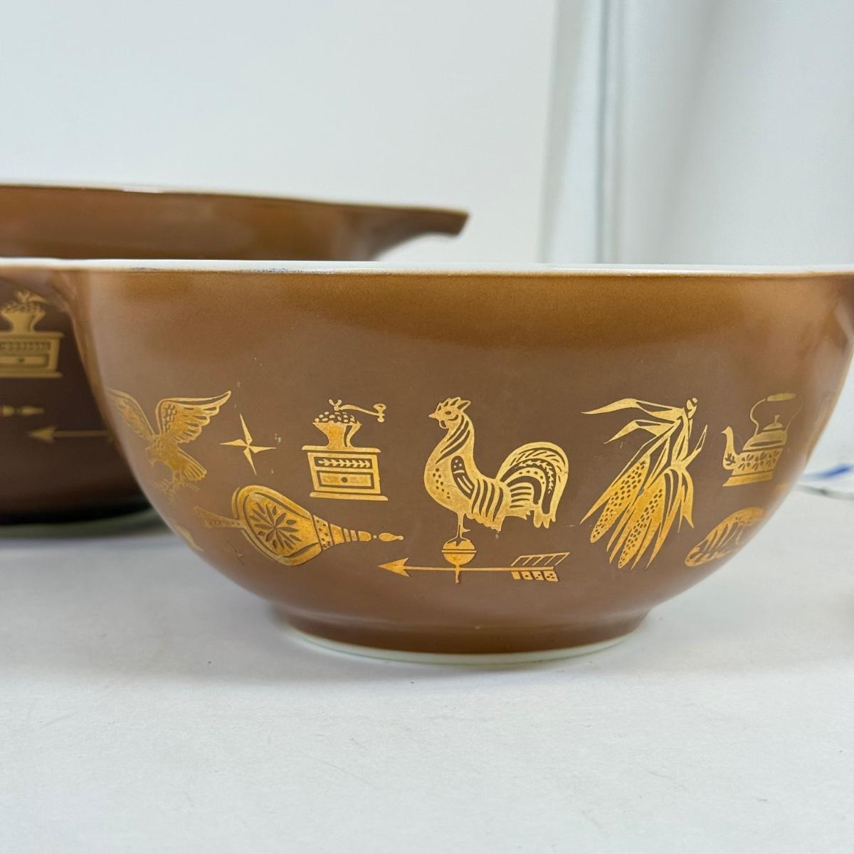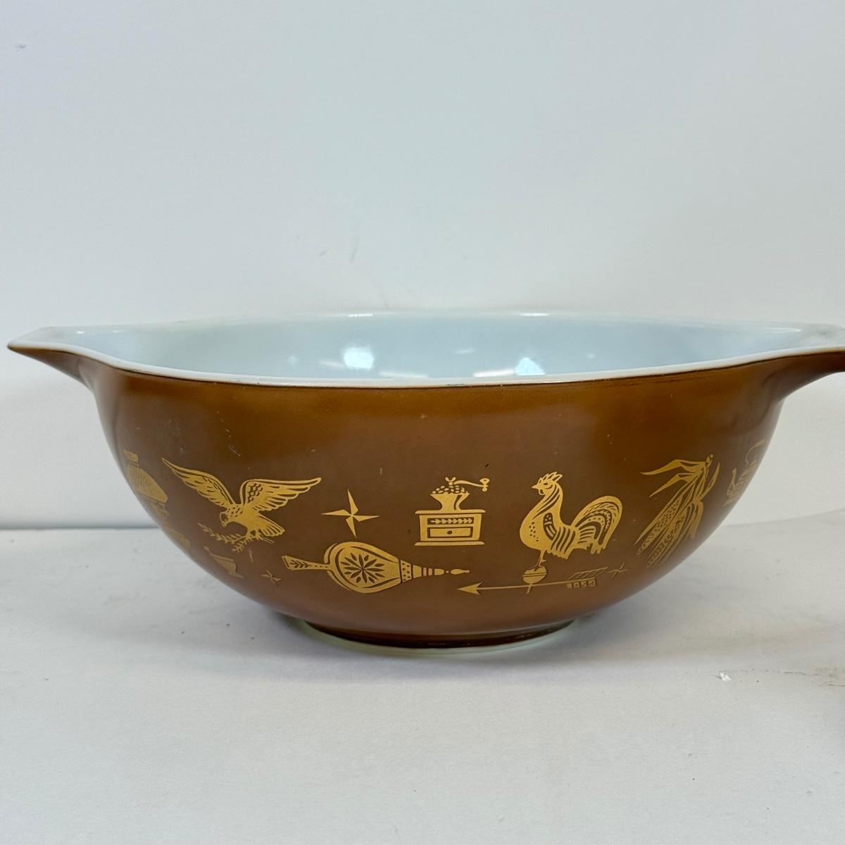 LOT 54: Pyrex Collection: Early American Cinderella Mixing Bowl Set, Amish Butterprint Bowl & (Corning) Ruby Scroll Saucers/Plates