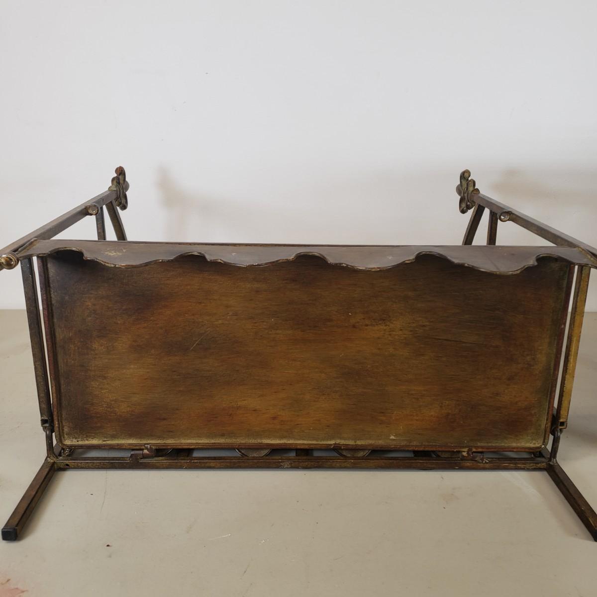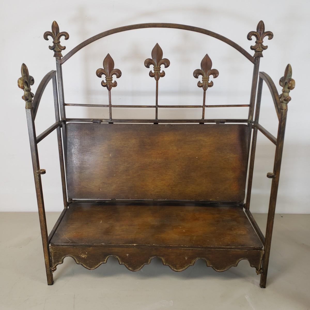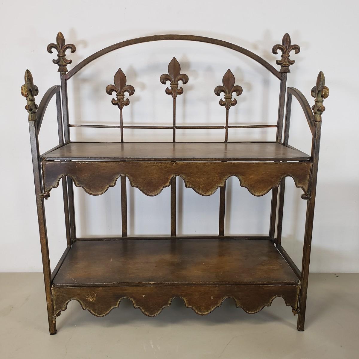 LOT 91: Fleur de Lis Metal Shelf & Bamboo Stool/Plant Stand
