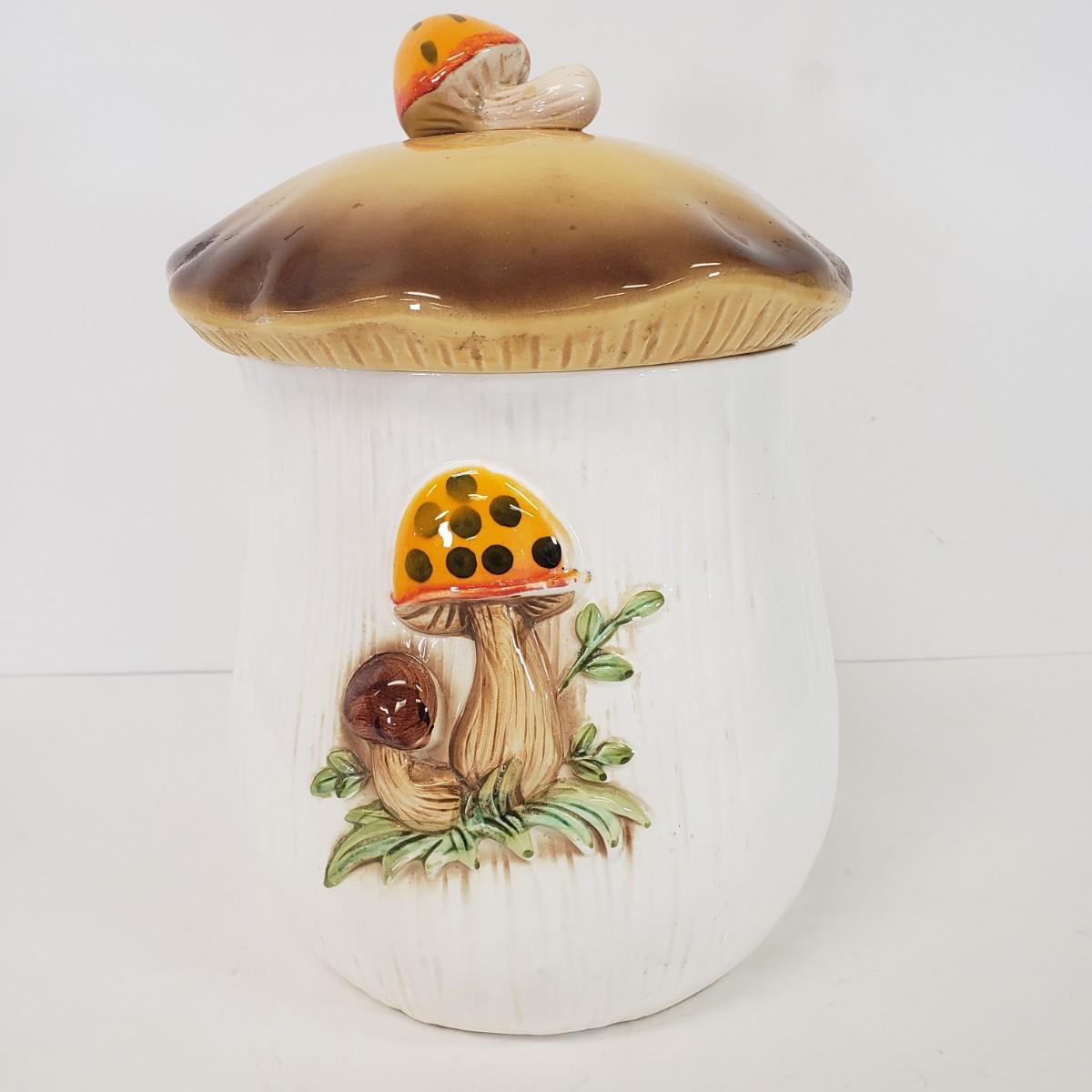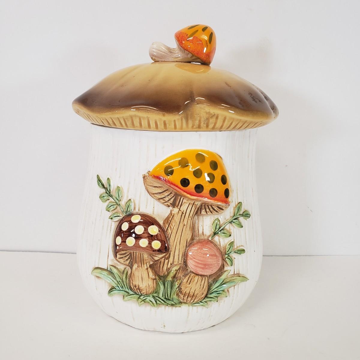 LOT 100: Vintage Merry Mushrooms Ceramic Canister
