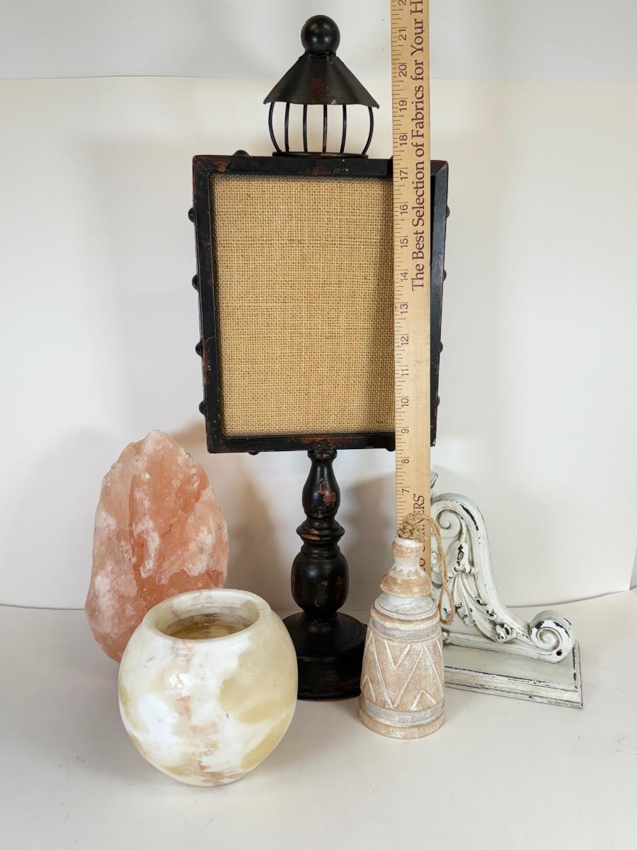 LOT 103: Shabby Chic Home Decor Collection: Corkboard on Stand, Salt Lamp (no light) & More