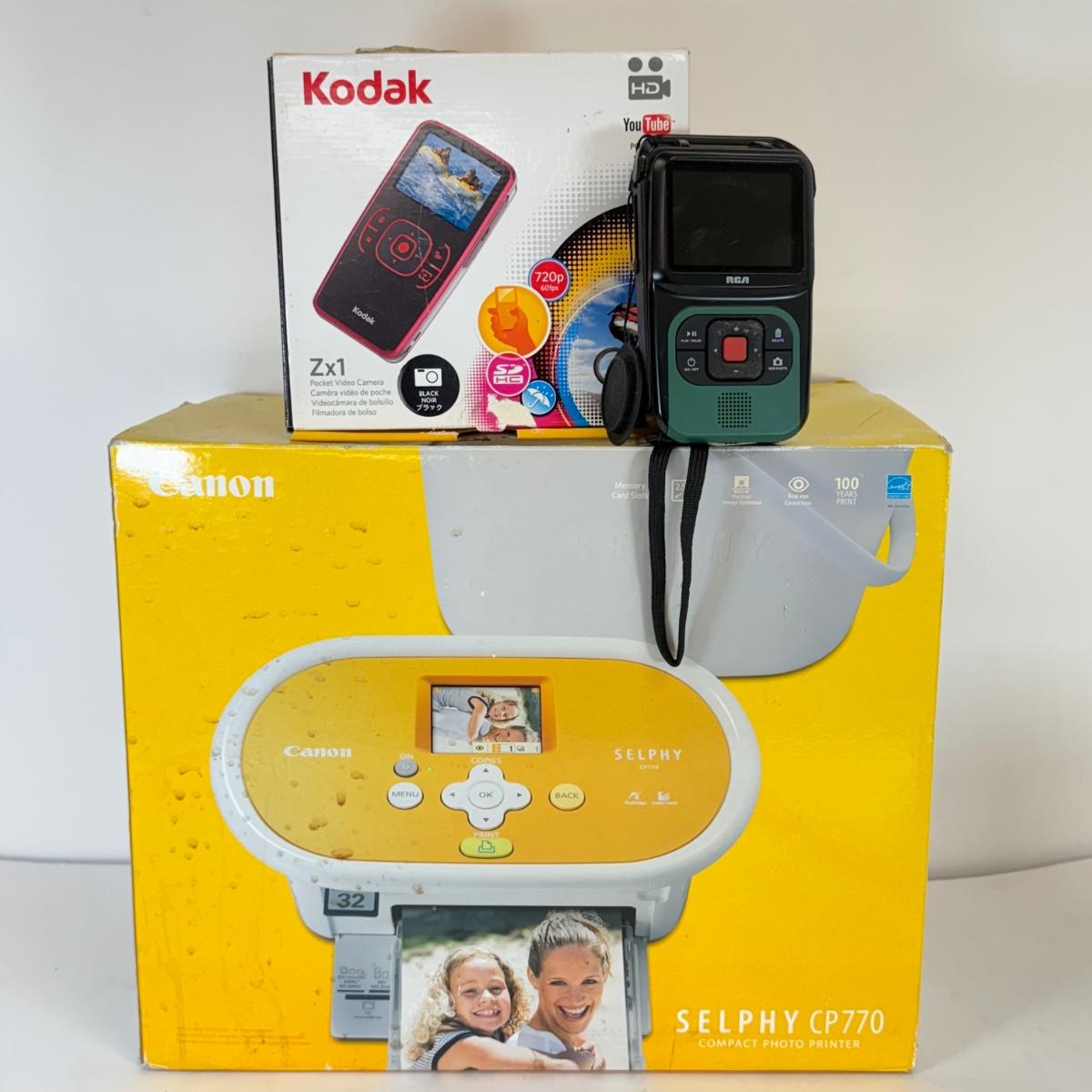 LOT 136: Canon Selphy CP770 Printer, Kodak & RCA Sport Cameras