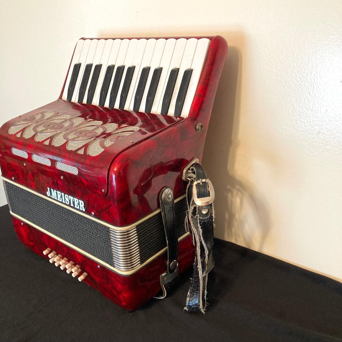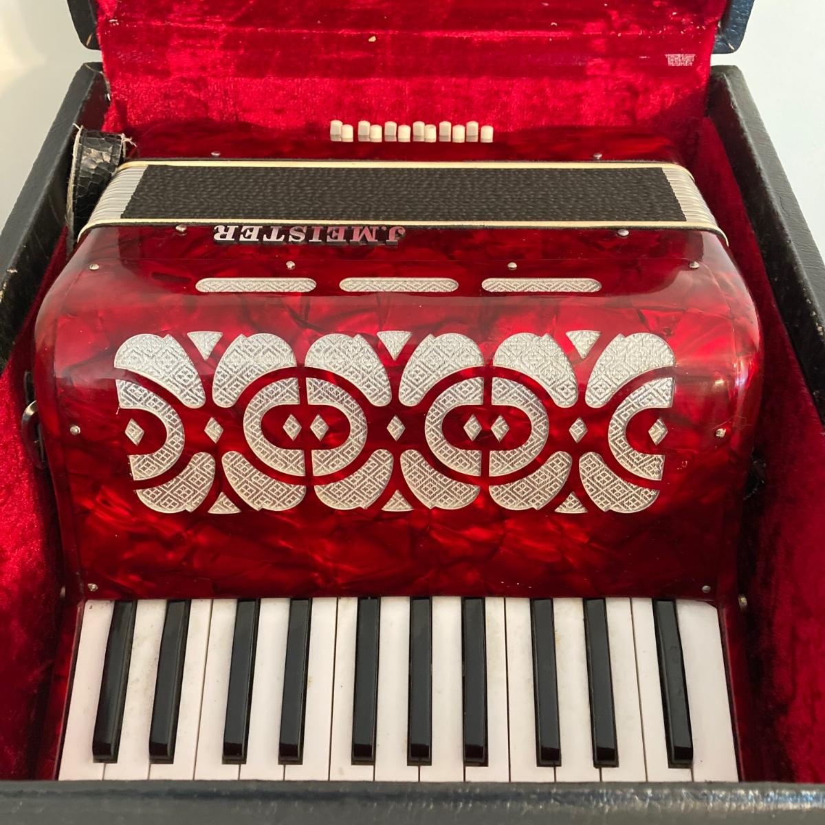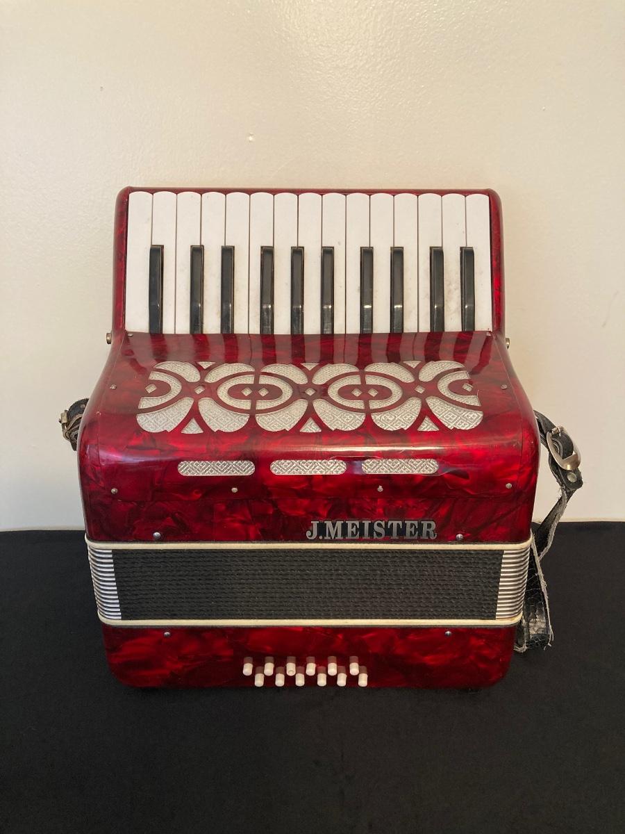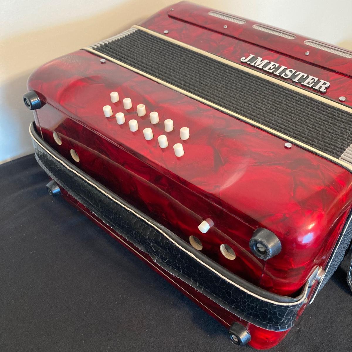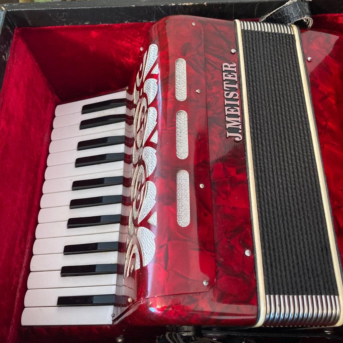LOT 138: J. Meister Red Accordion with Carrying Case and Key