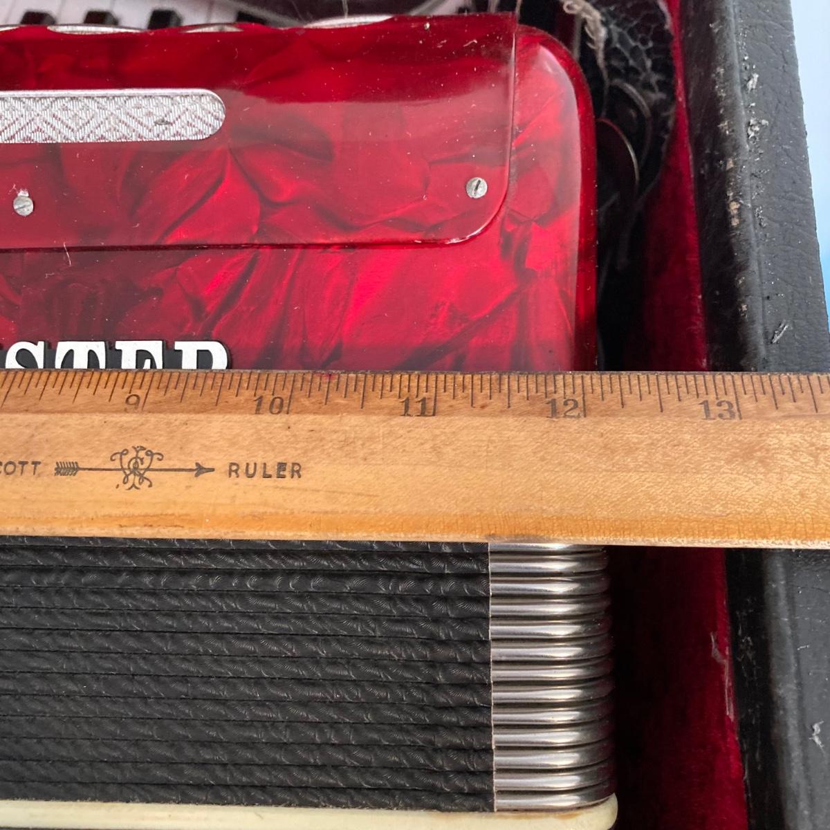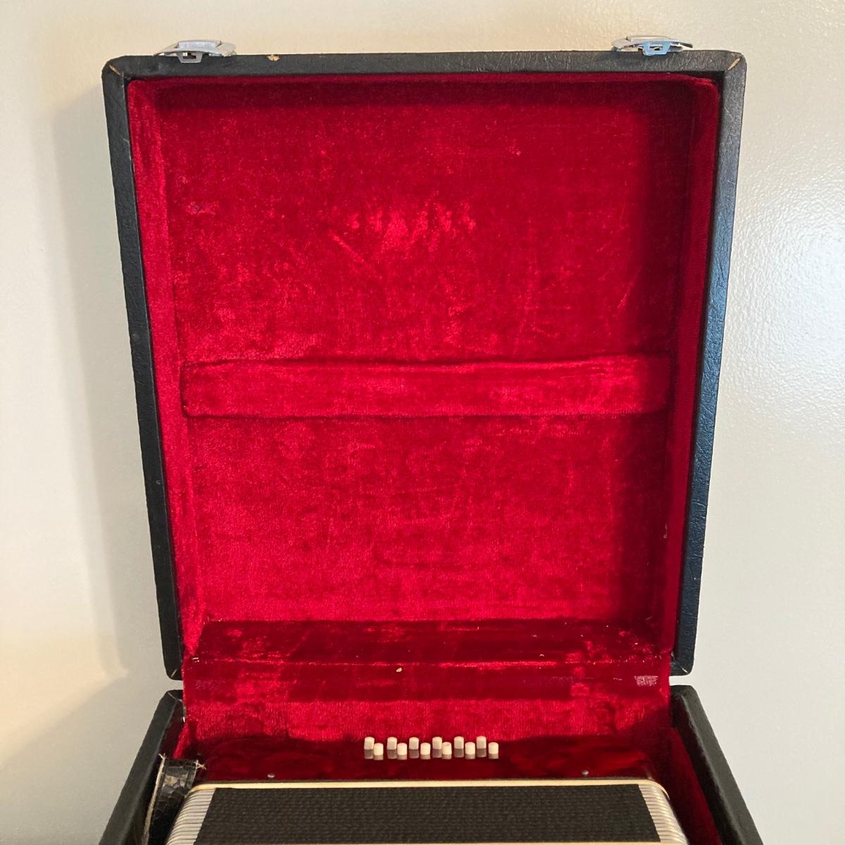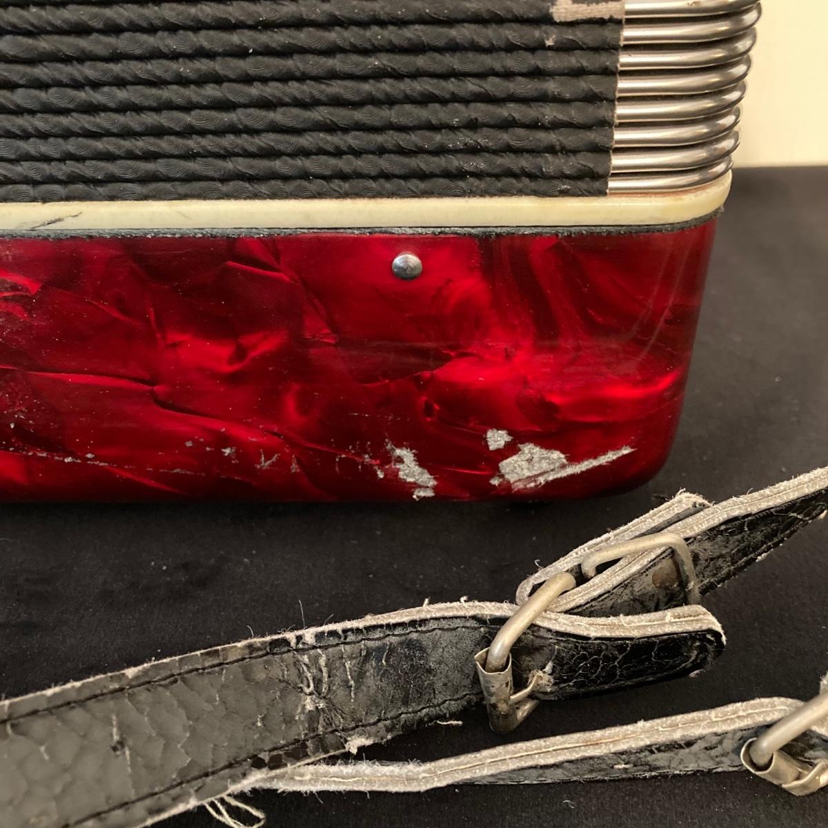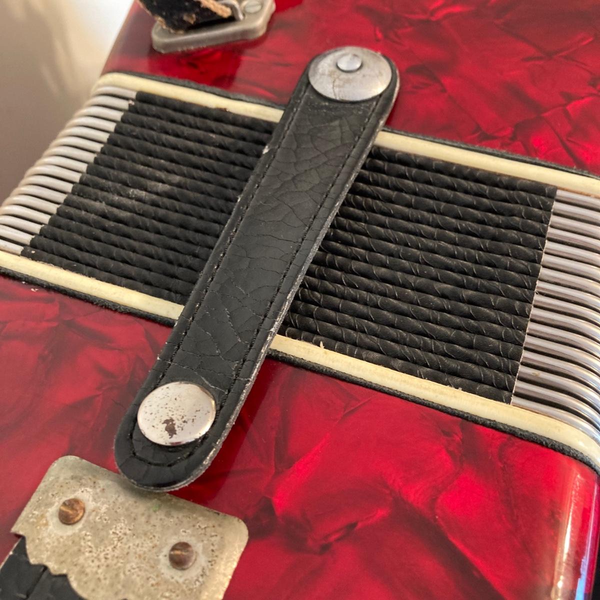 LOT 138: J. Meister Red Accordion with Carrying Case and Key