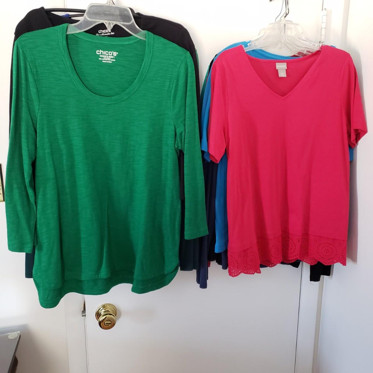 LOT 9Z: 13 Chico's Basic Solid Tops Size 1-2