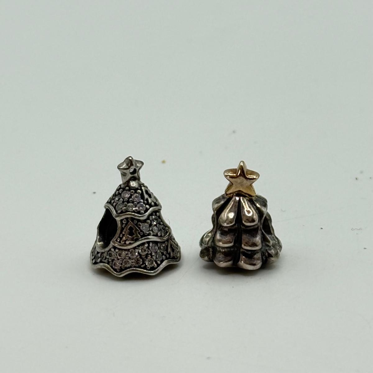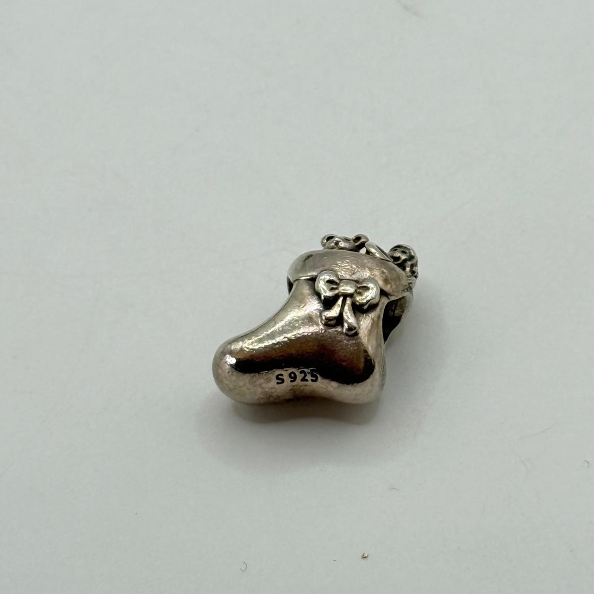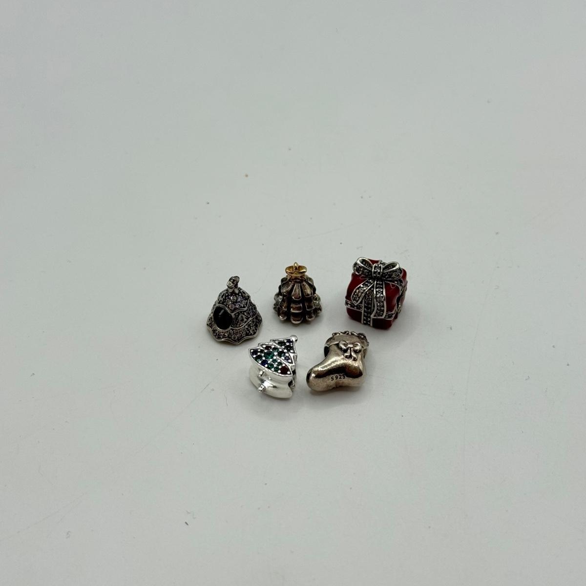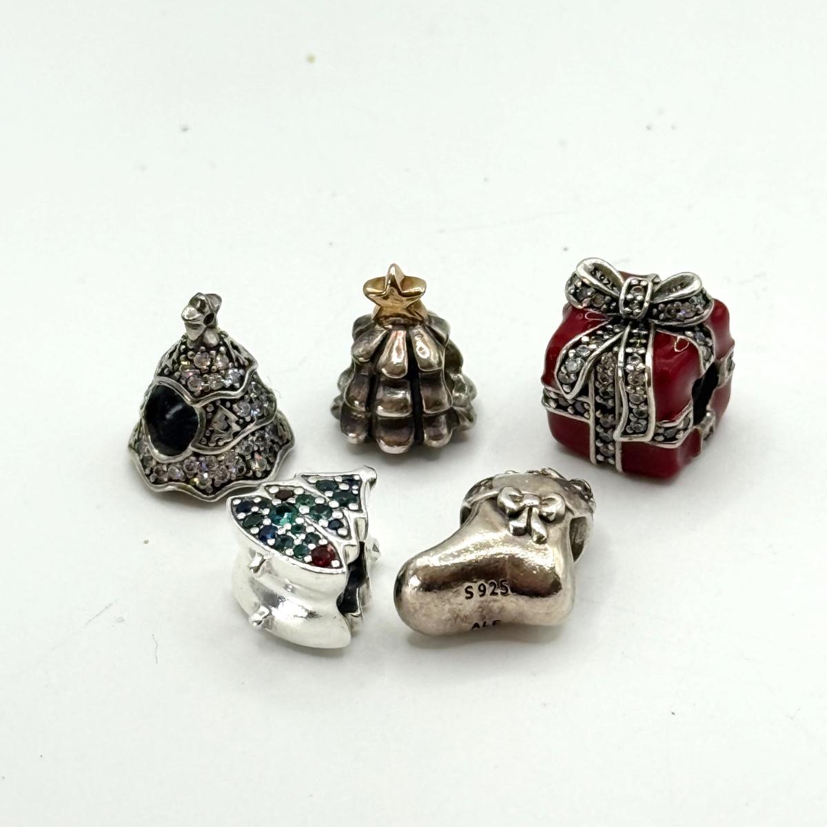 LOT 27J: 925 ALE Sterling Silver Pandora Bracelet Christmas Tree, Present, Stocking Charms (18.74g)