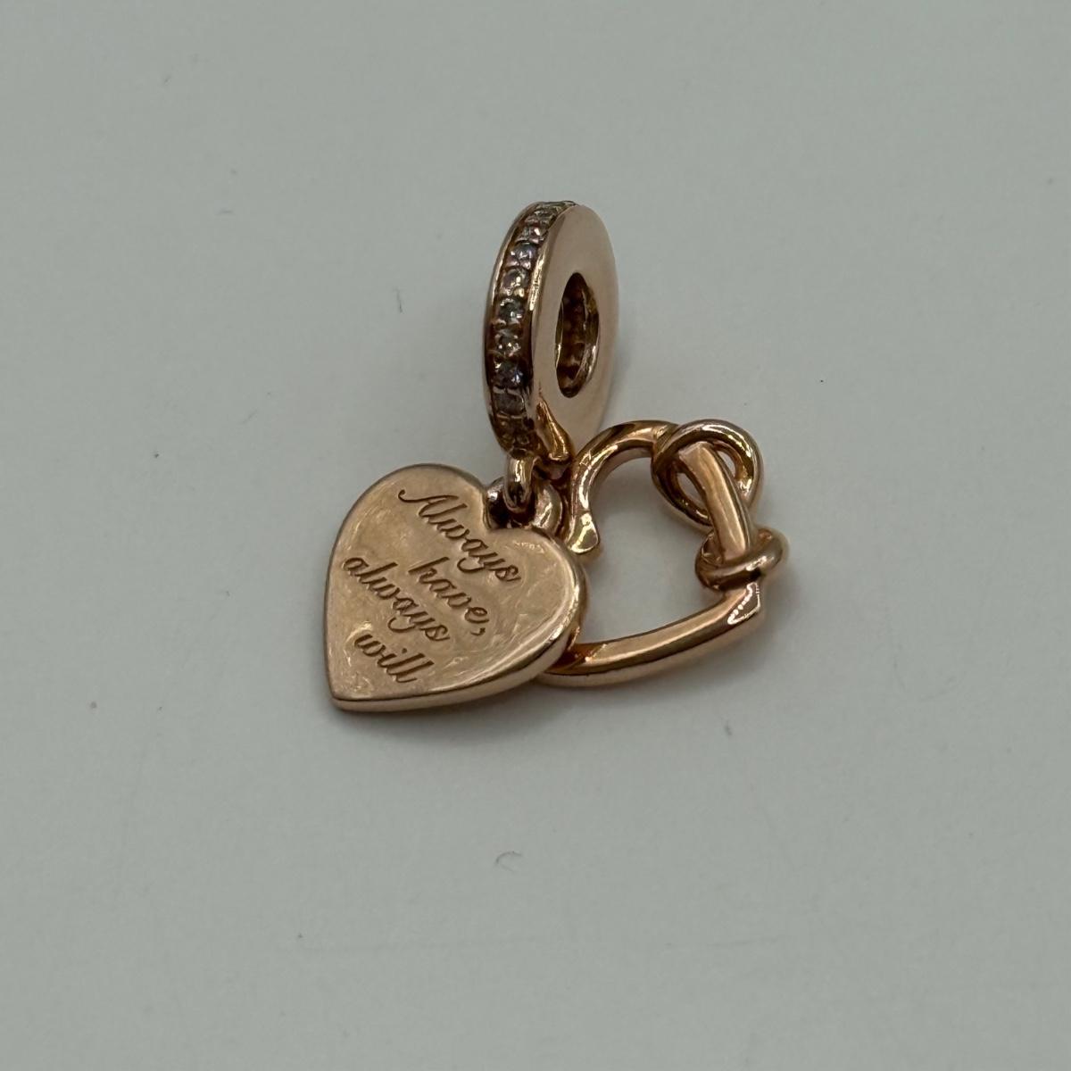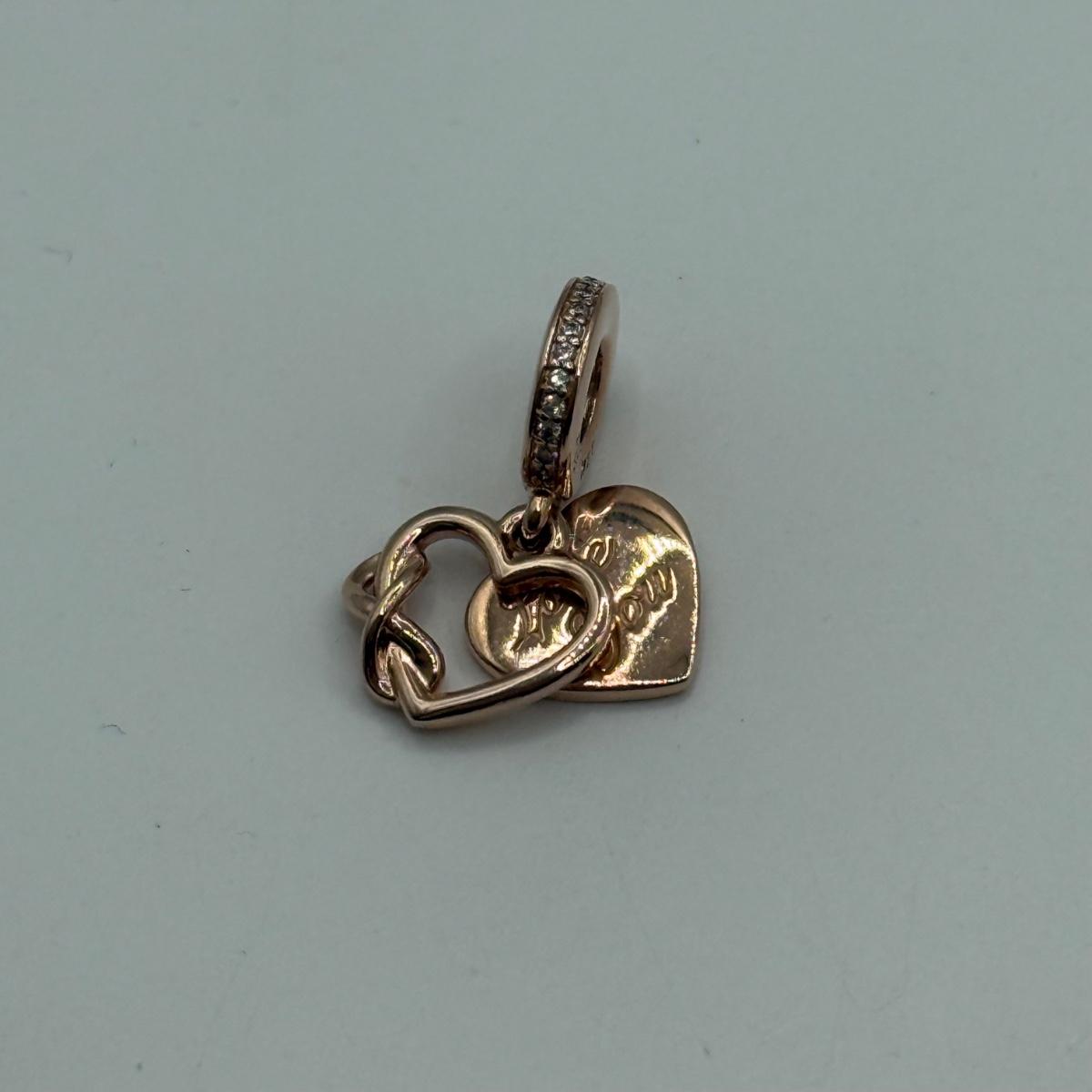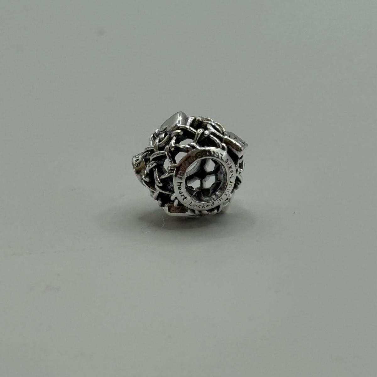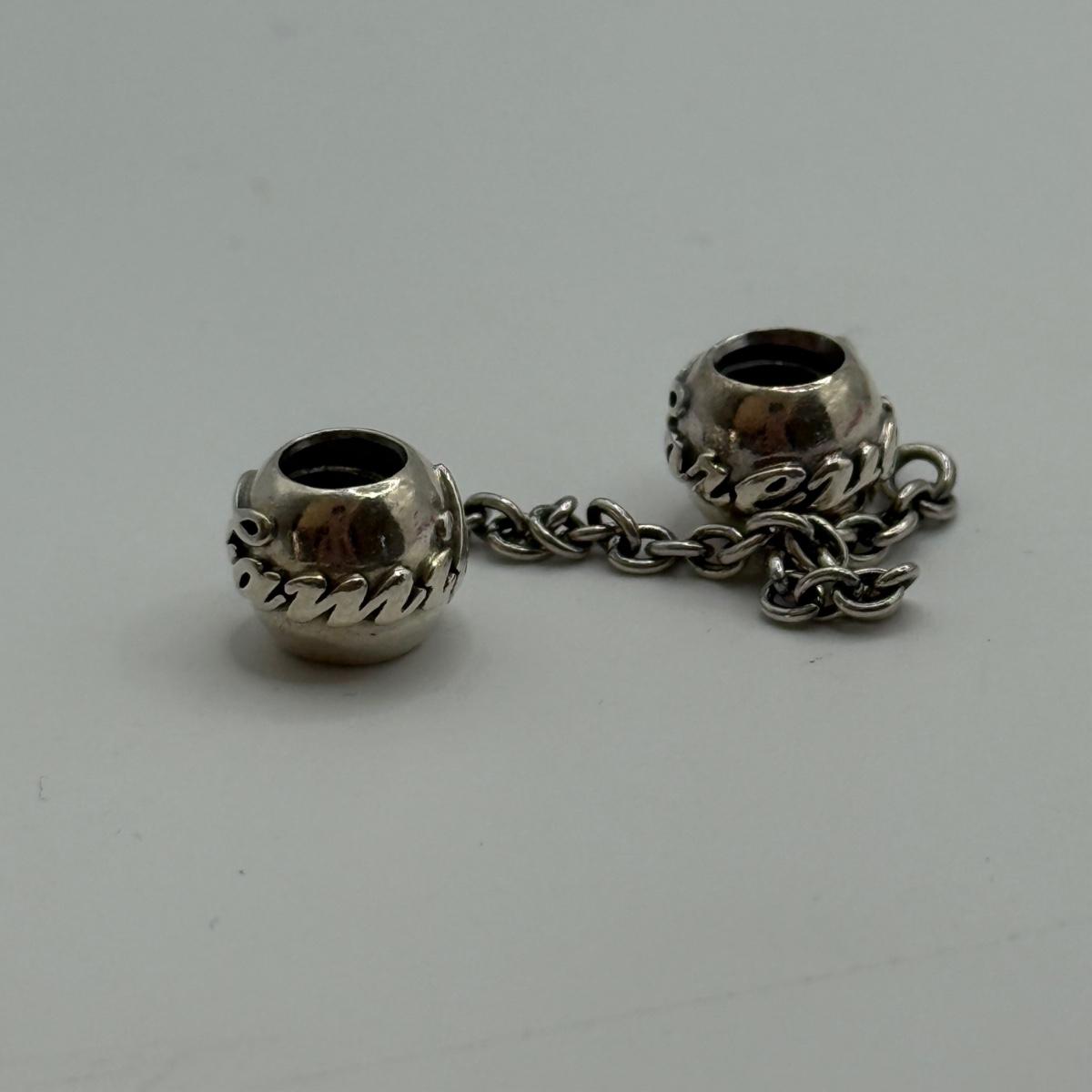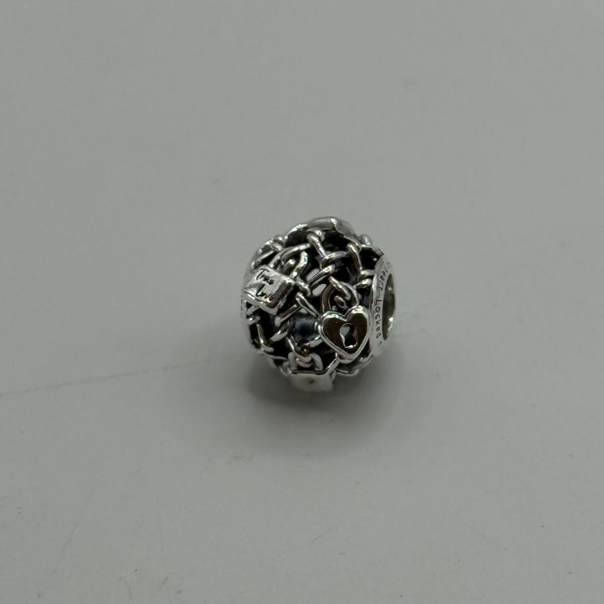 LOT 32J: 925 ALE Sterling Silver Pandora Bracelet Charms: Lock & Key, Rose Gold "Love You," Heart and Family Forever Safety Chains (22.76g)