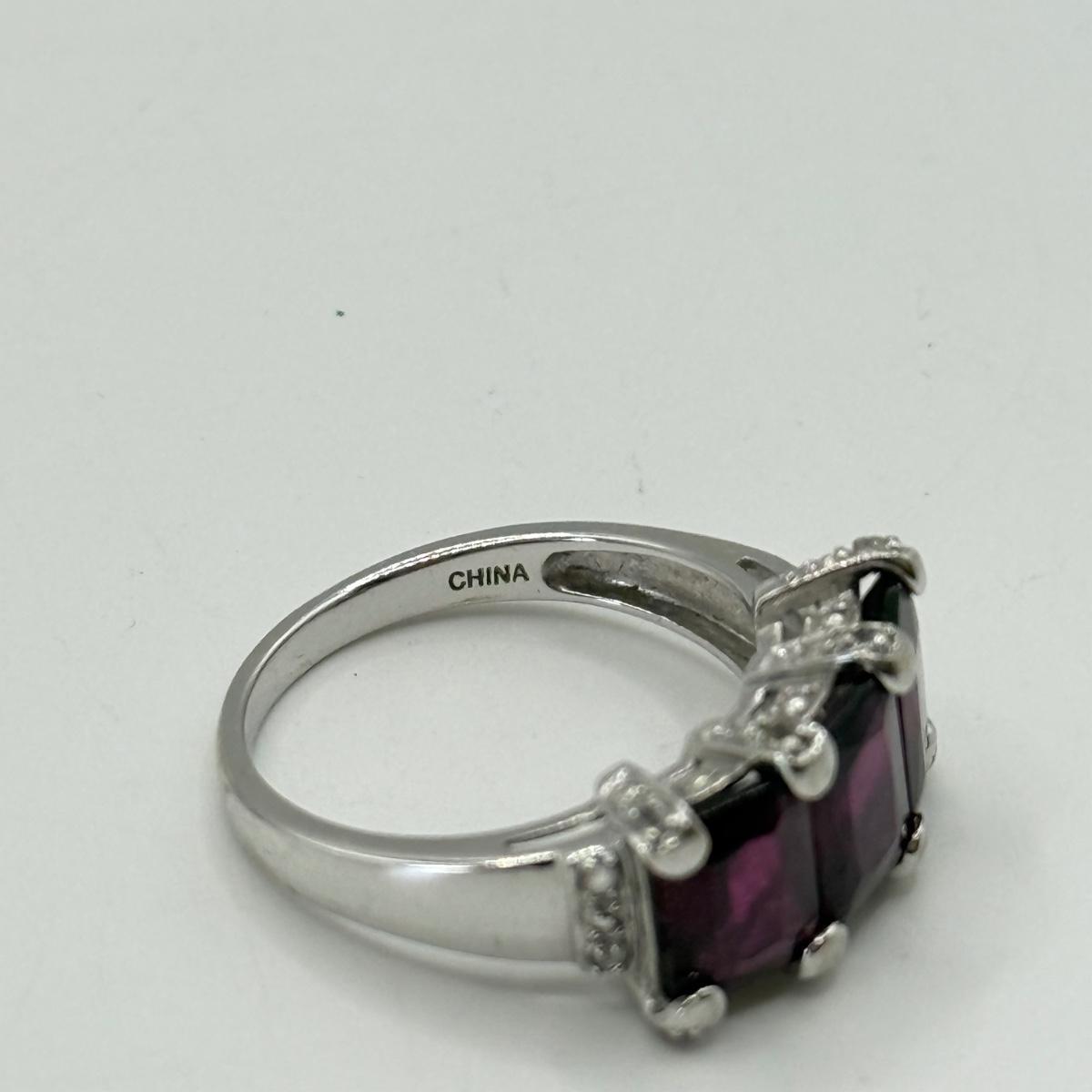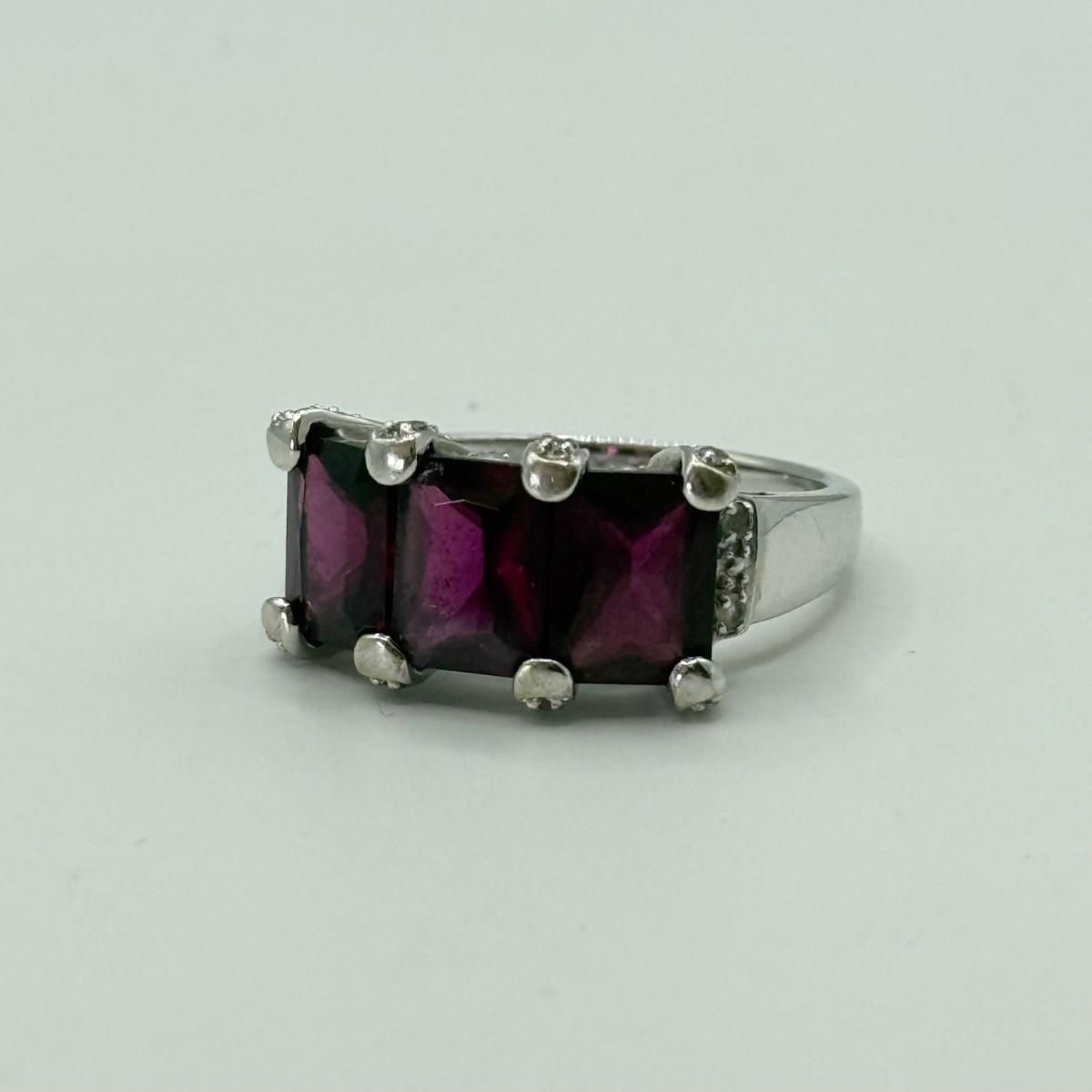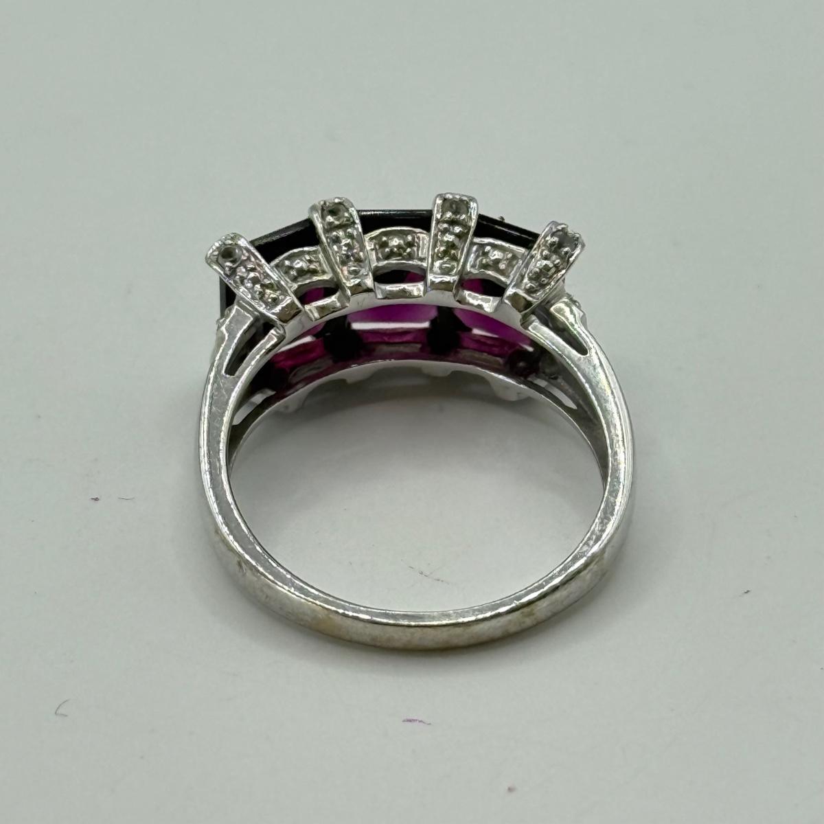 LOT 39J: Size 8 10k White Gold Amethyst Ring (4.98g)