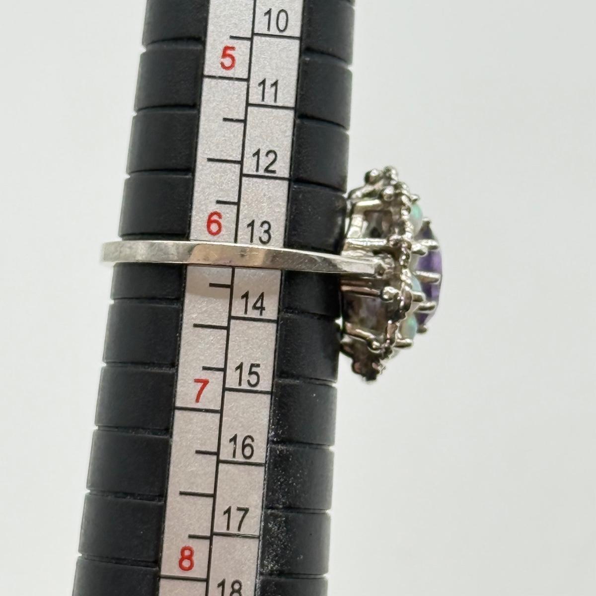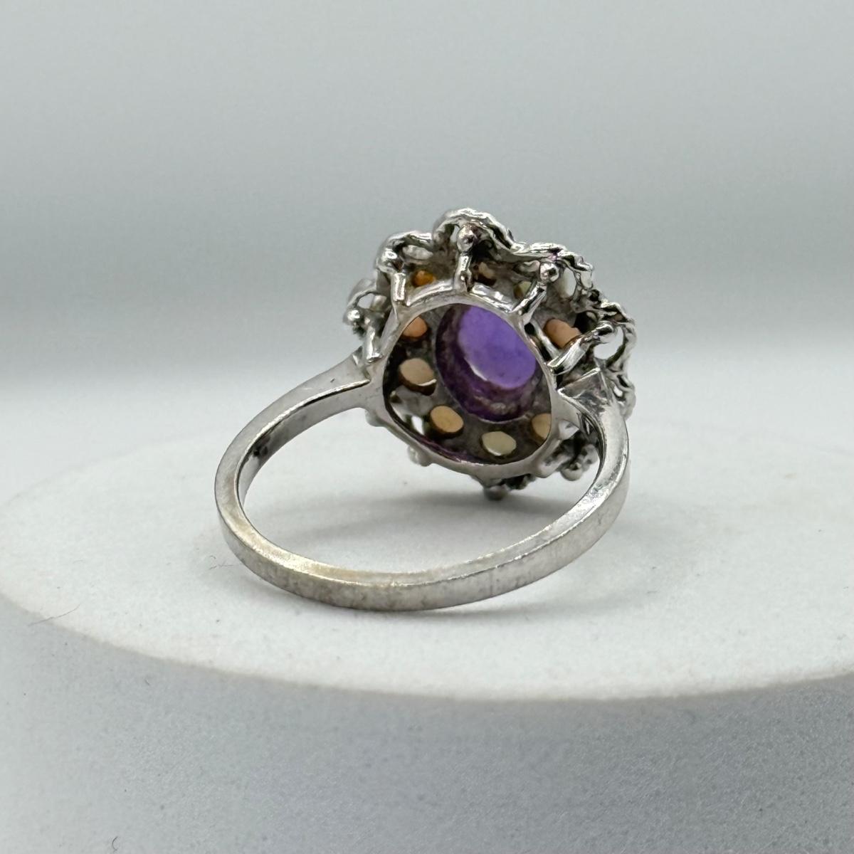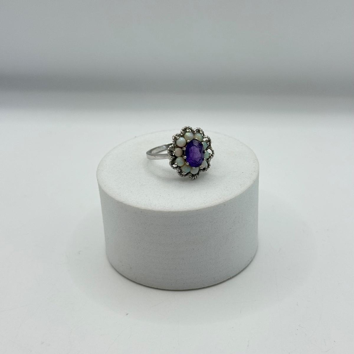 LOT 40J: Gorgeous 14kt White Gold Amethyst & Opal Size 6 Ring (3.34g)