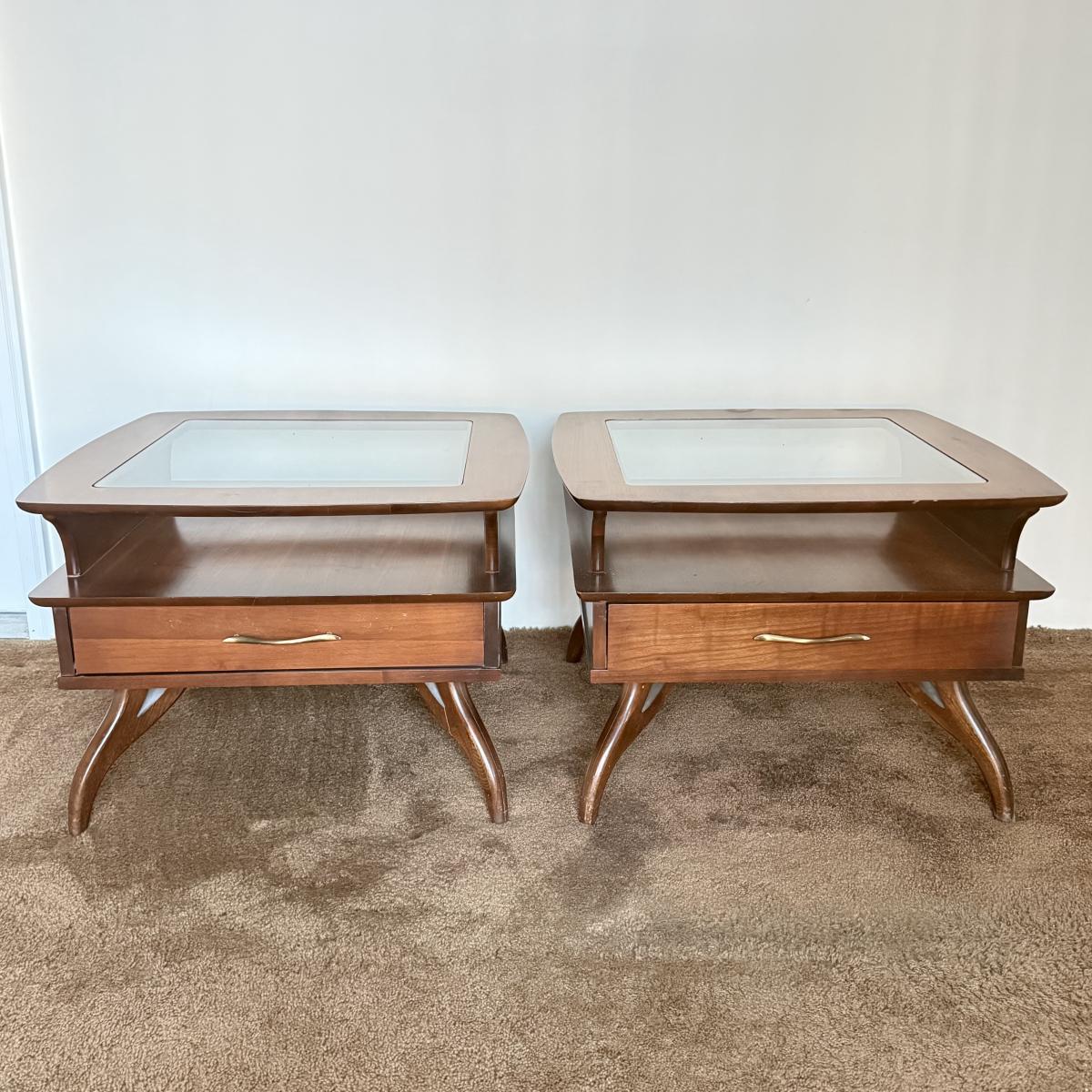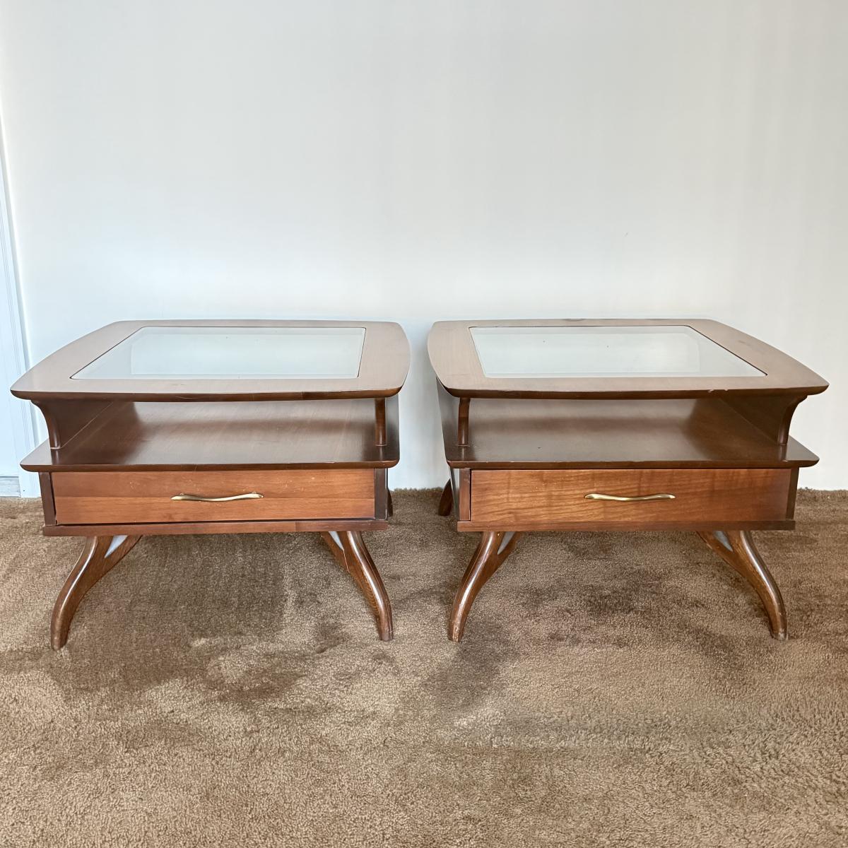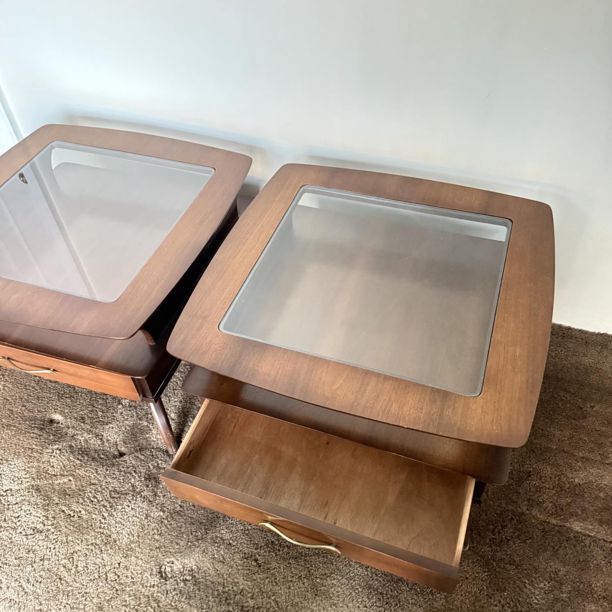 LOT 84F: Pair of Glass Top MCM Bassett Furniture End Tables