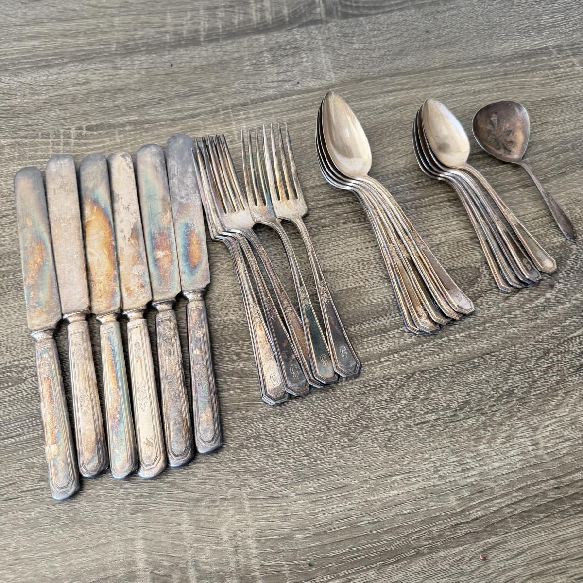 LOT 93F: Vintage National Silverplate service for 5 + Extras