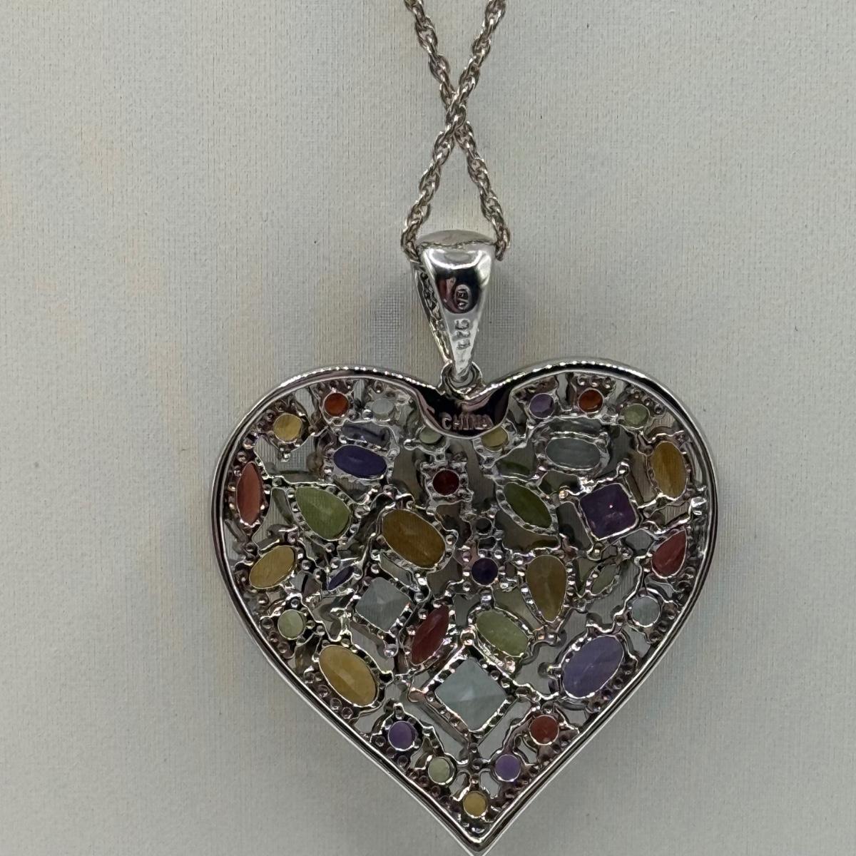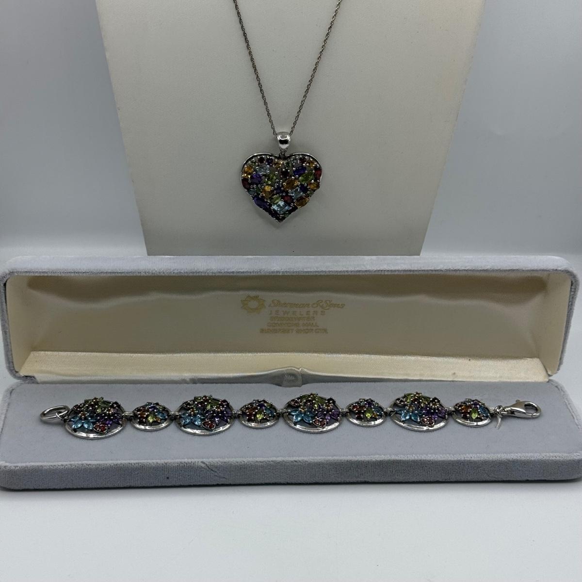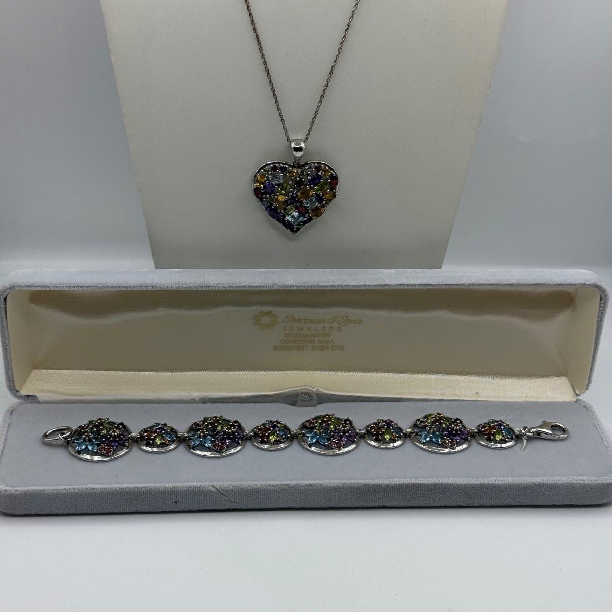 LOT 104J: Sterling Silver 925 Colorful Heart 17" Necklace & 7.5" Bracelet (34.32g)