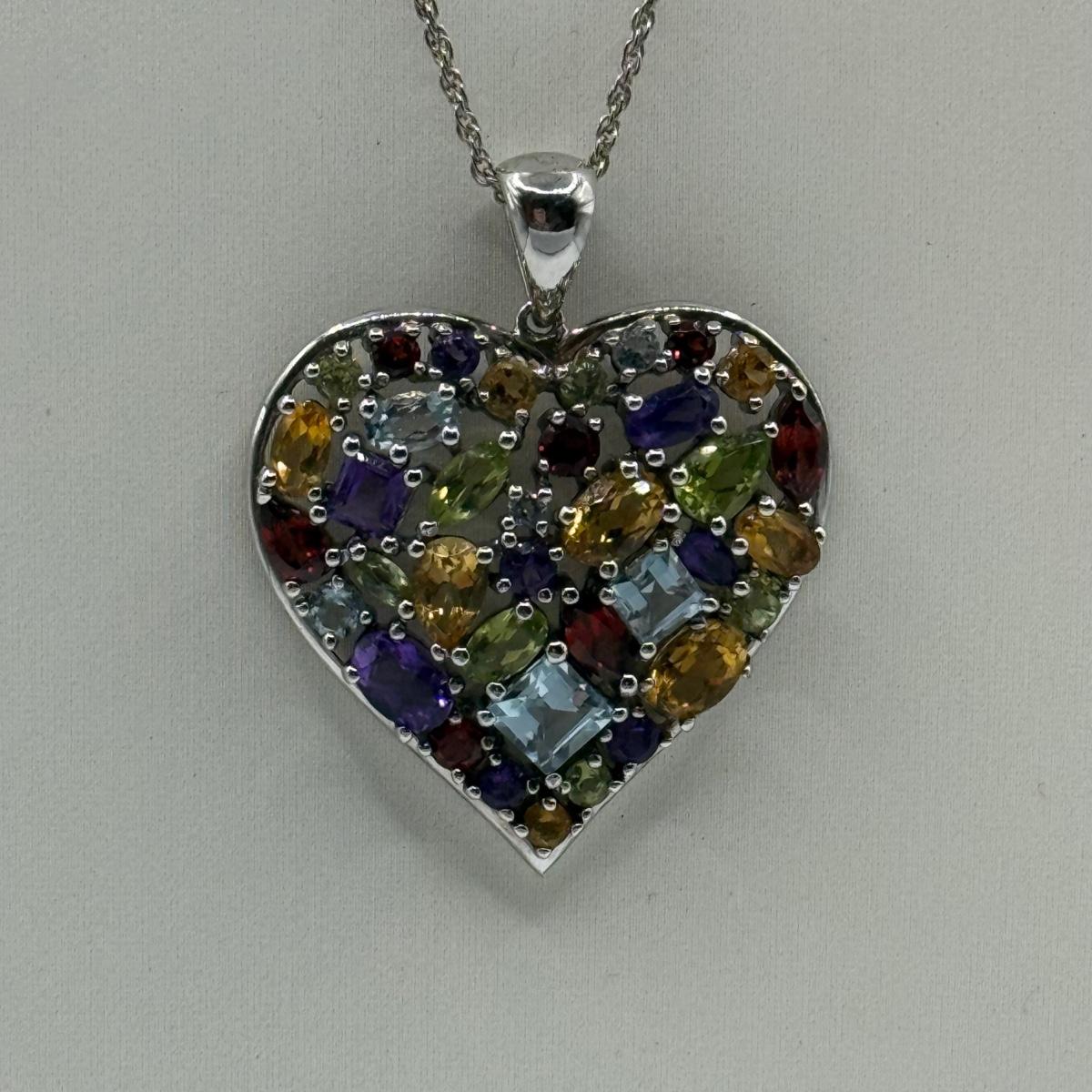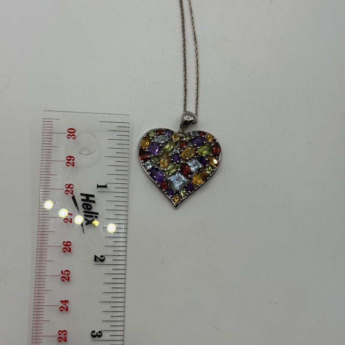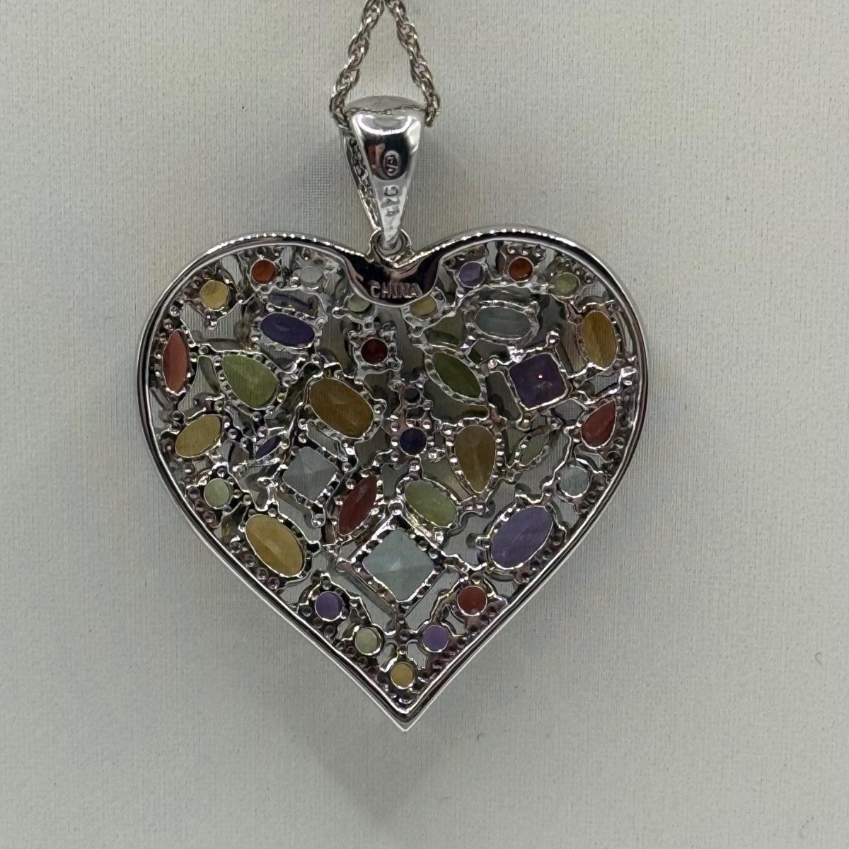 LOT 104J: Sterling Silver 925 Colorful Heart 17" Necklace & 7.5" Bracelet (34.32g)