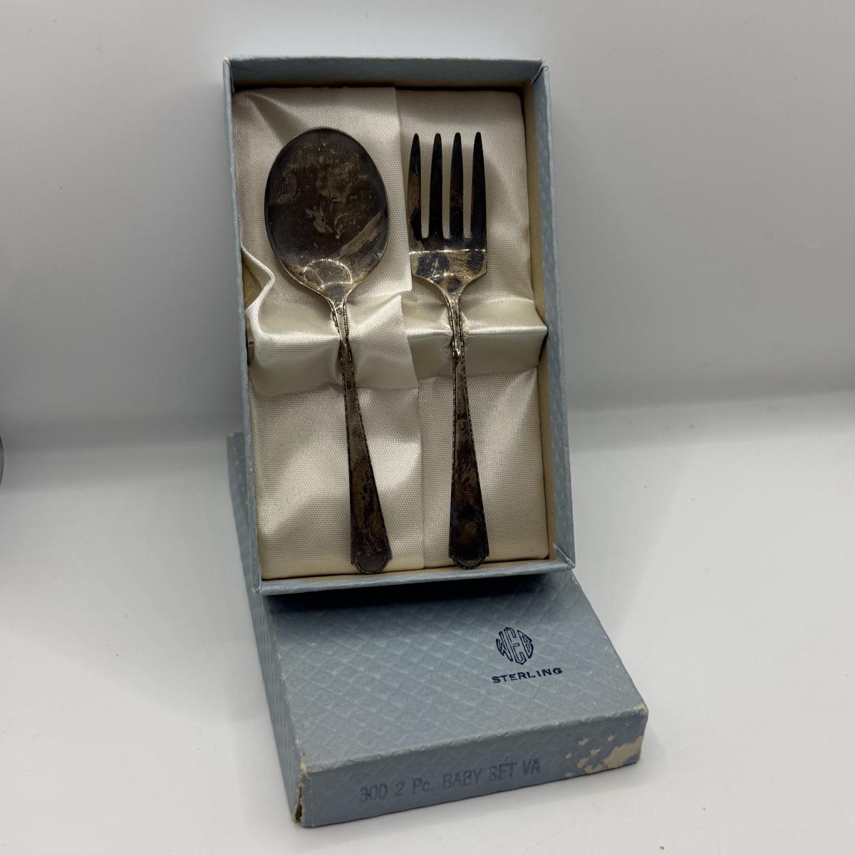 LOT 110J: Vintage Web Sterling Silver Fork & Spoon w Original Box (26.52g)