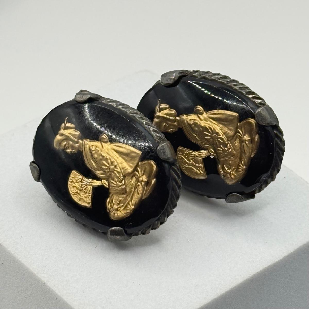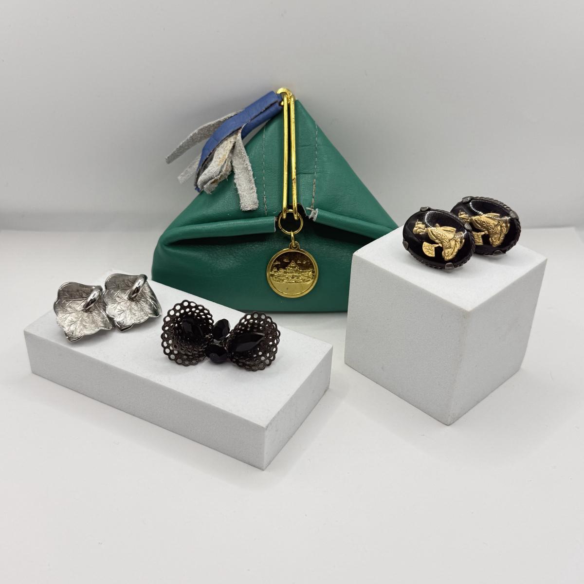 LOT 133J: Vintage Intaglio Earrings, Silvertone Leaf Earrings, Coin Purse & Black Clip EArrings