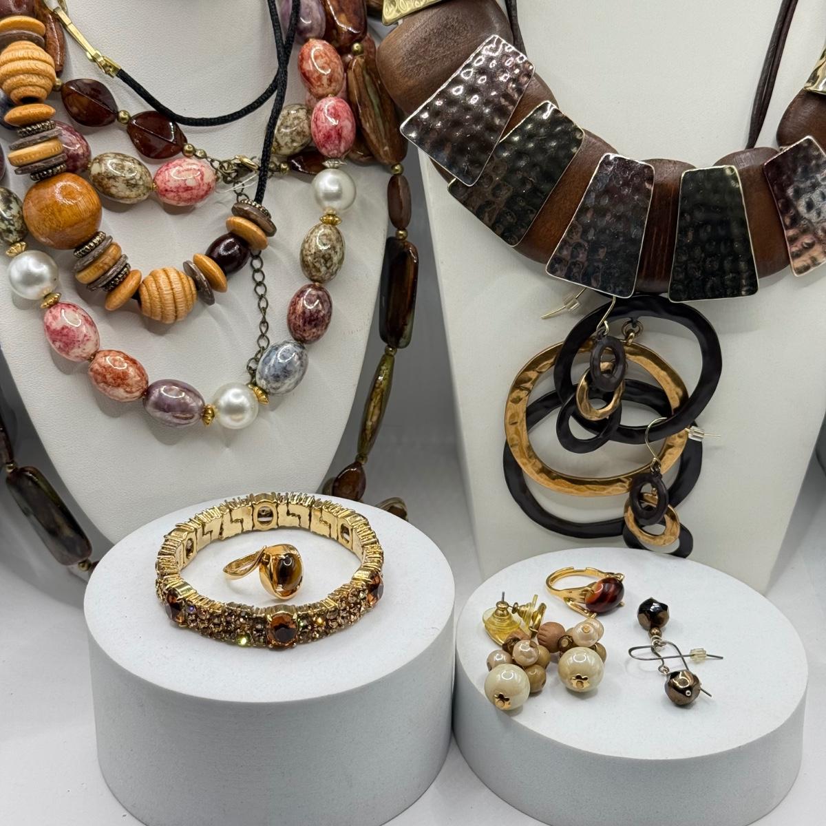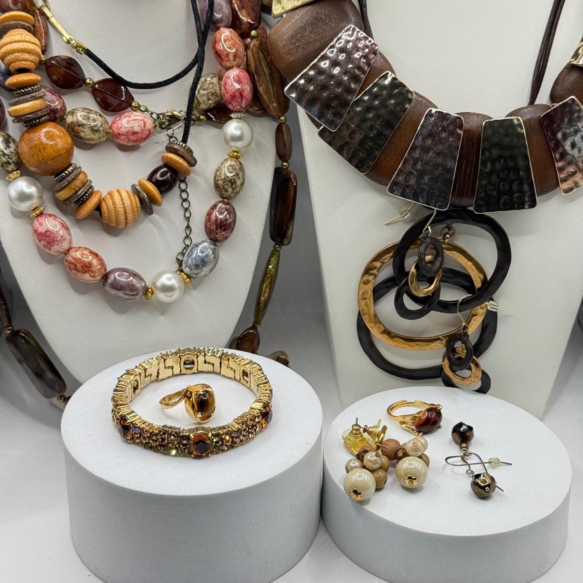 LOT 147J: Earth Tone Jewelry: Statement Necklaces, Earrings & Crystal Bracelet