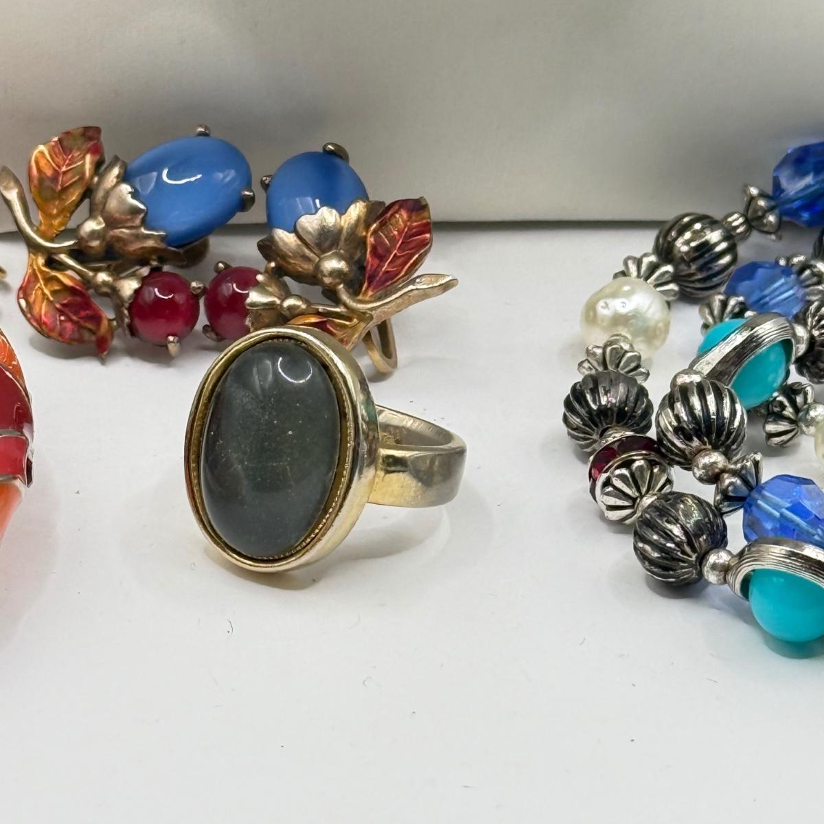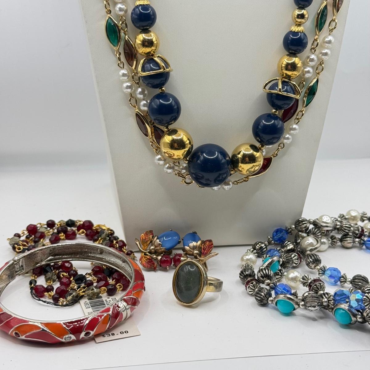 LOT 149J: Beaded Necklaces, Enamel Hinge Bangle Bracelet, Ring, Earrings