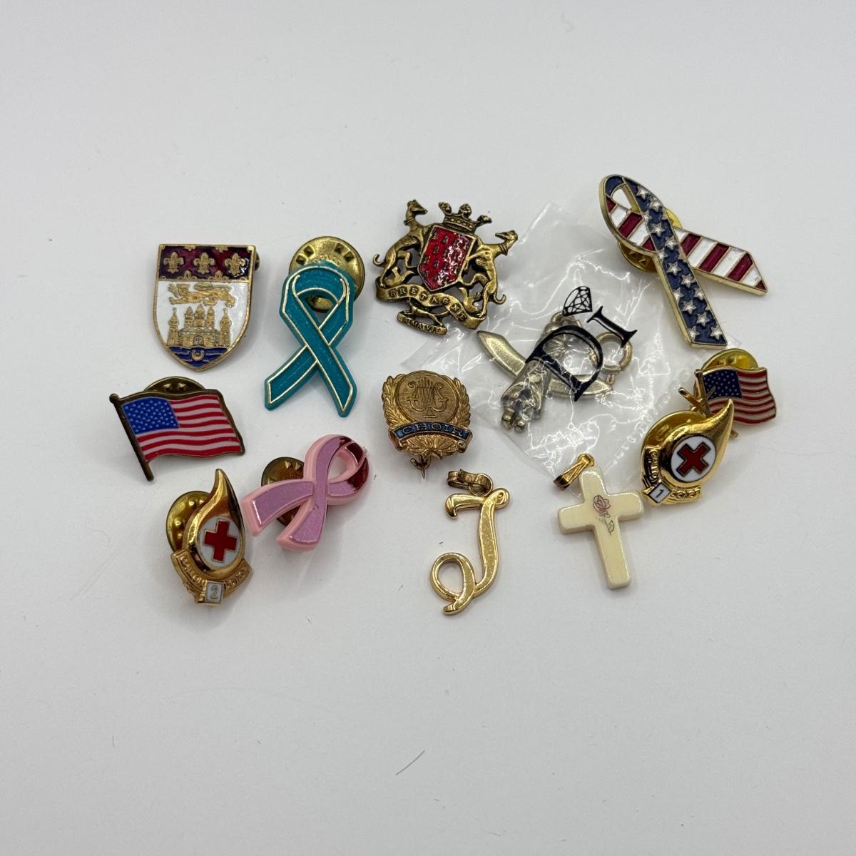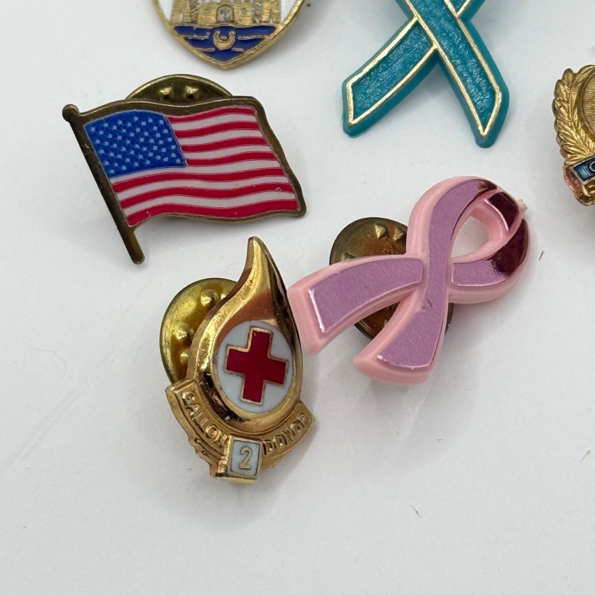 LOT 154J: Misc Pins & Pendants: Ribbons, Flags, Blood Donor