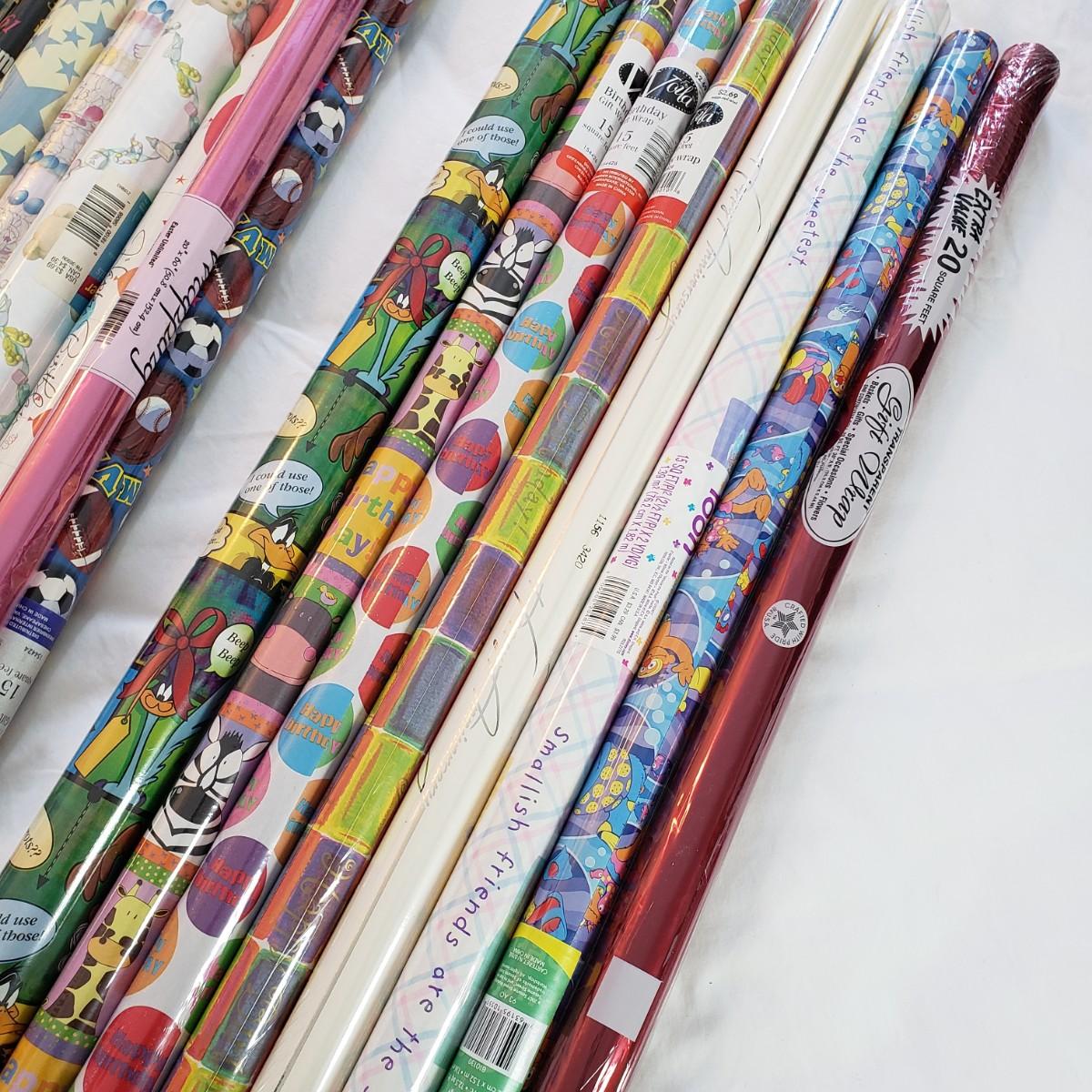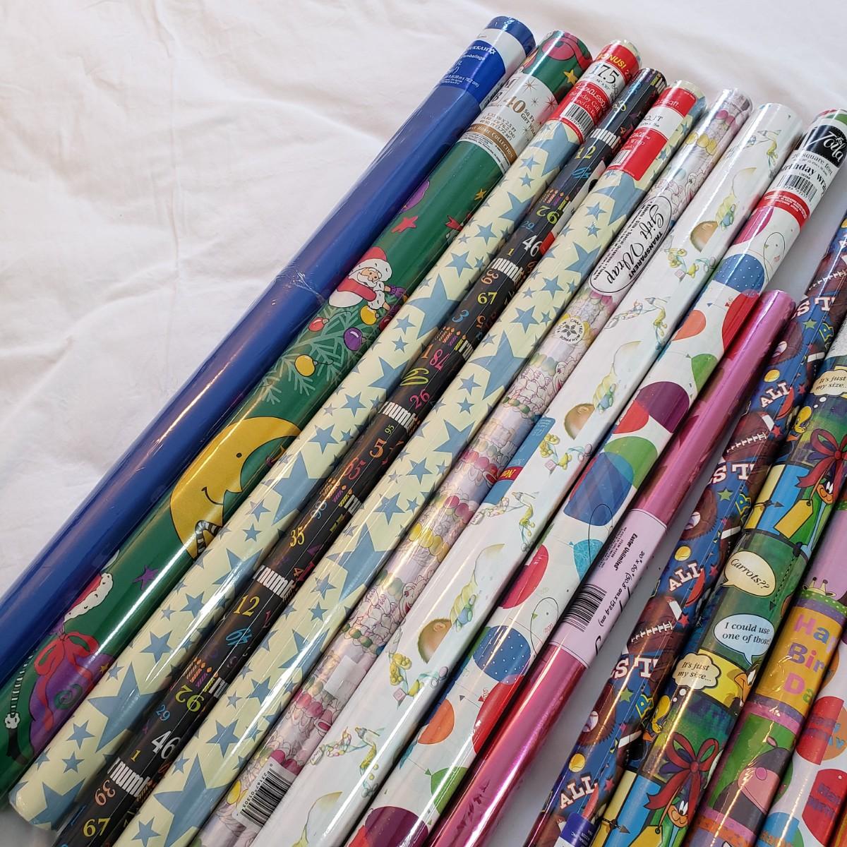 LOT 176X: 18 Rolls of Unopened Wrapping Paper with Ribbon